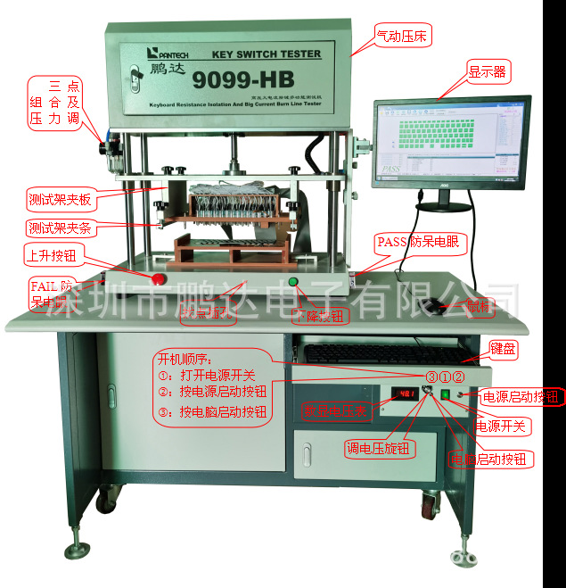 - 2. 可检测贴有LED灯的薄膜开关板,能实现按键和LED灯同时一次性测试;