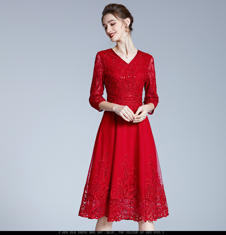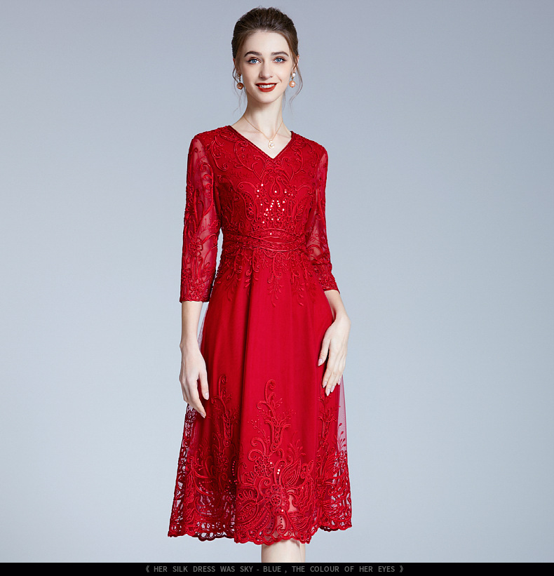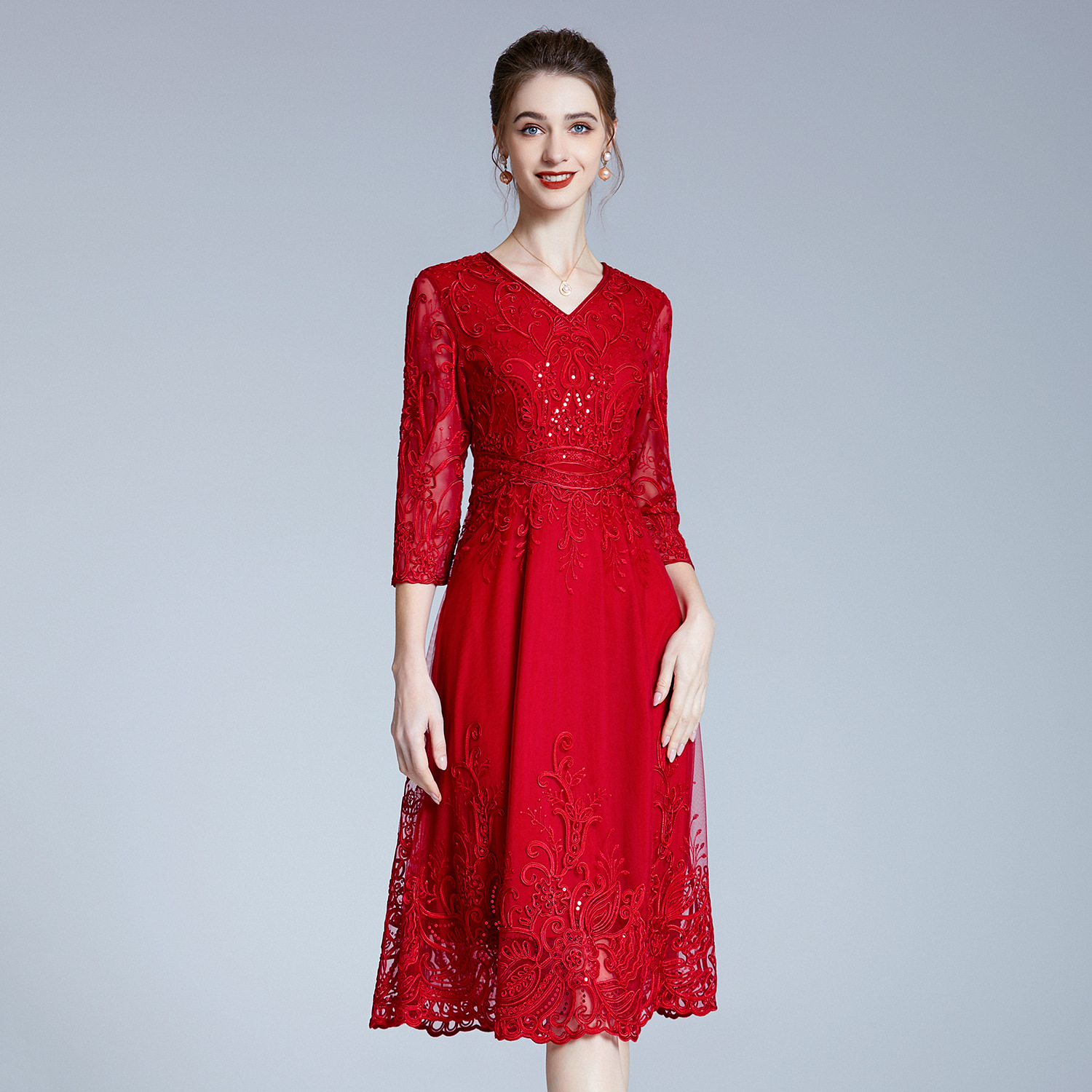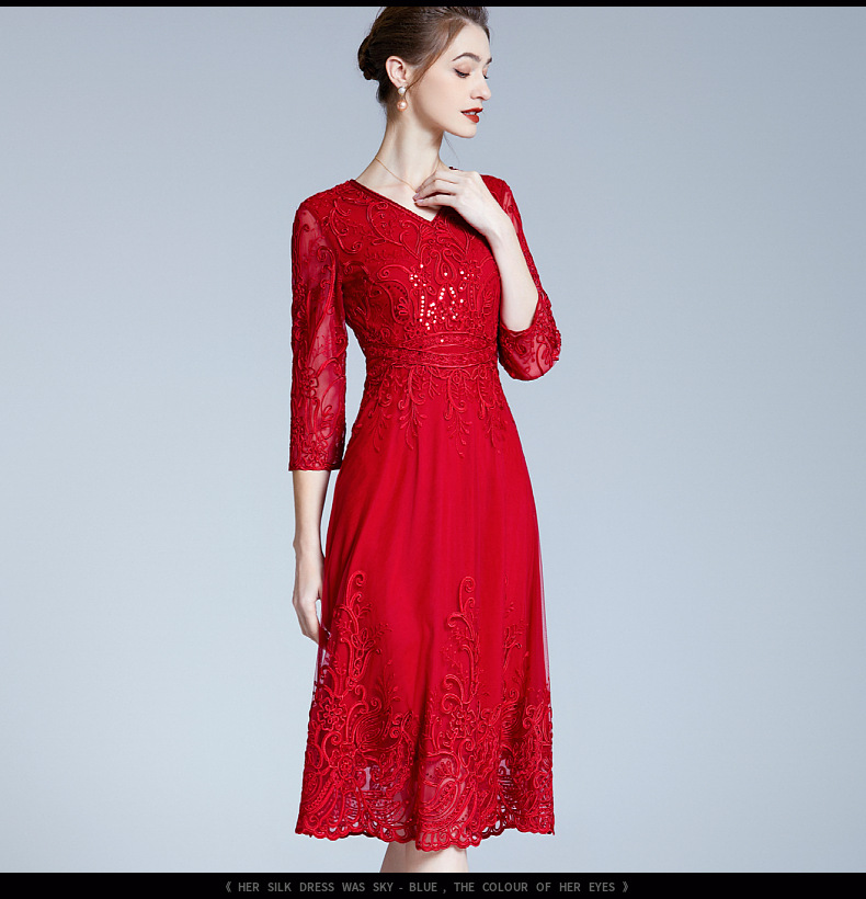 Поколение Шэньчжэнь высокого класса свадебное платье плюс размер счастливый мать-в-законе сетки блестки платье взрывы женщин
