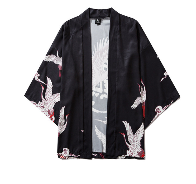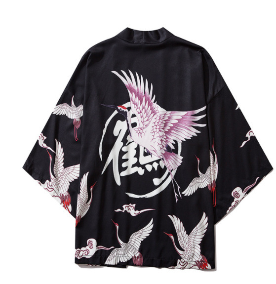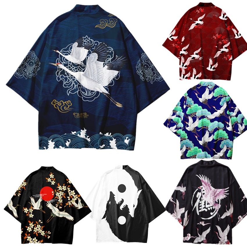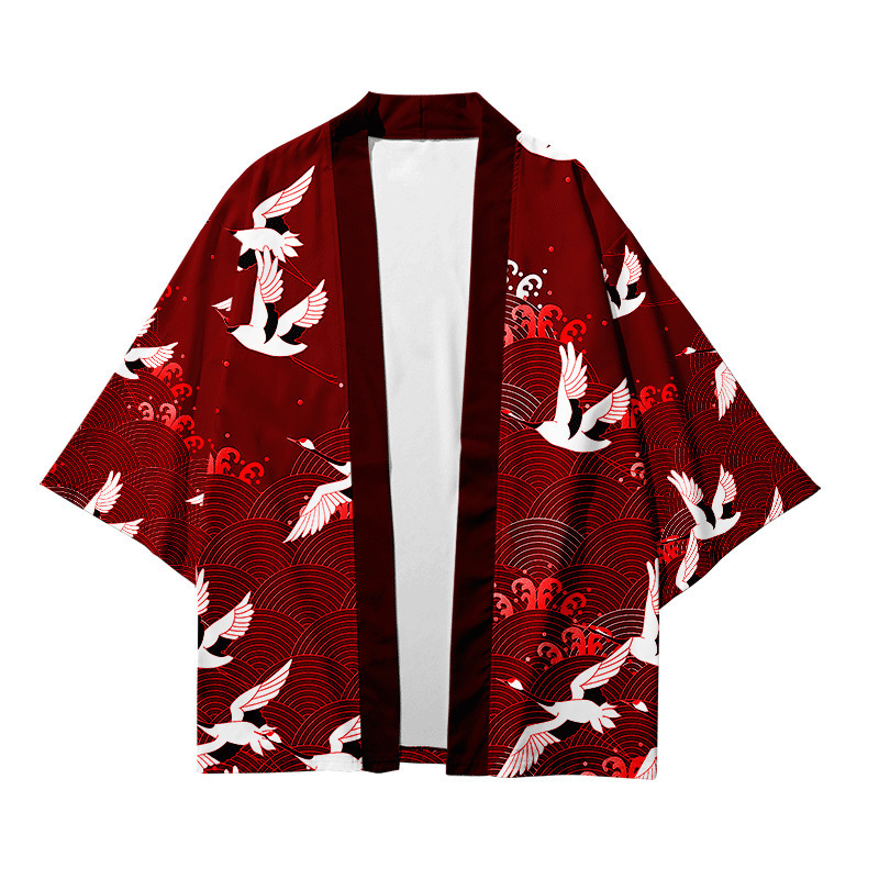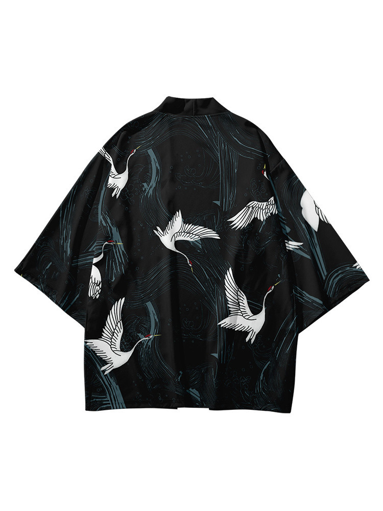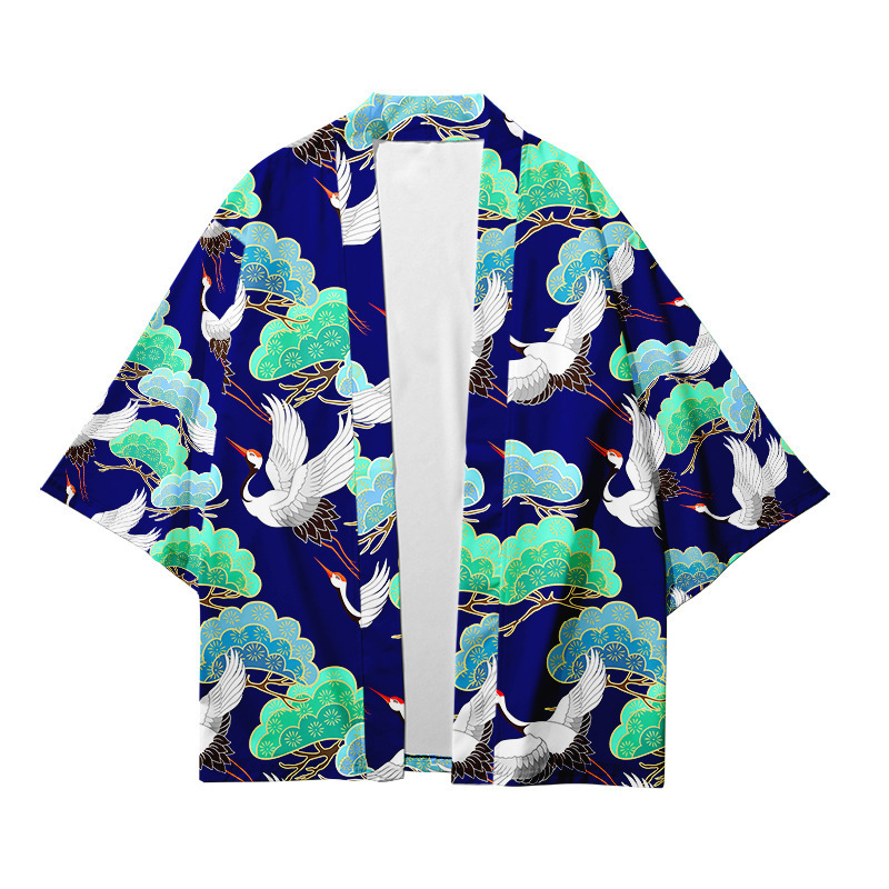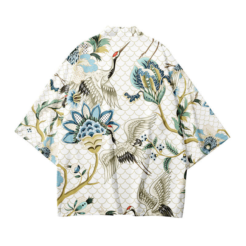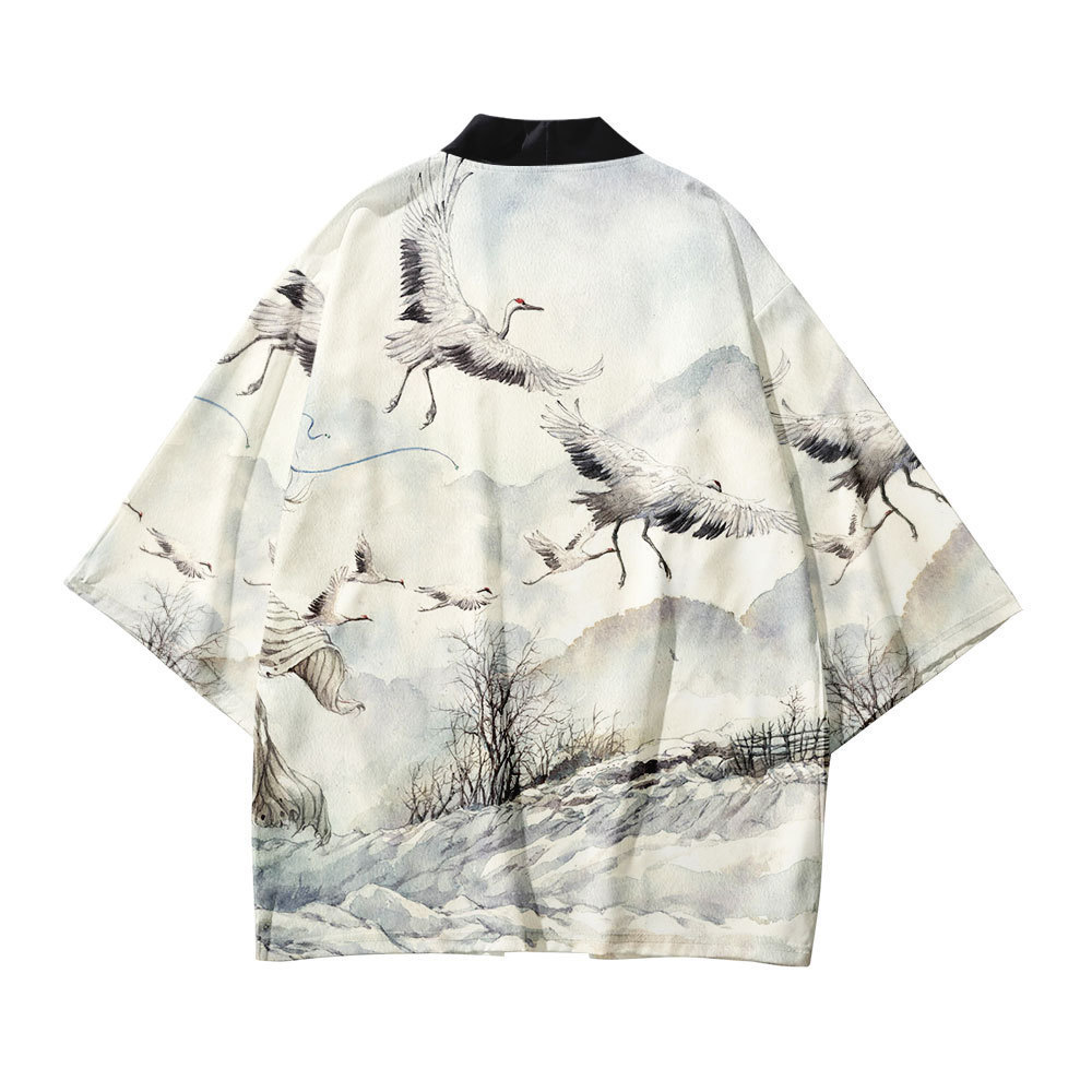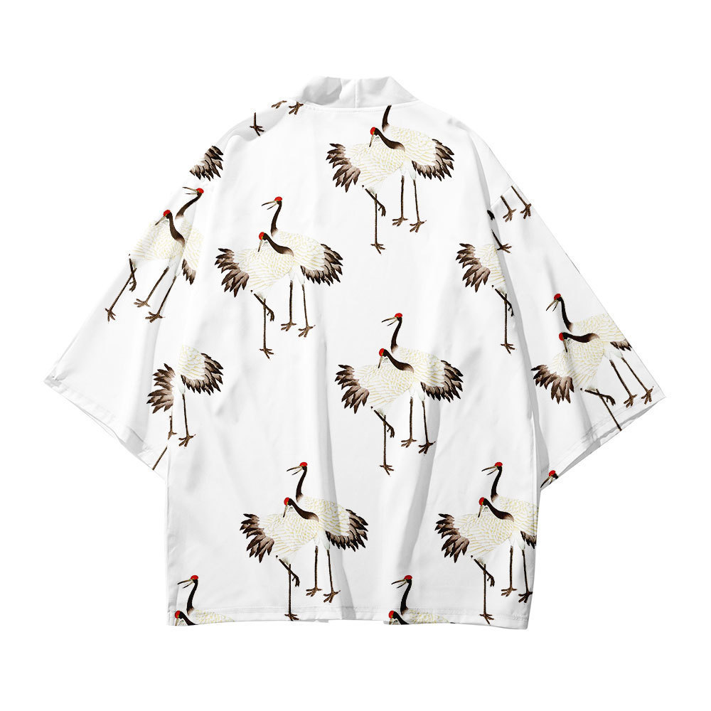 Китайский Ретро кимоно журавль плащ 3D цифровой цветной принт кардиган халат кимоно тканый Взрослый Детский халат