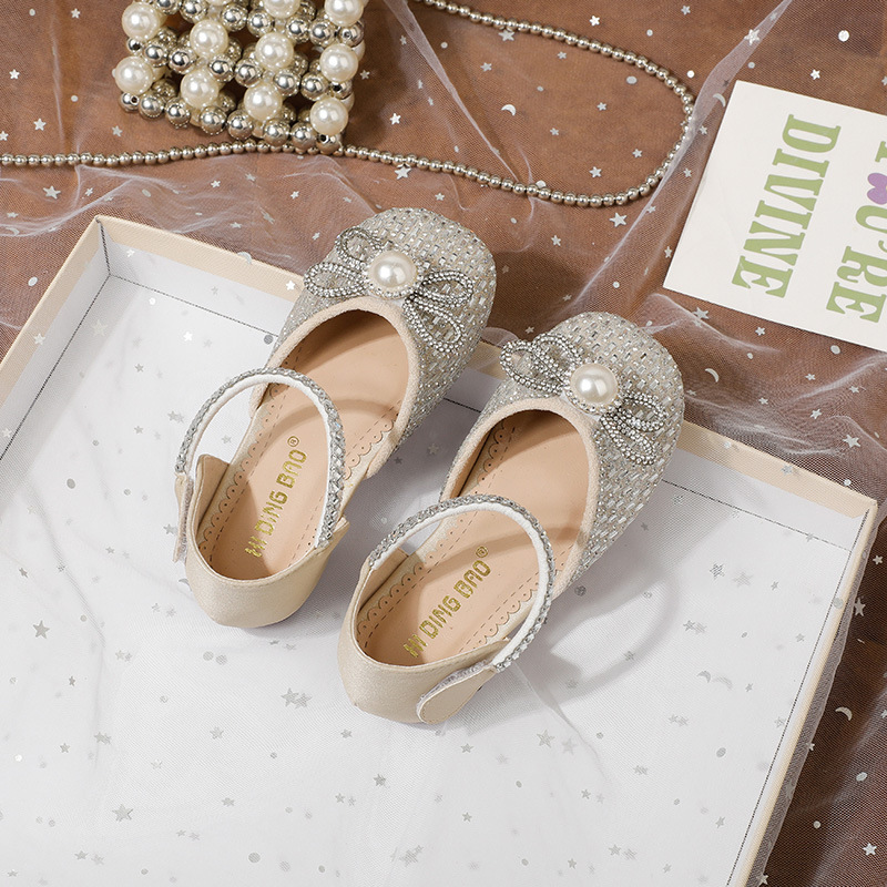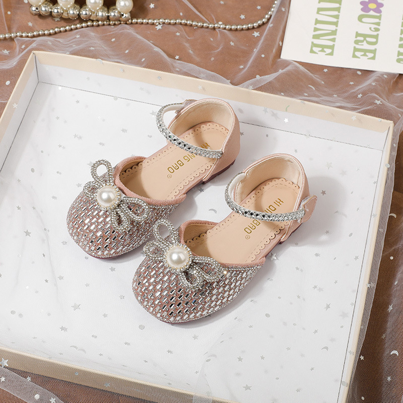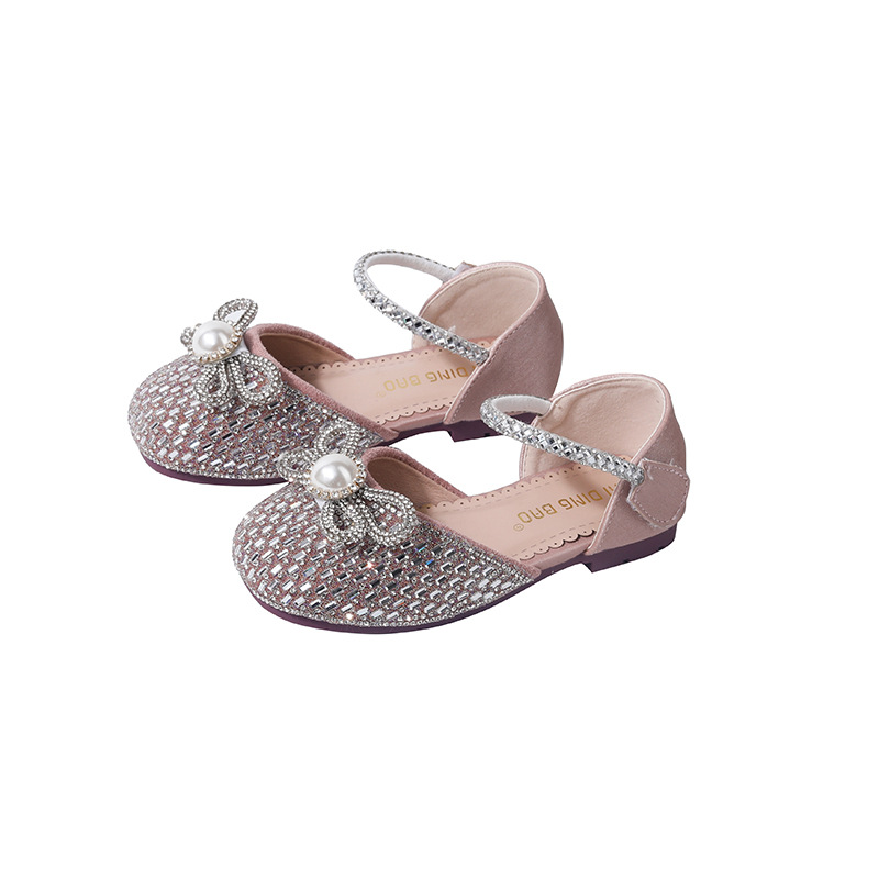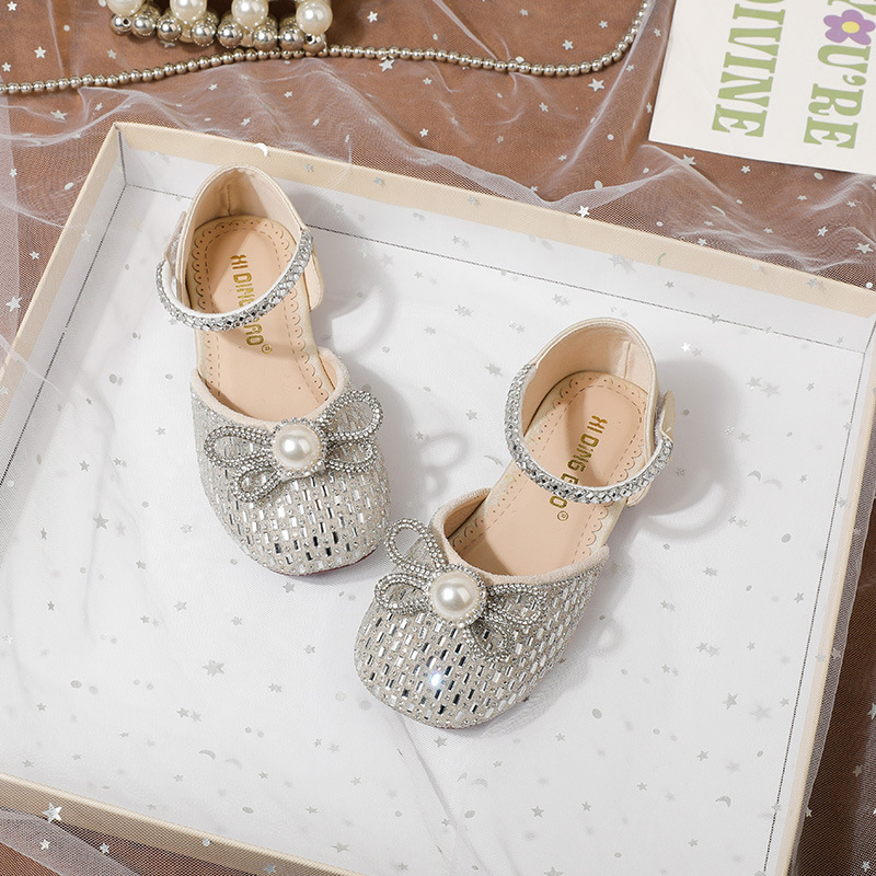 Детские сандалии, лето 2023, закрытый носок, для детей постарше, туфли-принцессы, мягкая подошва, универсальные, балетки для девочек, со стразами.