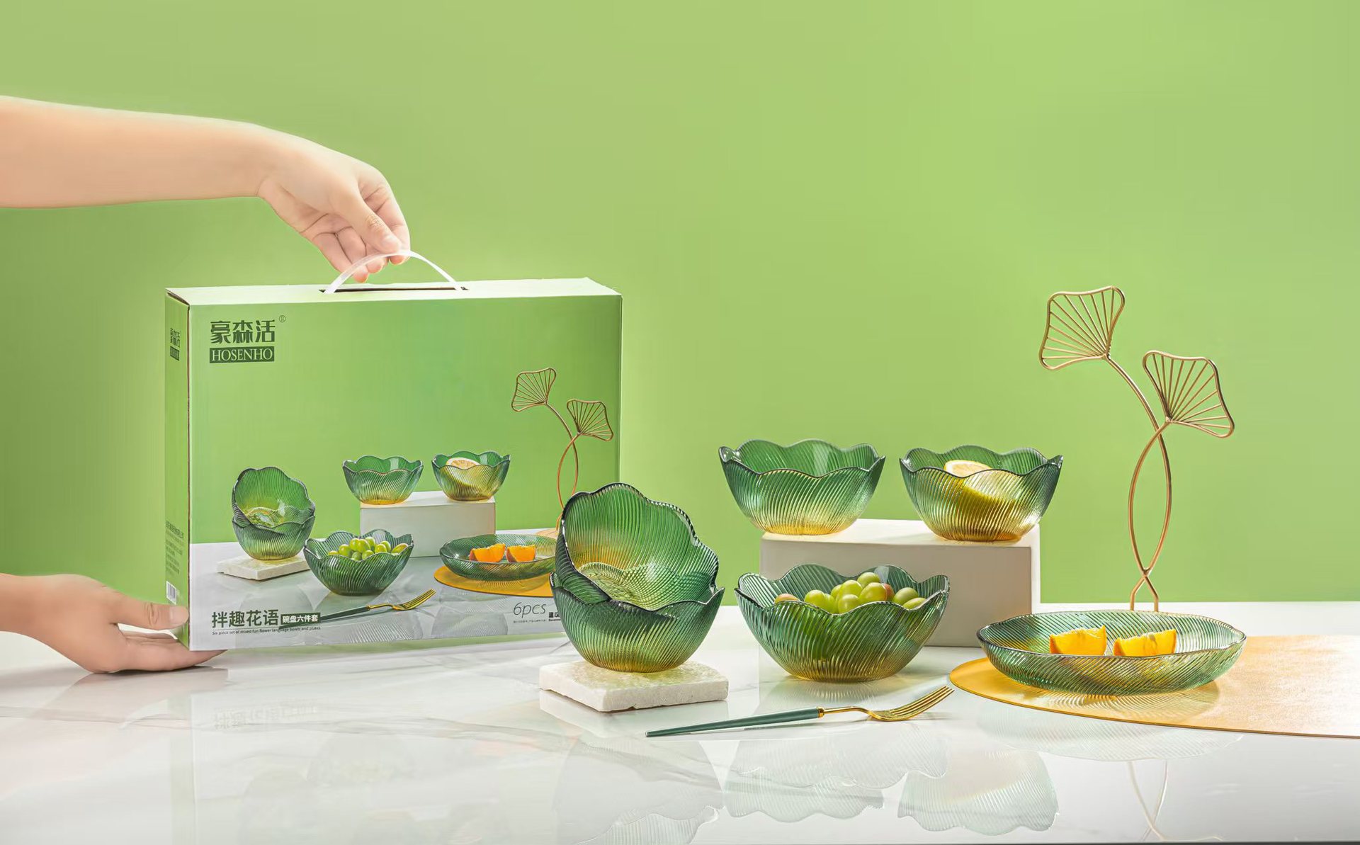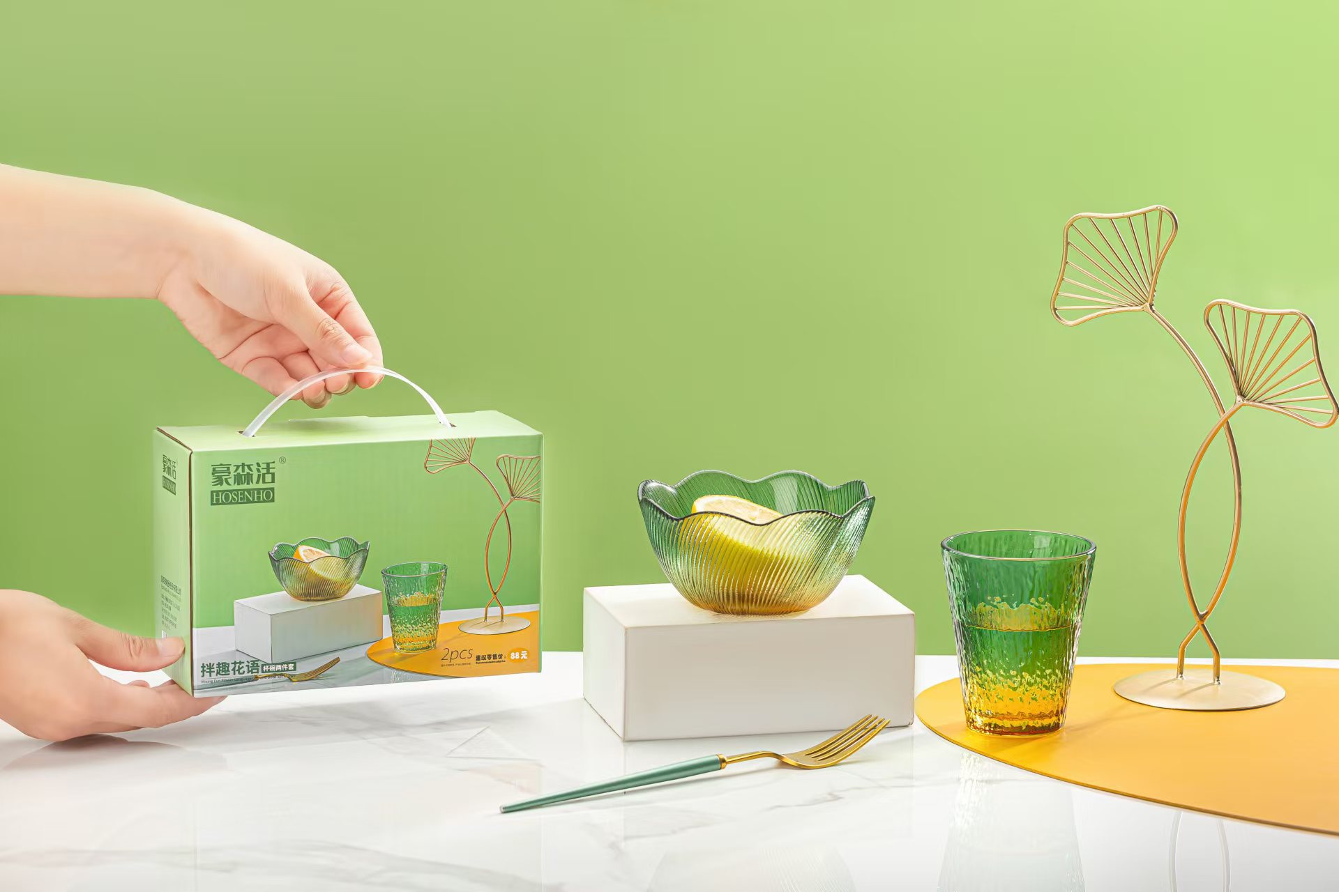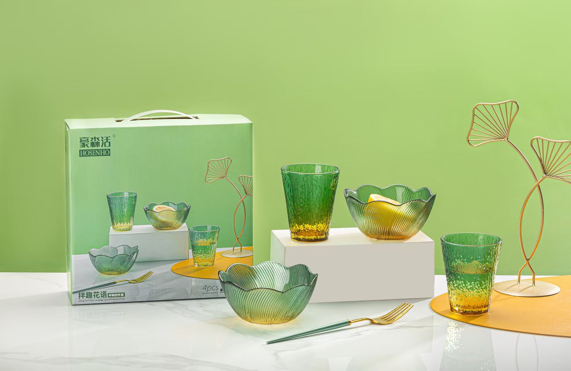 Dubaite Huanmei Стеклянная чаша Набор Faw Rain Curtain Подарочная акция для отправки клиентов Банковская страховка
