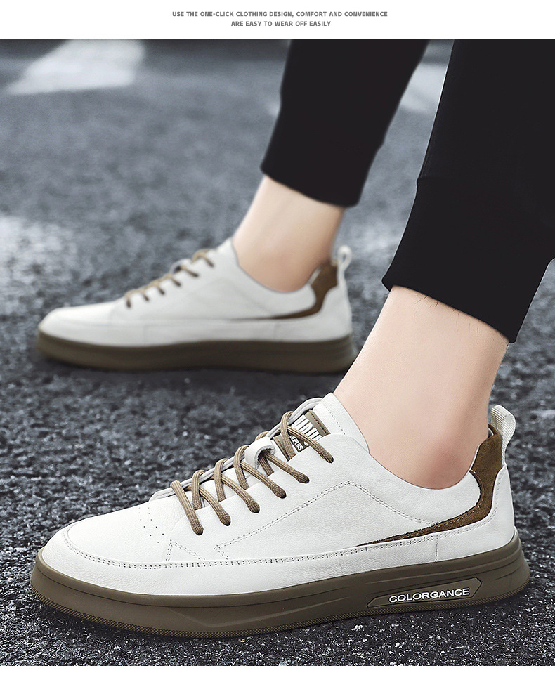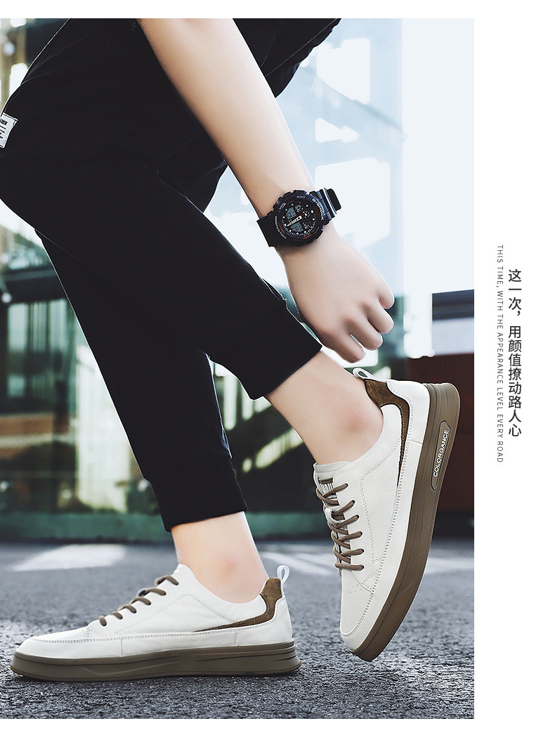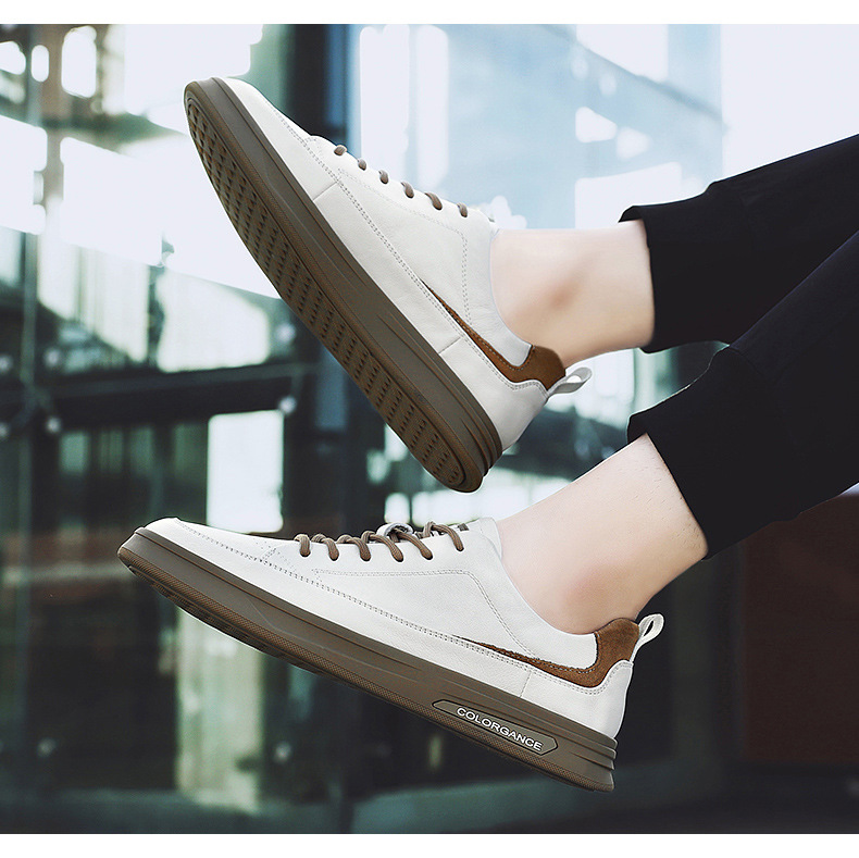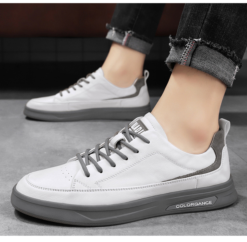 Летняя Мужская обувь 2023 Новая мужская кожаная обувь Спортивные повседневные кроссовки в Корейском стиле Модная универсальная белая модная обувь