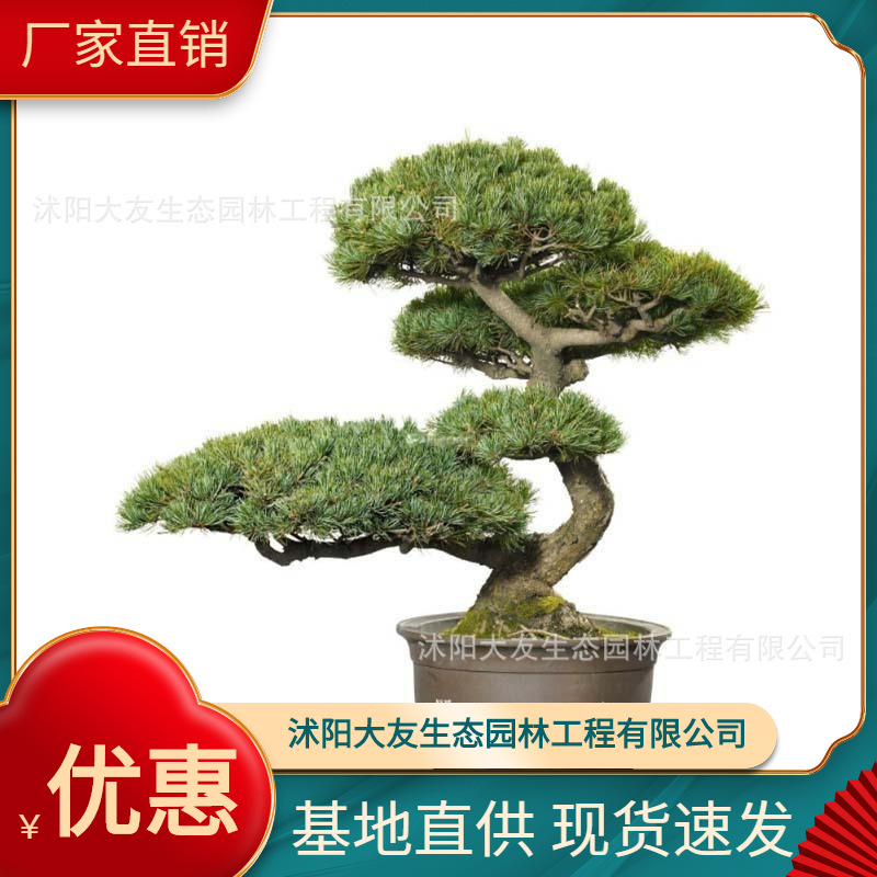 五针松树皮灰褐色,老干有不规则鳞片状剥裂,内皮赤褐色,一年生小枝淡褐色,密生淡黄色柔毛,冬芽长椭圆形,黄褐色;叶短,五针一束;内侧两面有白色气孔线,花期5月,球花单性同株,雄球花聚生新枝下部,雌球花聚生新枝端部。球果卵圆形,翌年10~11月种子成熟,种子为倒卵形,具三角形种翅,淡褐色。