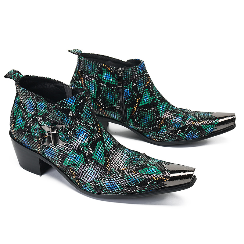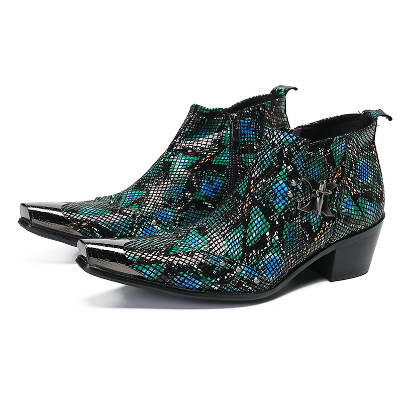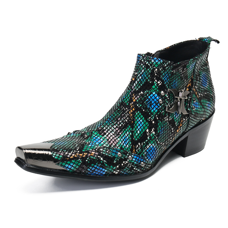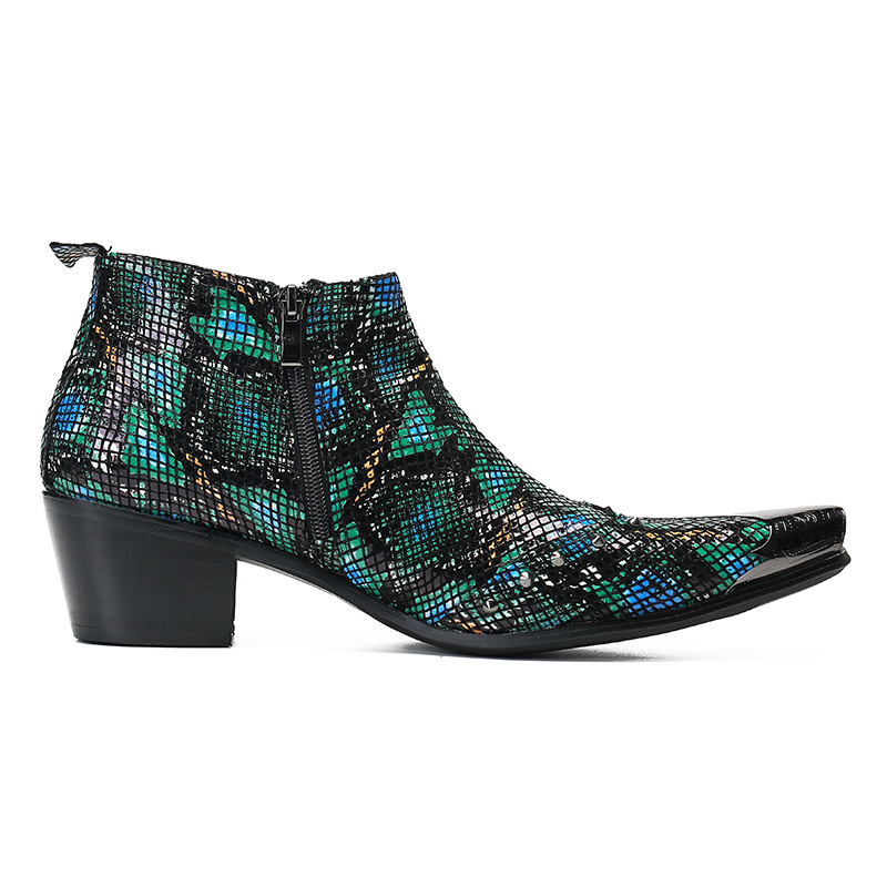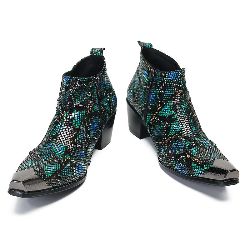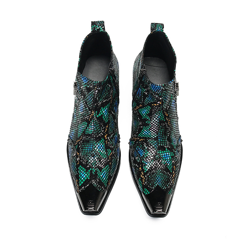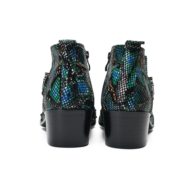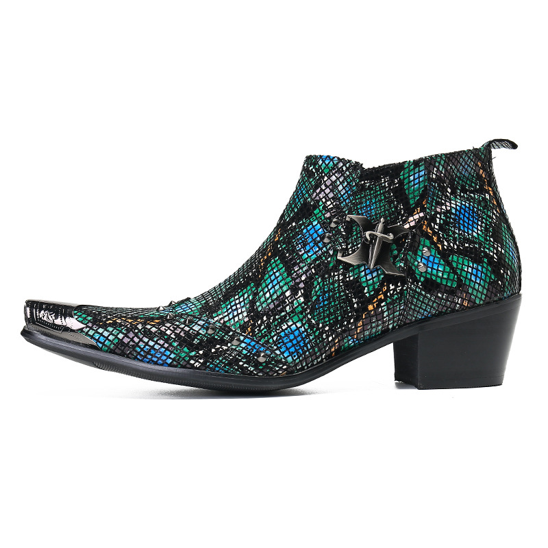 Ботильоны с острым носком Мужские осенне-зимние зеленые эластичные тонкие сапоги на высоком каблуке ботильоны на толстом каблуке французские ботильоны на толстой подошве Увеличение роста
