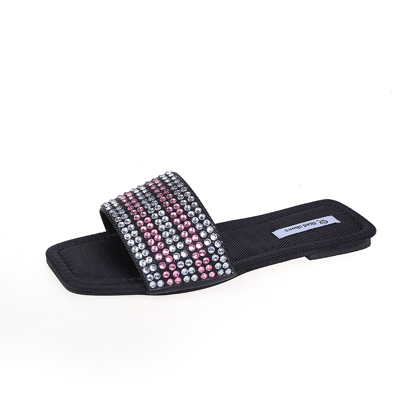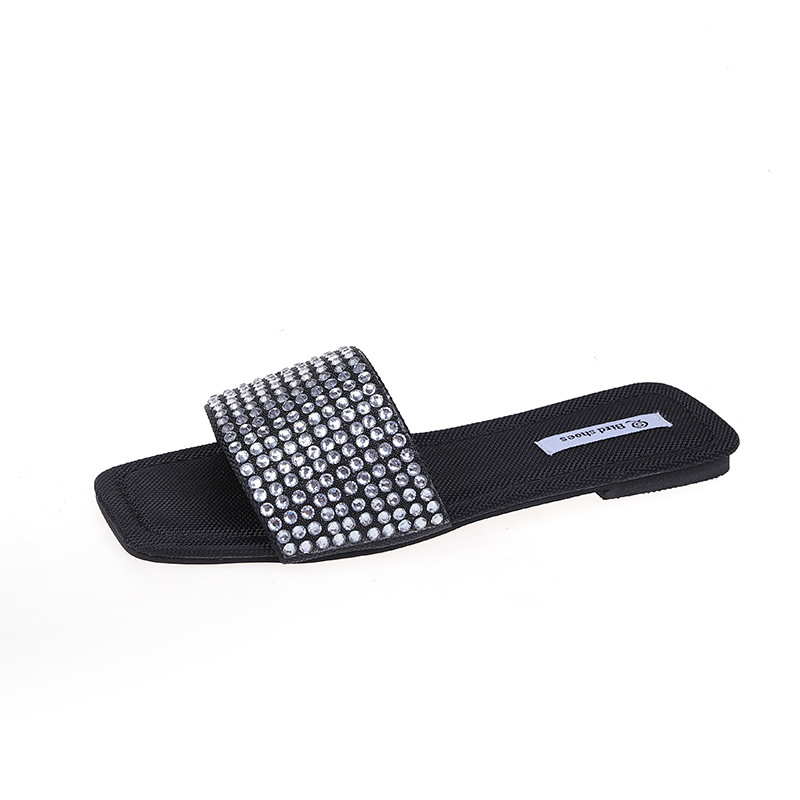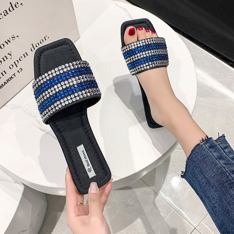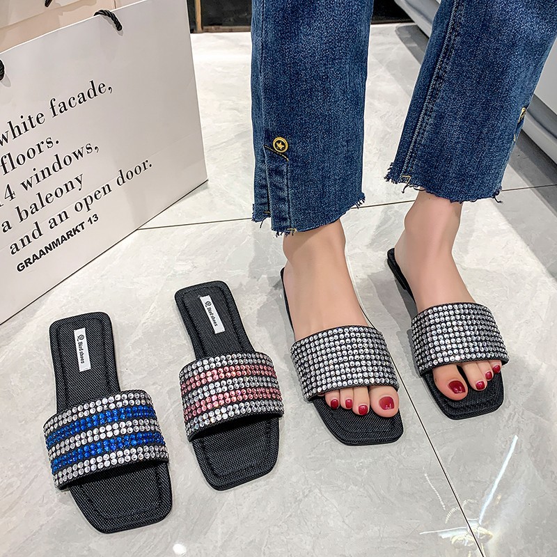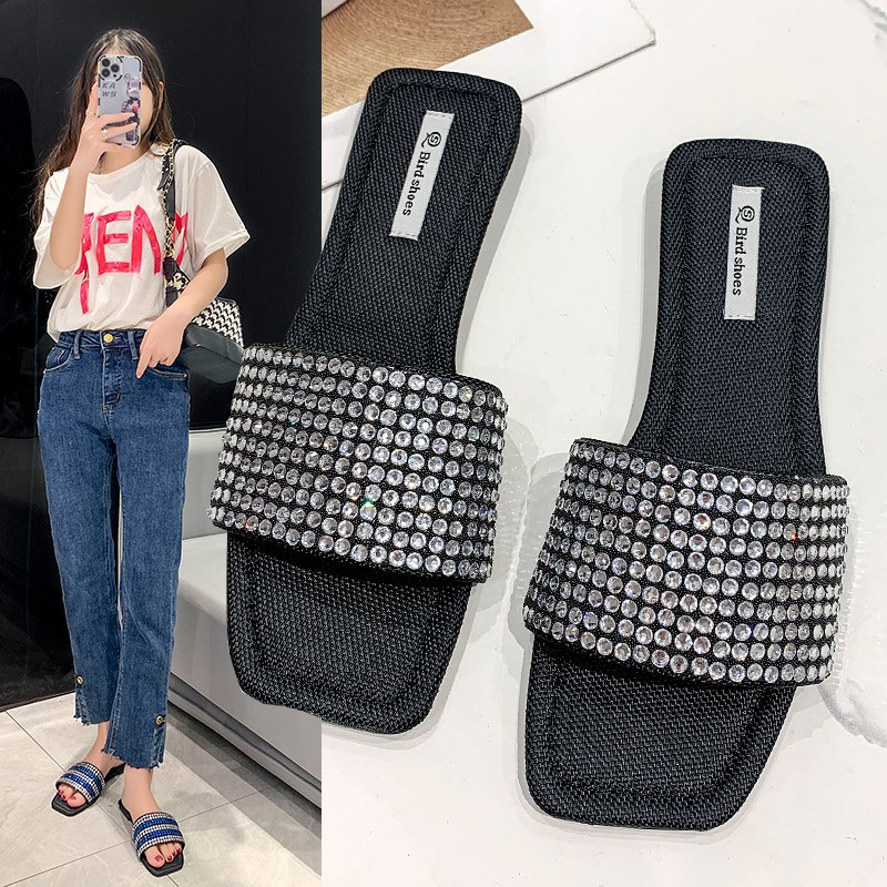 Мини-Ян с летним волшебным ветром в женских тапочках с открытым носком ~ ~ Король со стразами и плоской квадратной головой с сандалиями