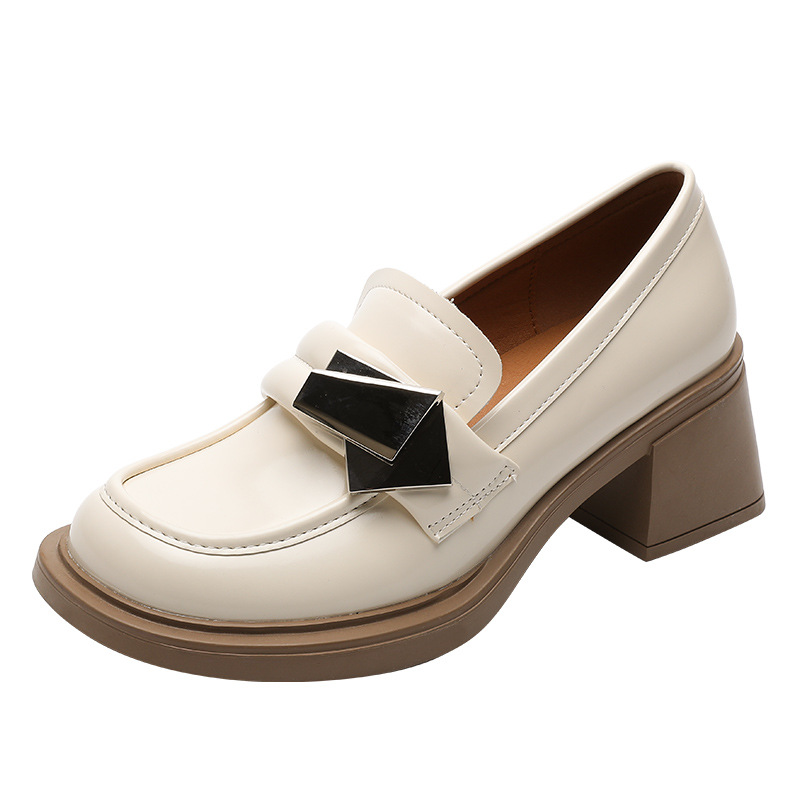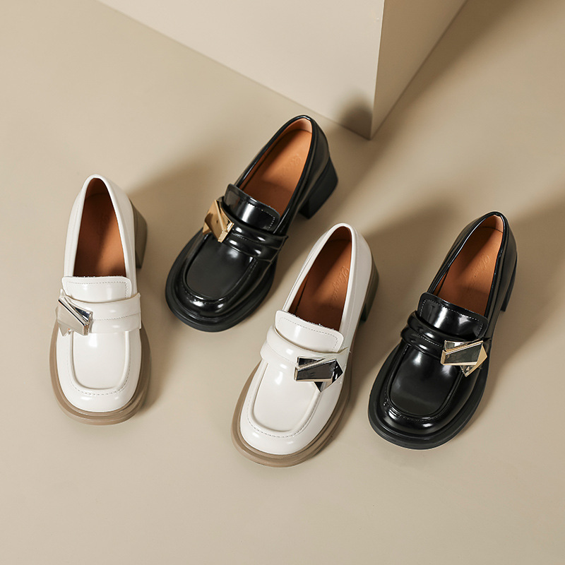 В наличии и быстрая доставка Белые серебряные лоферы с пряжкой Женские 2023 Весенние новые маленькие кожаные туфли из натуральной кожи в британском стиле на грубом каблуке