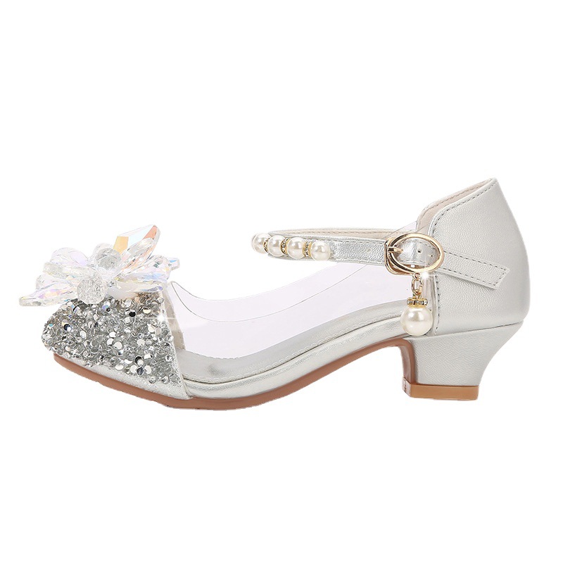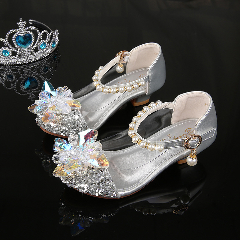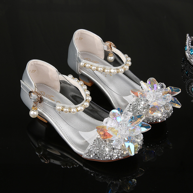 2023 Весна и осень новые детские туфли с кристаллами Золушки Корейская кожаная обувь для девочек EBAY, обувь для средних и больших детей на высоком каблуке