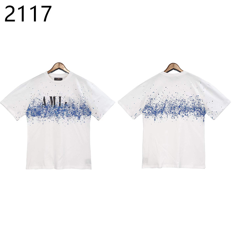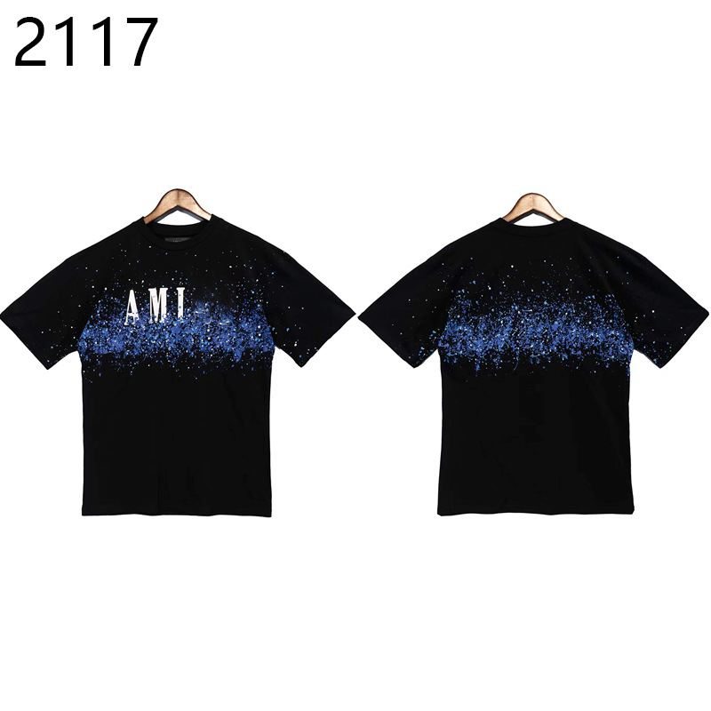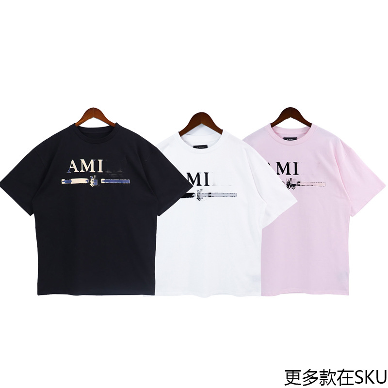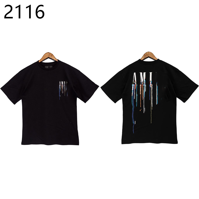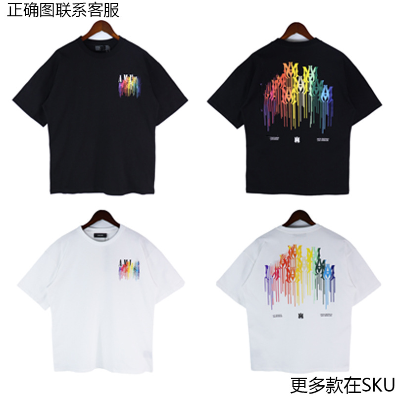 Трансграничный AMIRI High Edition с короткими рукавами с принтом буквами одежды мужская футболка Chao Chao Chip регравированный хип-хоп свободный летний круглый воротник