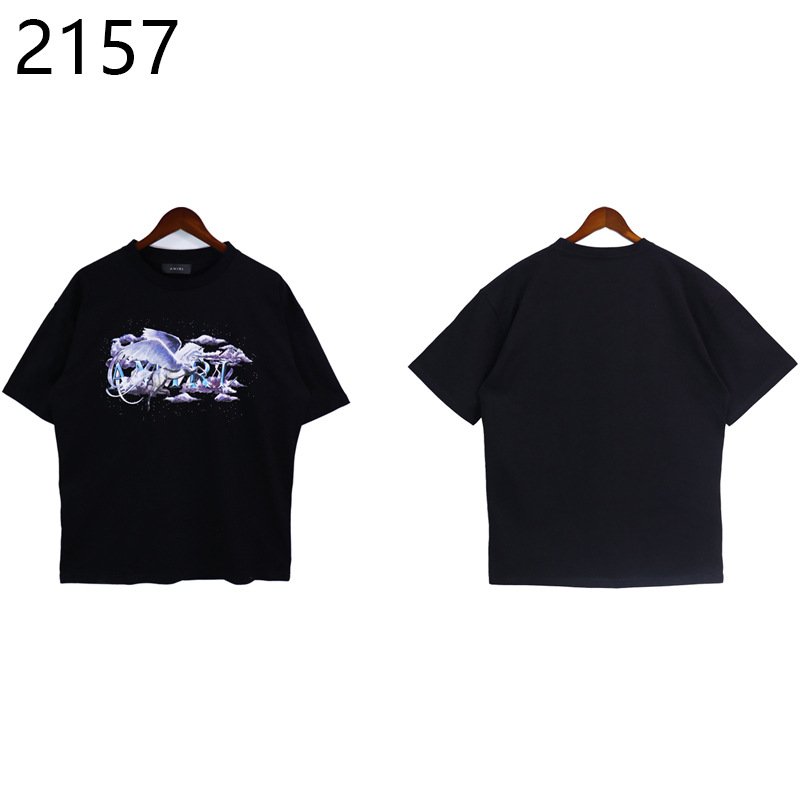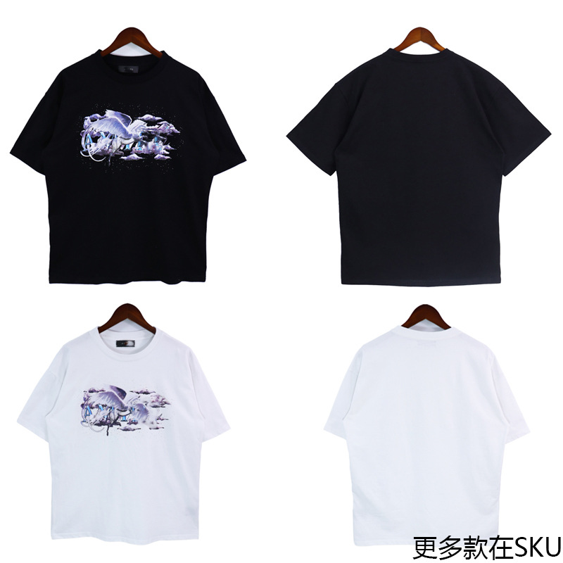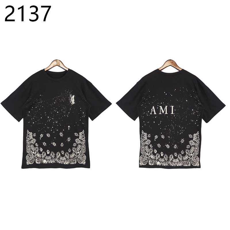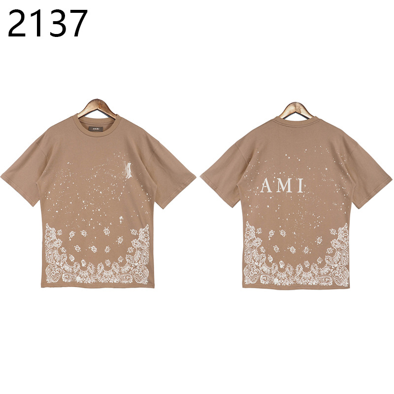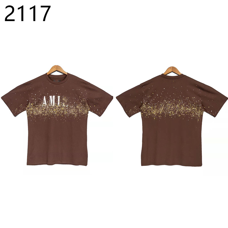 Трансграничный AMIRI High Edition с короткими рукавами с принтом буквами одежды мужская футболка Chao Chao Chip регравированный хип-хоп свободный летний круглый воротник