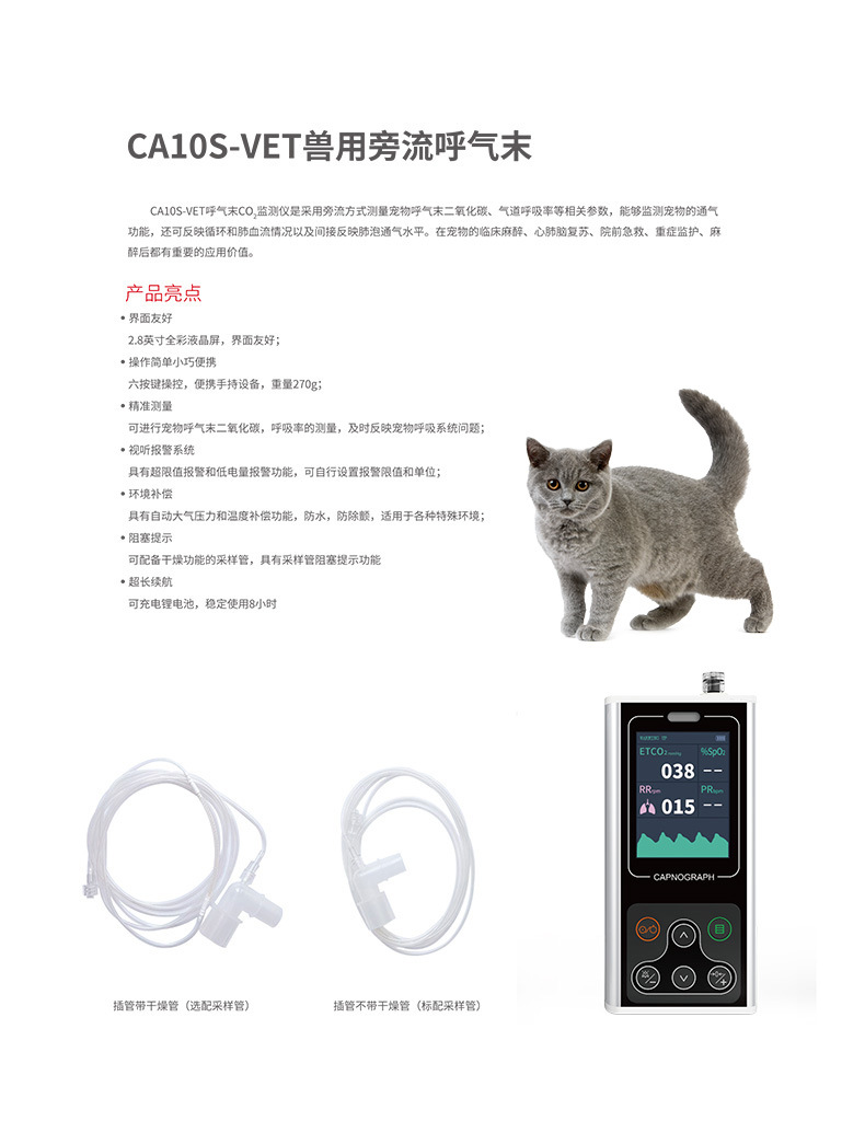 Адаптер для измерения углекислого газа в выдыхаемом воздухе животных Kangtai Veterinary Side-Stream Expiratory Pet Expiratory CO2 Monitor Gas Adapter Carbon Dioxide Sampling Tube