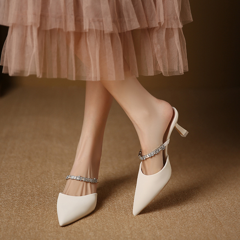 699-19 Женская 2023 Новая элегантная Верхняя одежда со стразами на высоком каблуке с острым носком Женская обувь на тонком каблуке