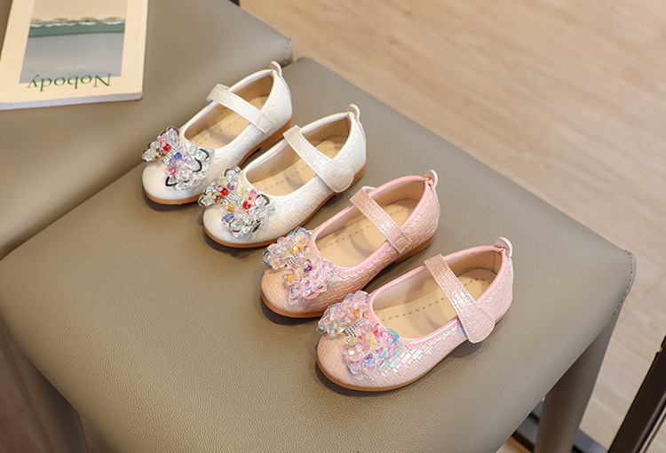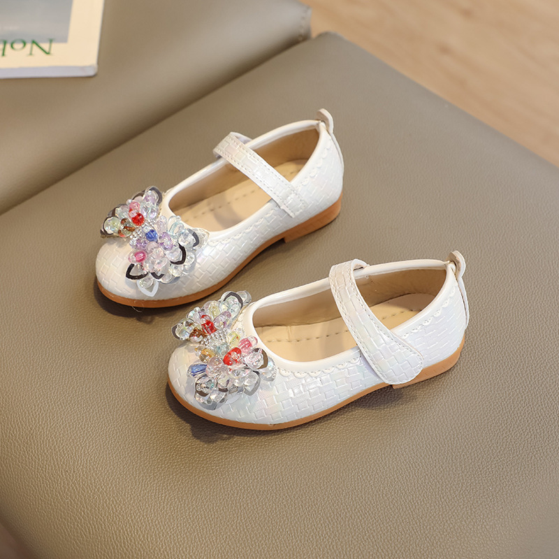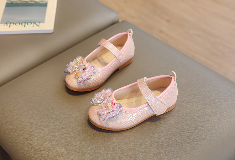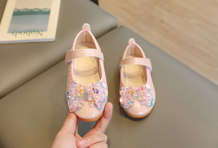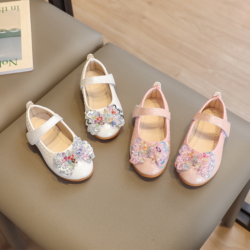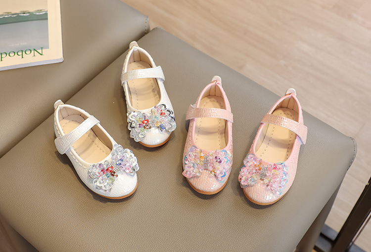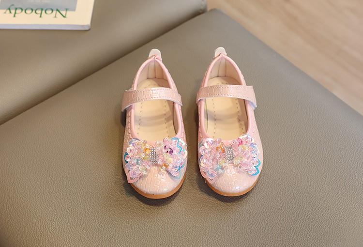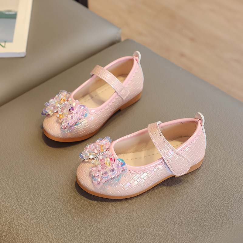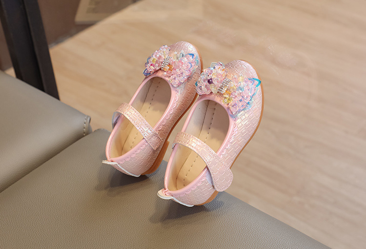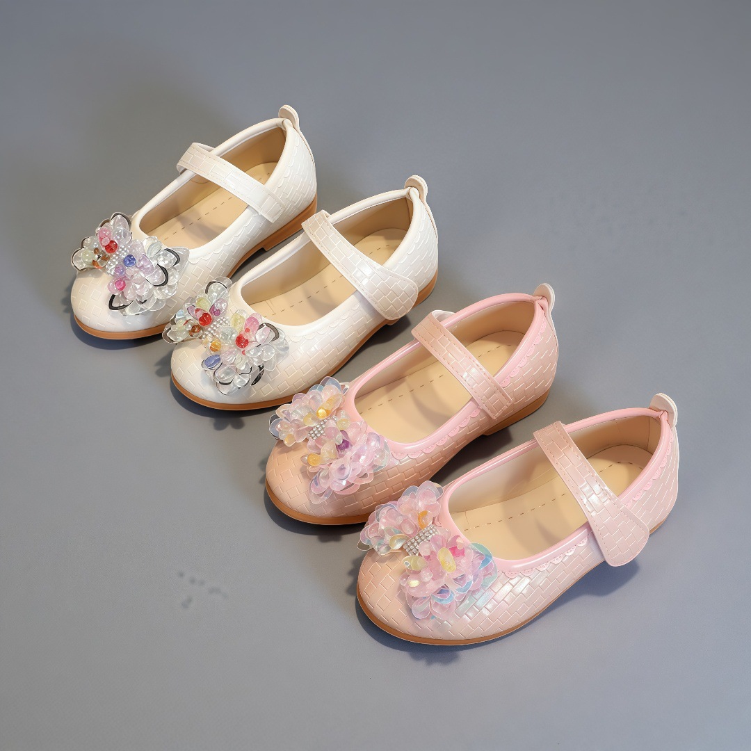 Детские кожаные туфли на плоской подошве в корейском стиле с бантом для девочек, весна-осень 2025, на липучке, для выступлений и танцев