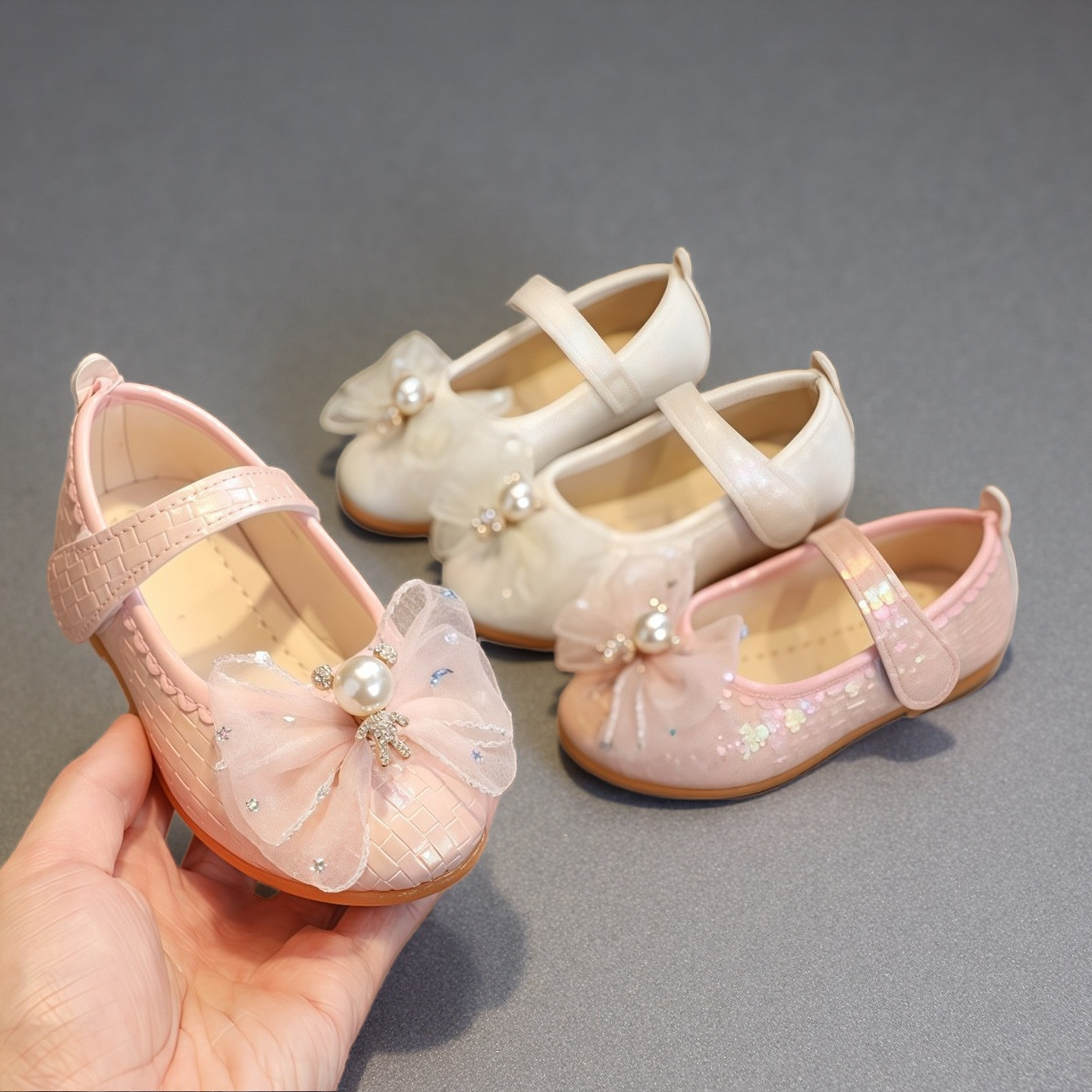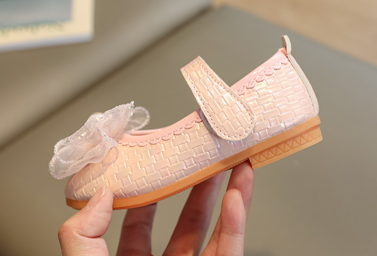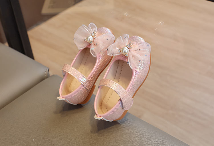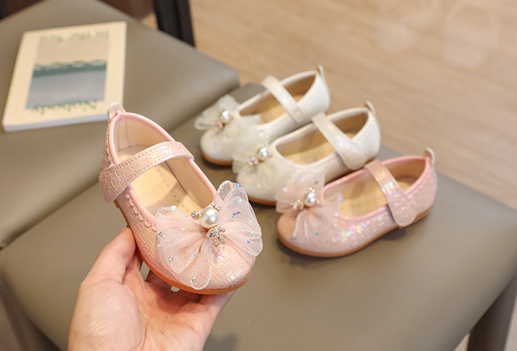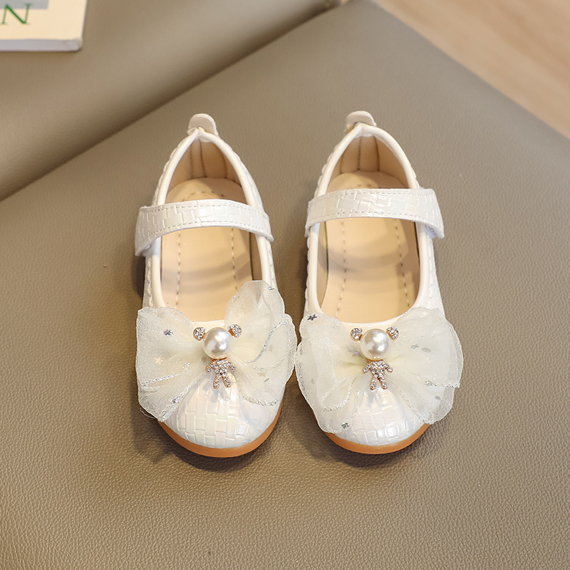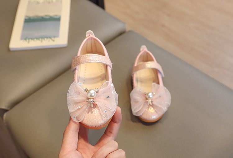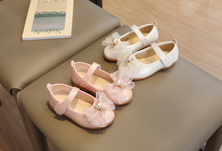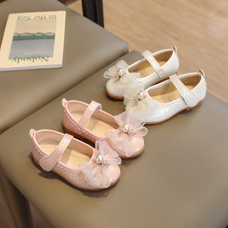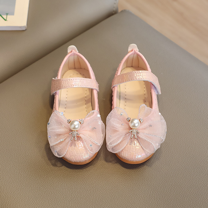 Детские кожаные туфли для девочек на весну-осень 2025 года с бантом, балетки-принцессы, танцевальные туфли на липучке для девочек