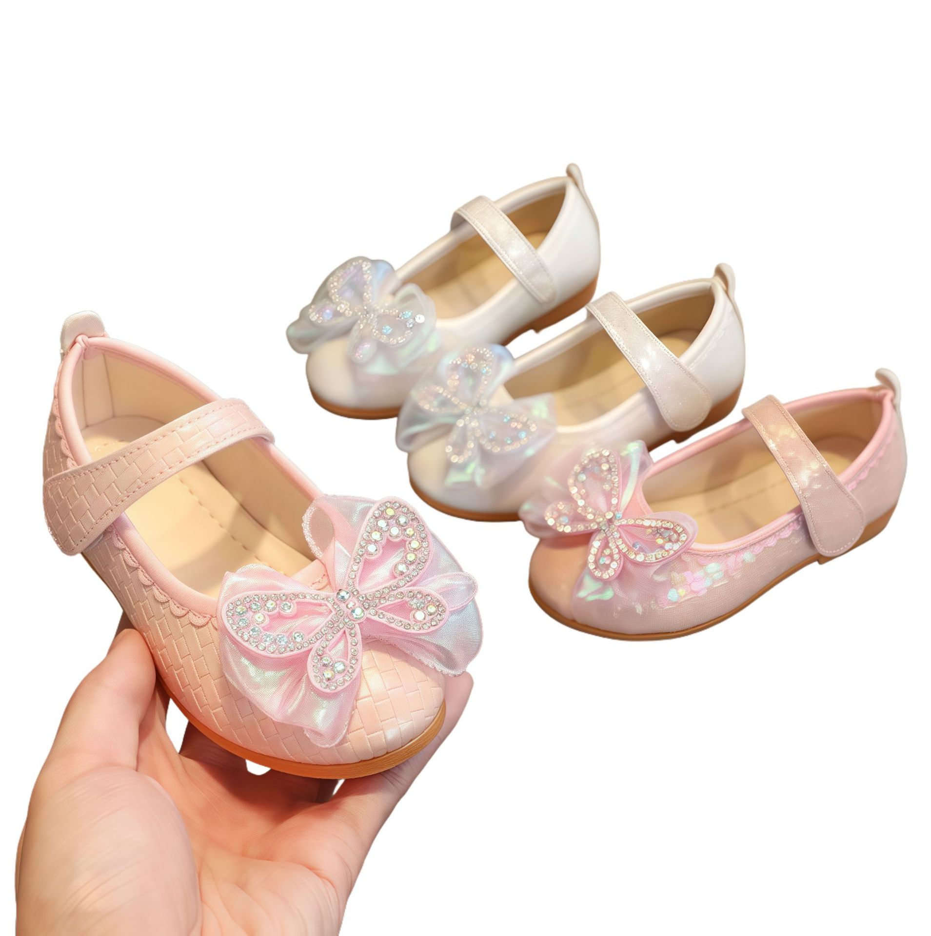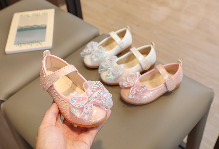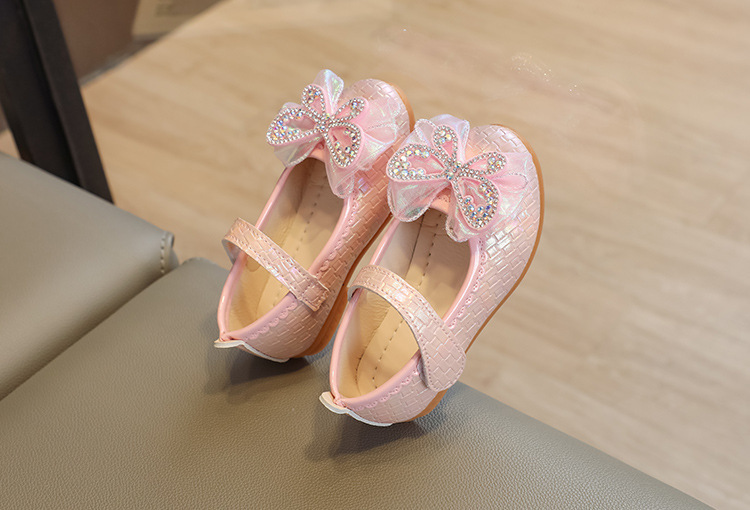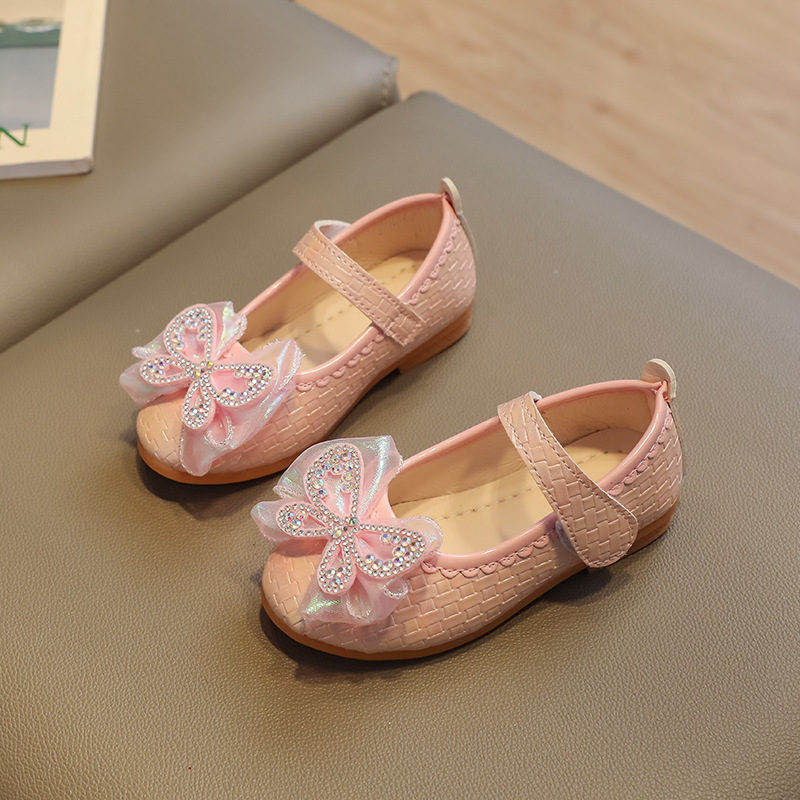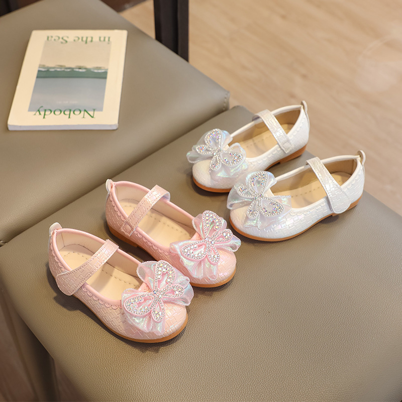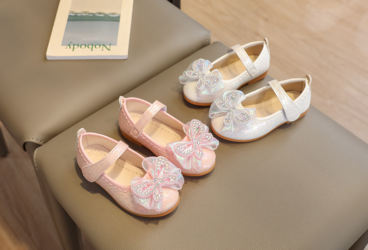 Туфли для девочек в стиле принцессы, детские кожаные туфли, весенние туфли для девочек 2025 года, туфли с жемчугом и кристаллами, мягкие балетки для маленьких девочек, балетки