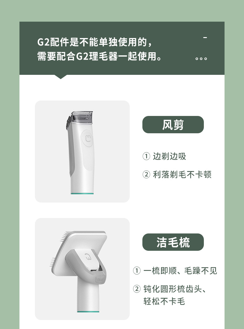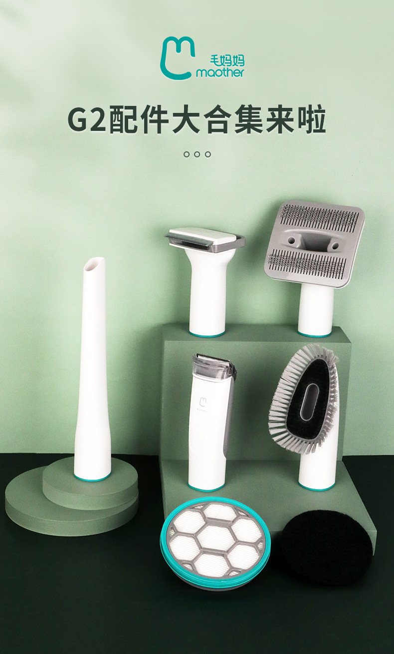 G2—1 плоское всасывание; G2—1 распушительная расческа; G2 — 1 расческа для чистки волос (при размещении заказа укажите новую или старую модель); G2—1 щетка для чистки; G2—1 ветровая нагрузка; G2—1 ветровая ножничная головка (без ручки); G2—1 компонент Hypa; G2 — чистящая подушечка*6 шт.; G2 — пылесборник