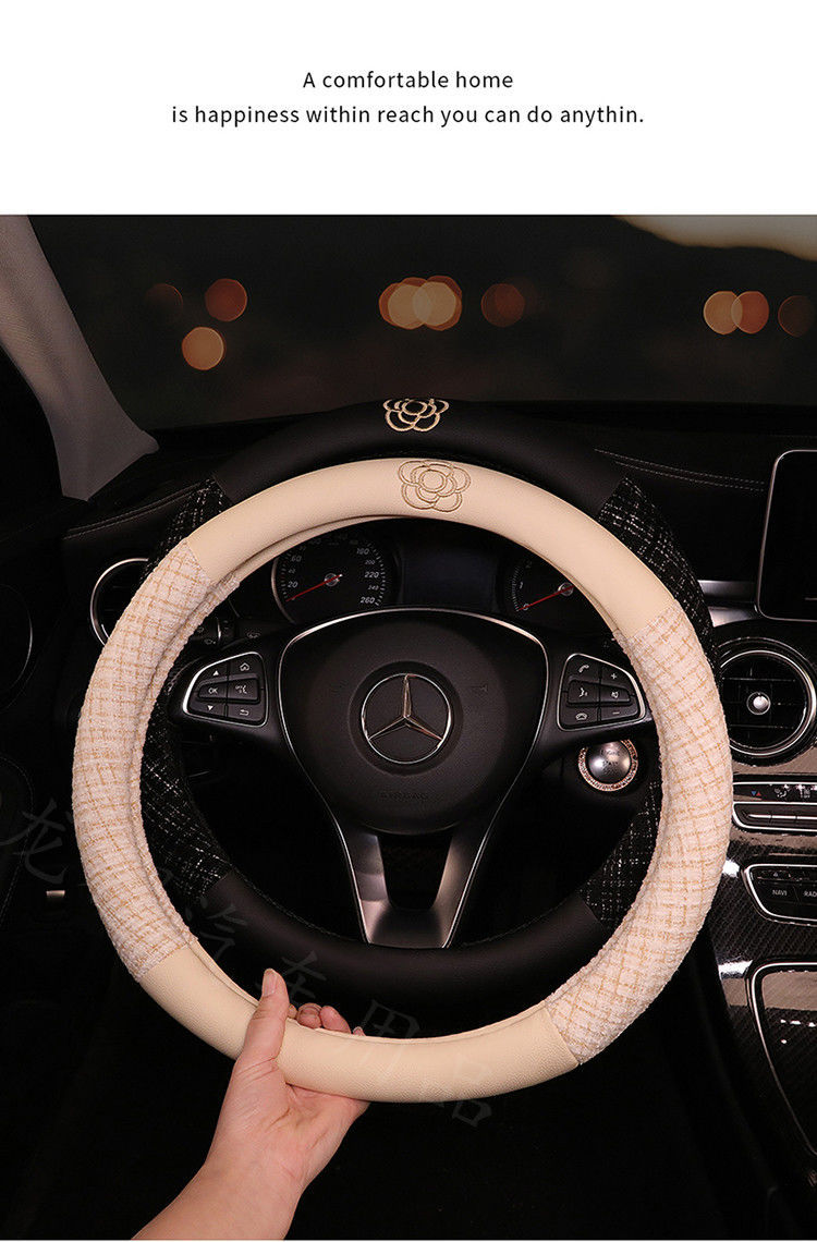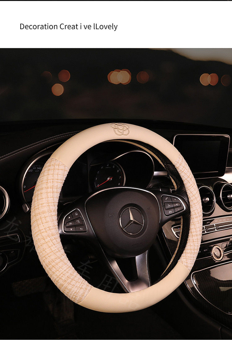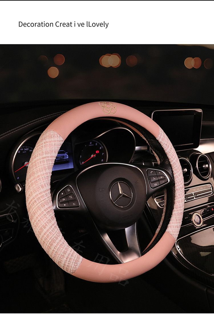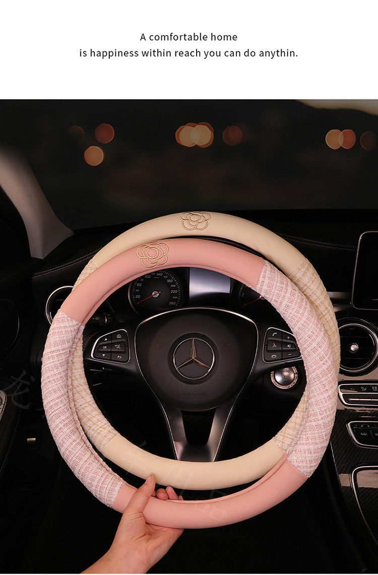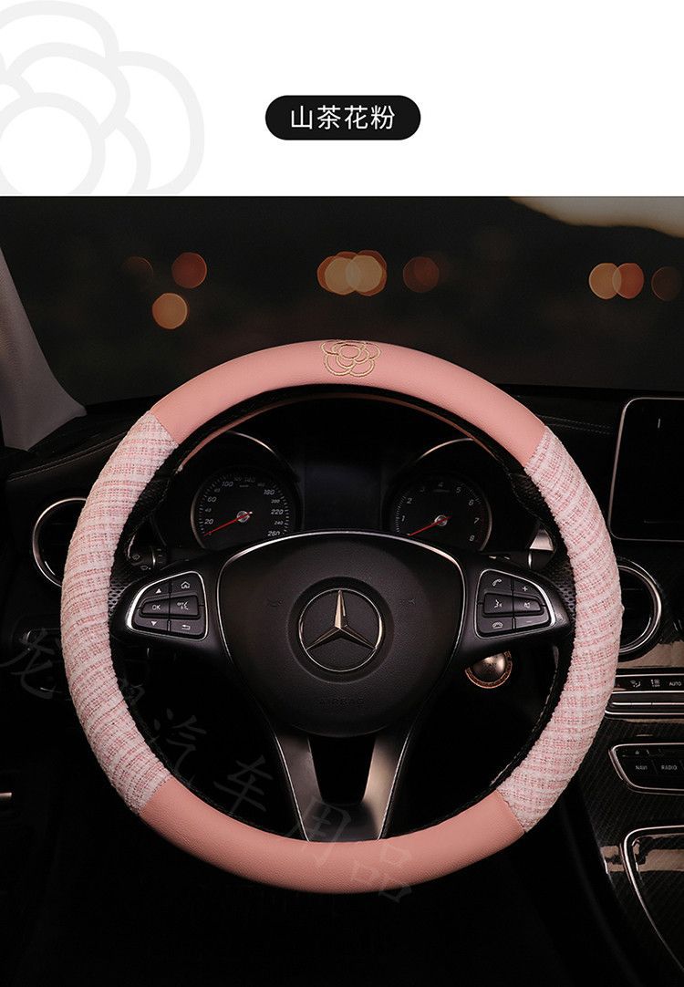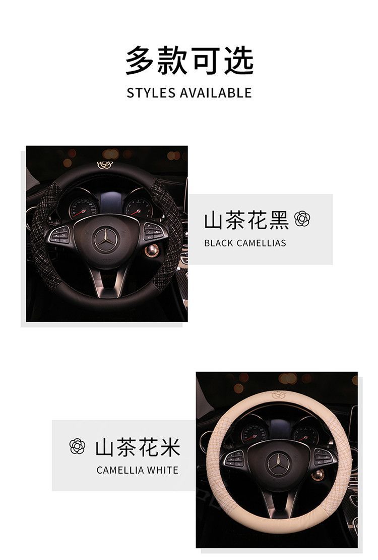Чехол на руль автомобиля Four Seasons Universal Camellia милый Нескользящий Впитывающий пот дышащий кожаный Универсальный чехол на руль