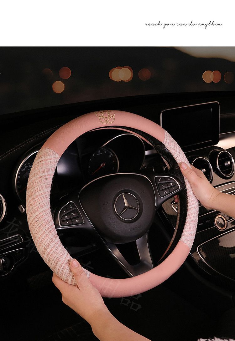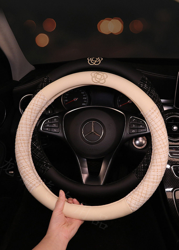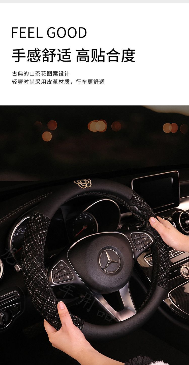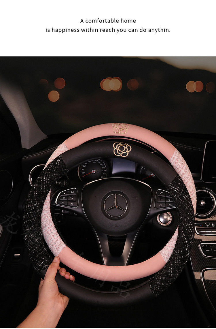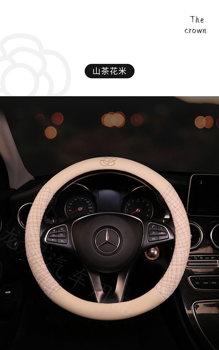Чехол на руль автомобиля Four Seasons Universal Camellia милый Нескользящий Впитывающий пот дышащий кожаный Универсальный чехол на руль