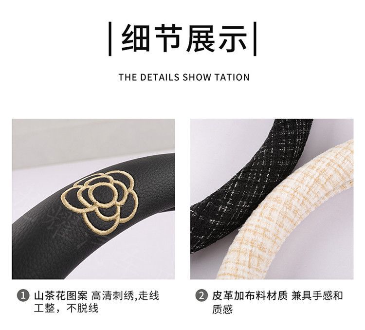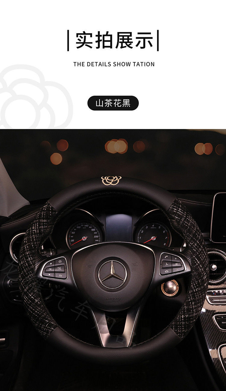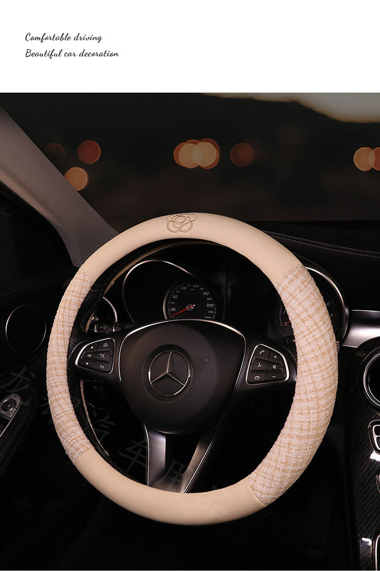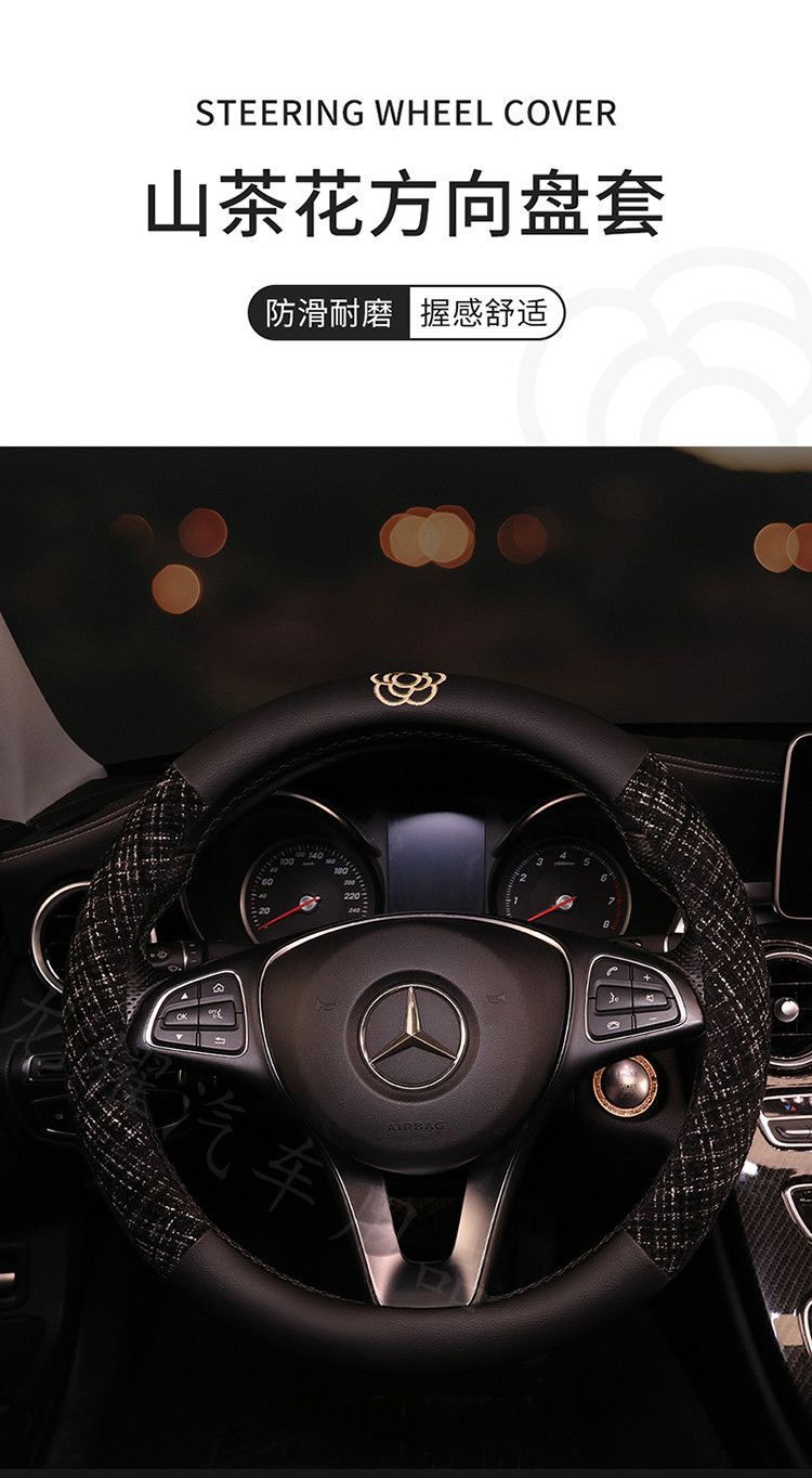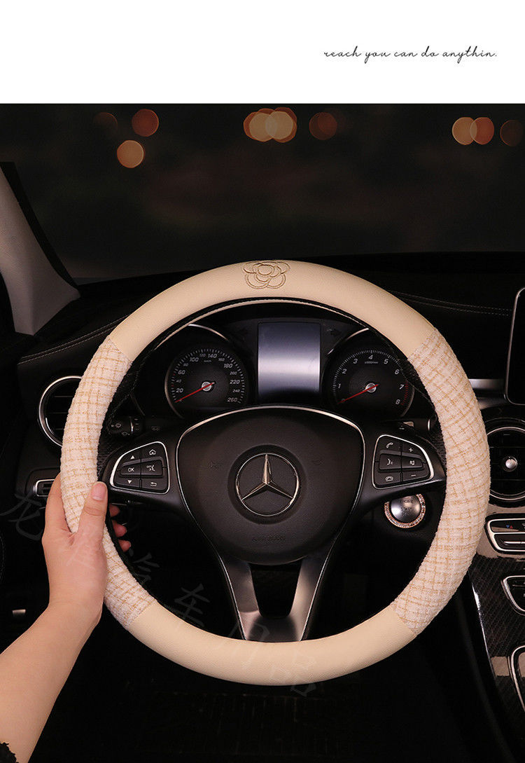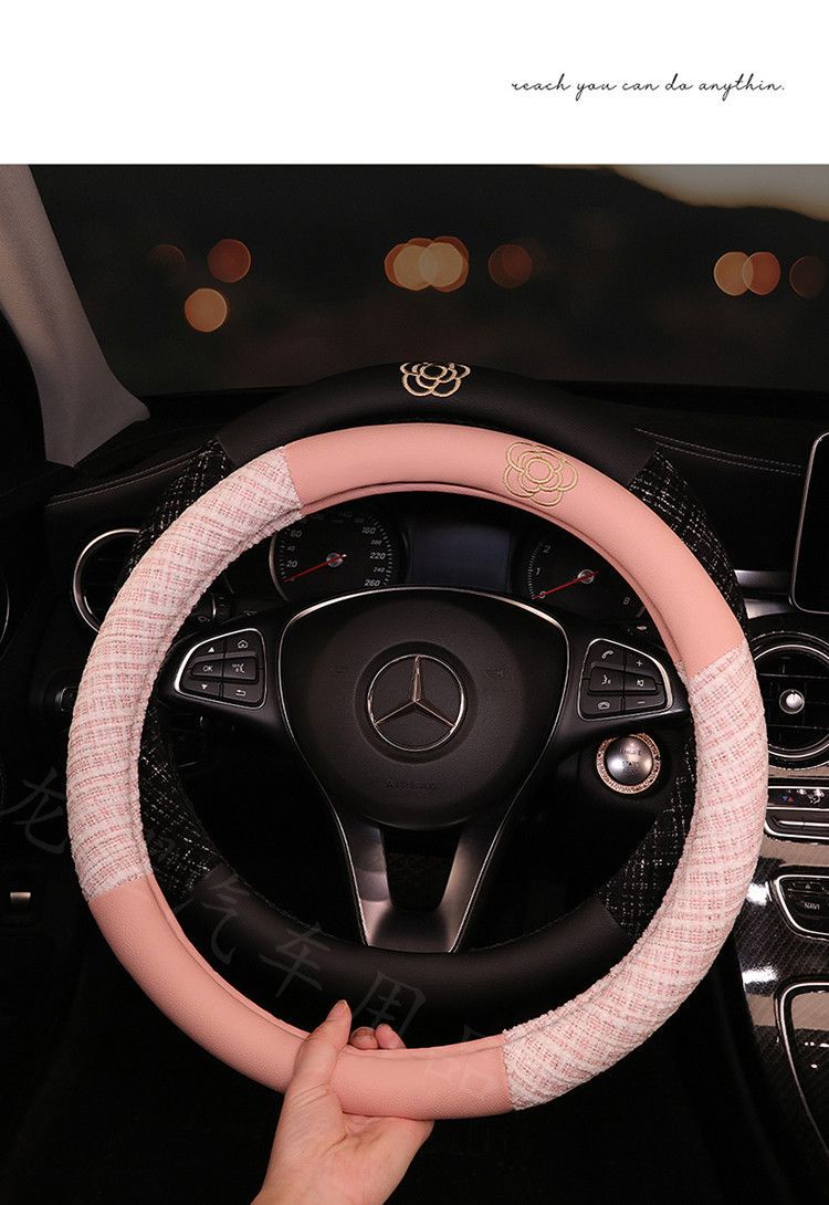 Чехол на руль автомобиля Four Seasons Universal Camellia милый Нескользящий Впитывающий пот дышащий кожаный Универсальный чехол на руль