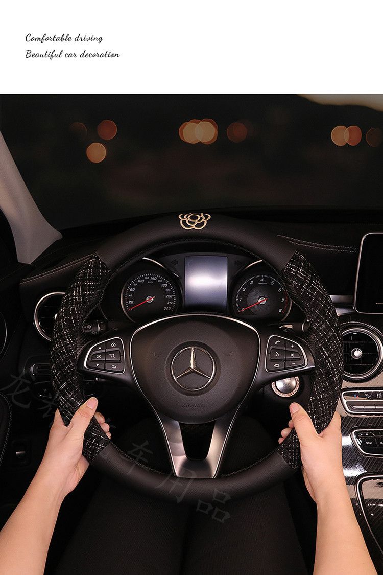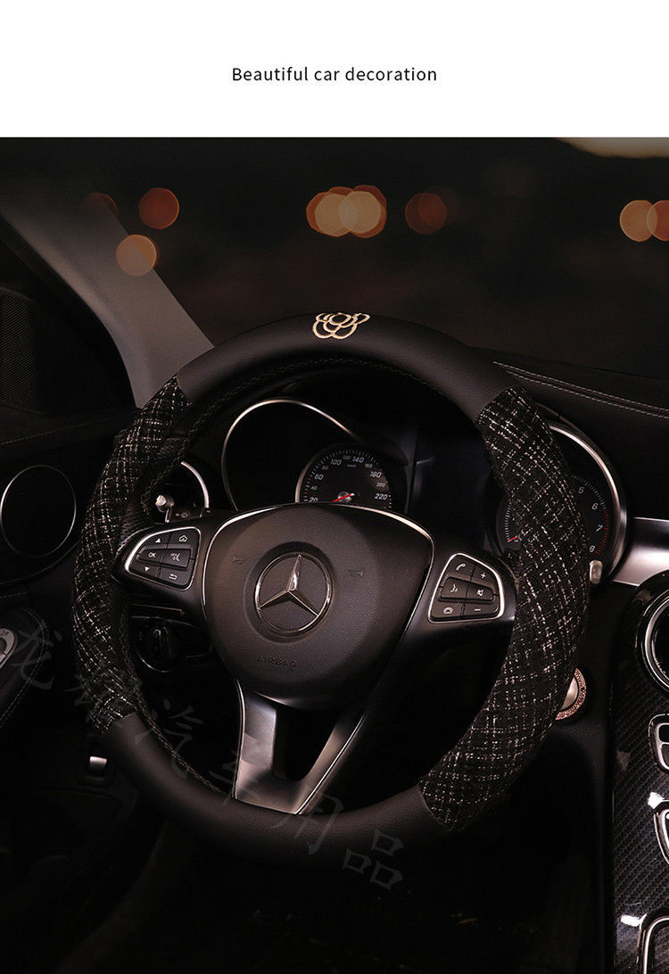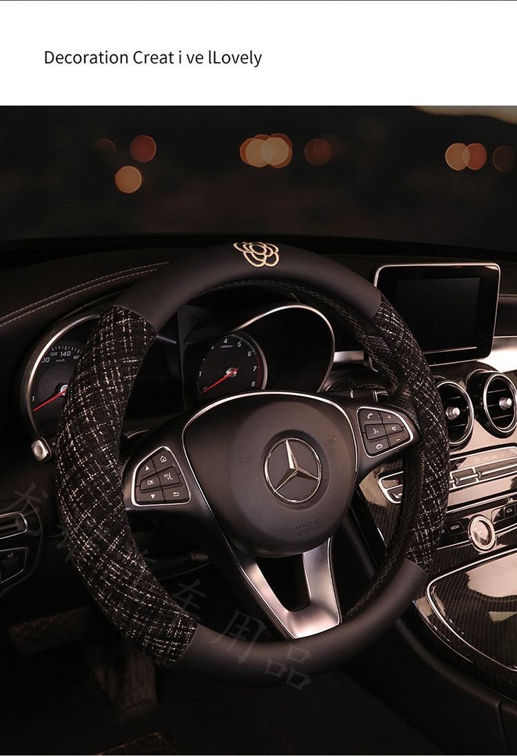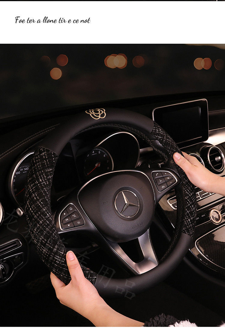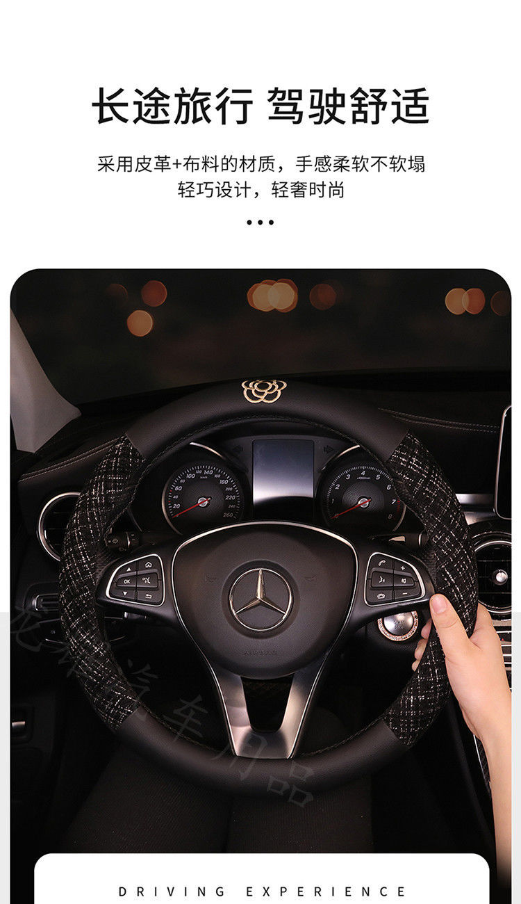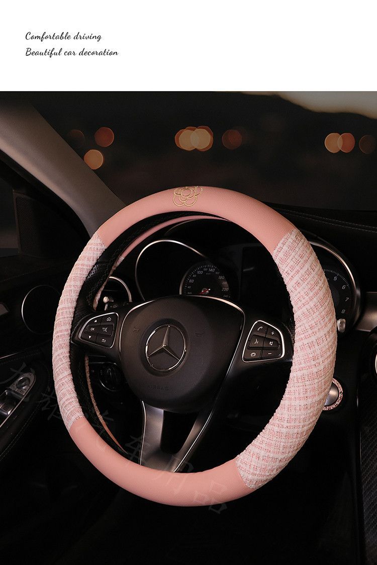 Чехол на руль автомобиля Four Seasons Universal Camellia милый Нескользящий Впитывающий пот дышащий кожаный Универсальный чехол на руль