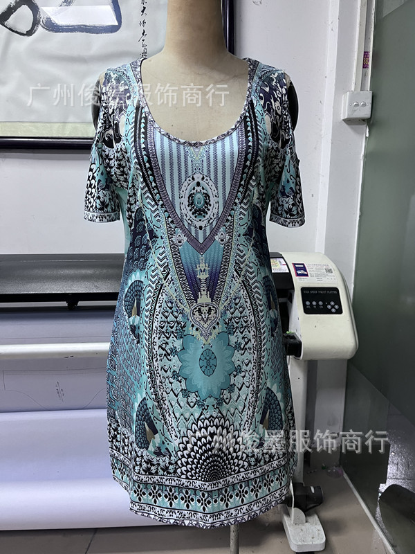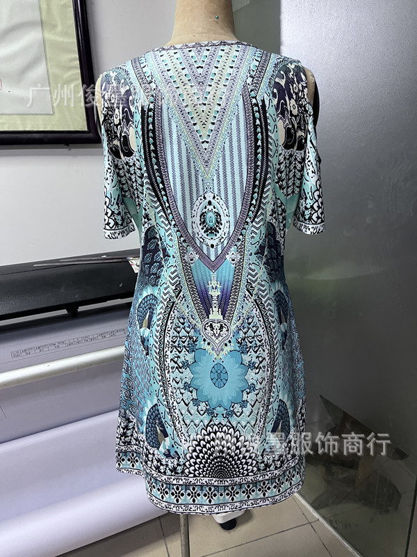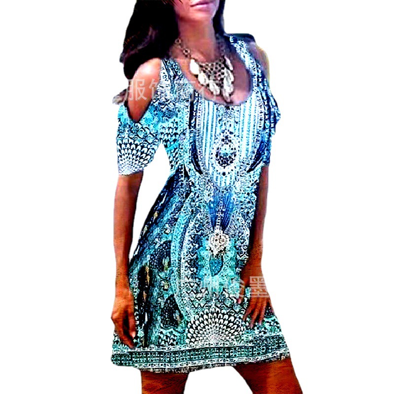 Трансграничная Весна и лето Новая независимая станция Amazon, горячая Распродажа, сексуальное женское приталенное платье с круглым вырезом и открытыми плечами и принтом