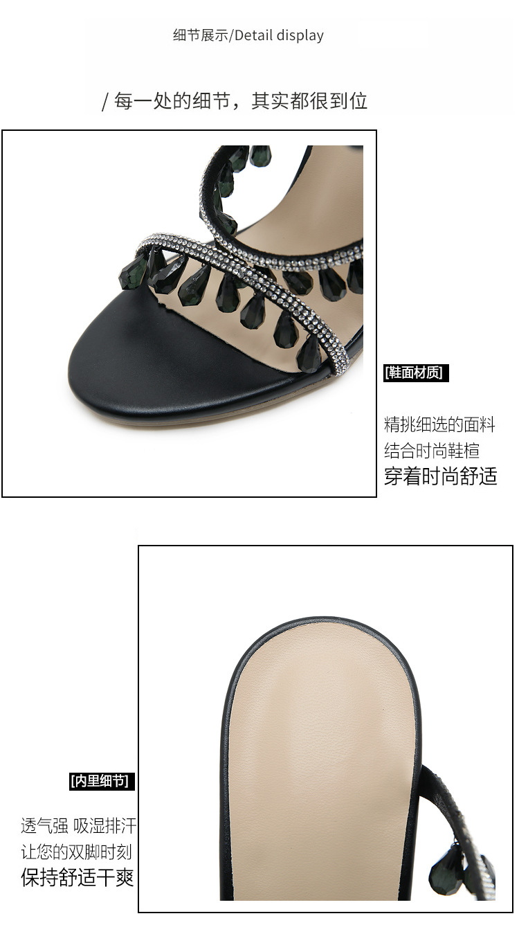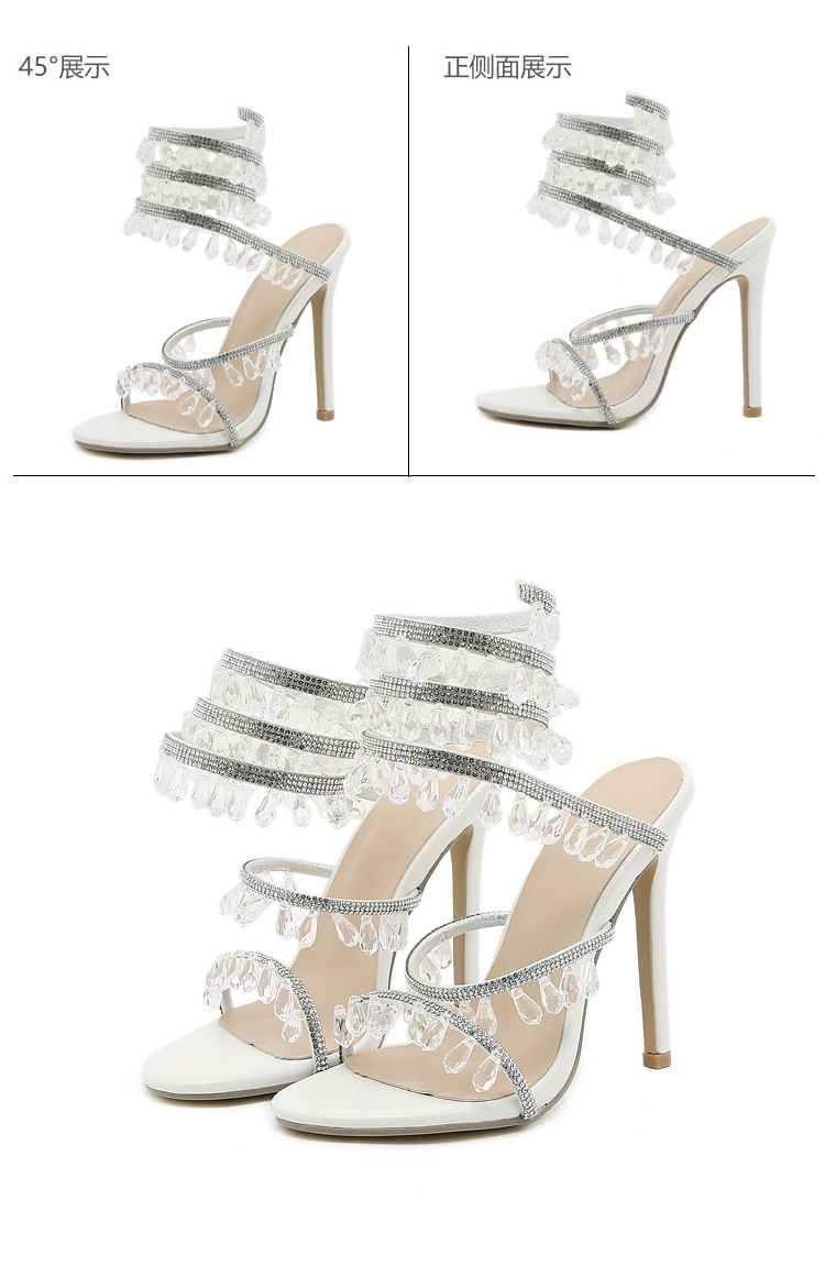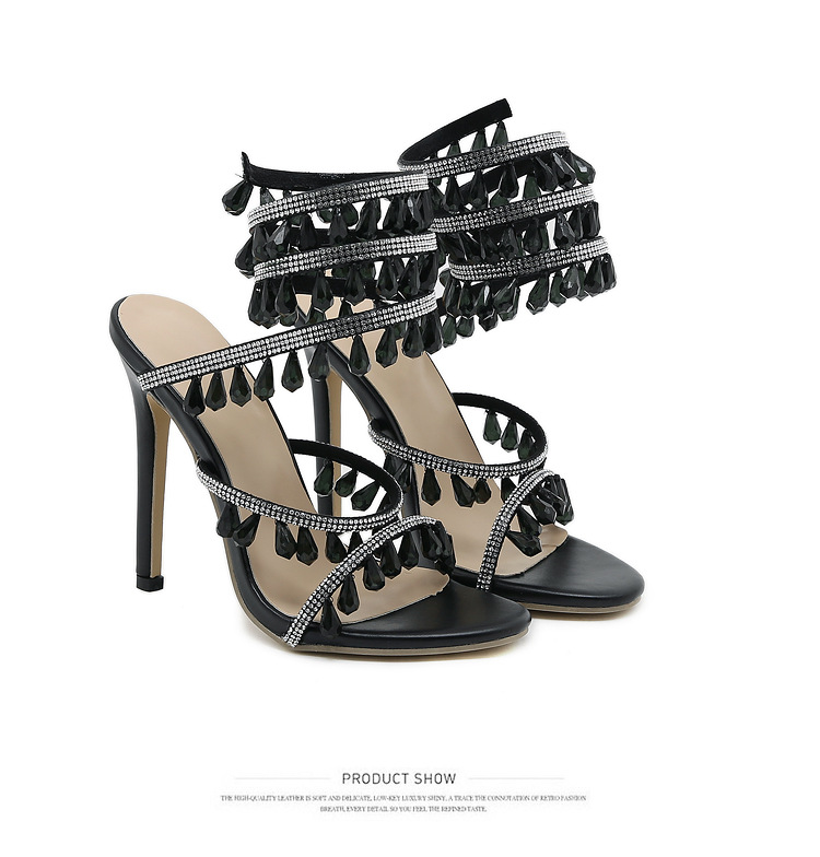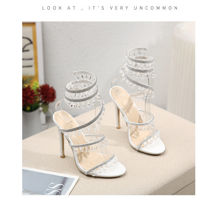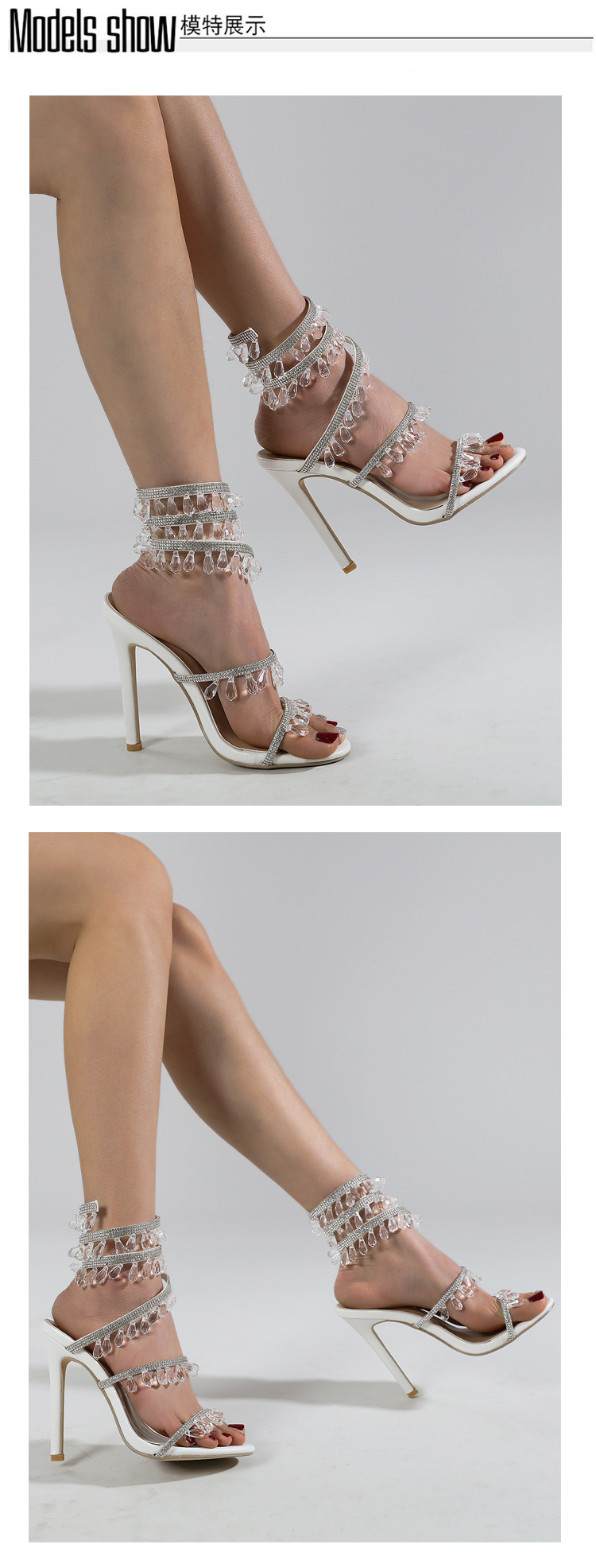 Летние женские босоножки 2024 года, новая европейская и американская мода, роскошные, с камнями, на высоком каблуке, с ремешками на щиколотке и тонкими каблуками, размер 41 (для внешней торговли)