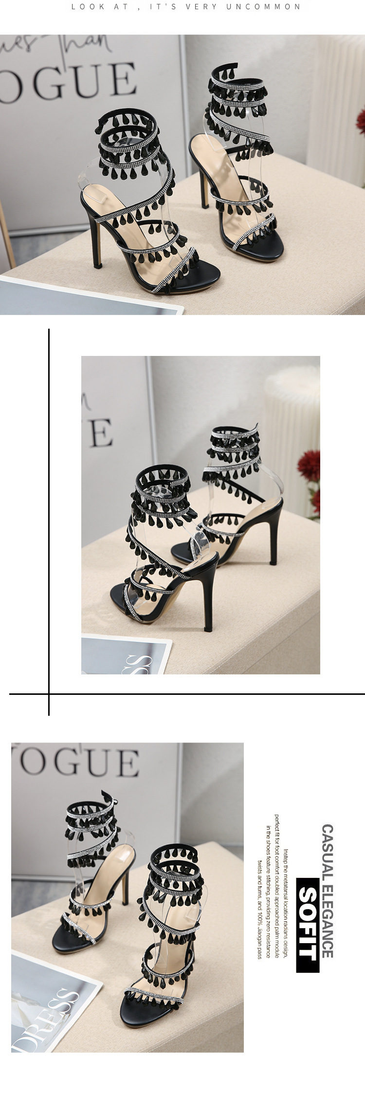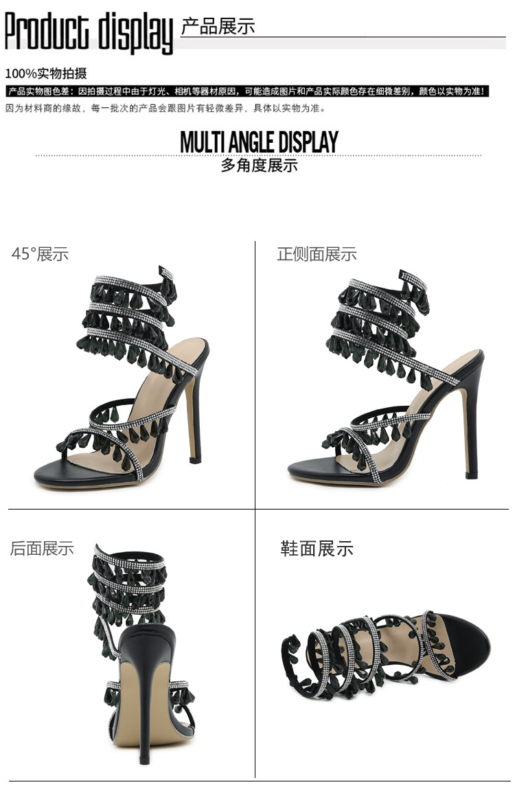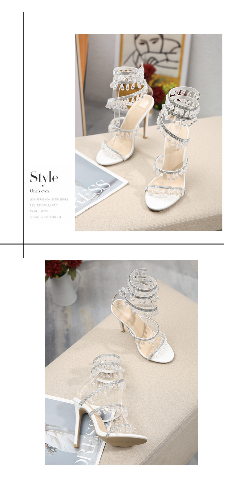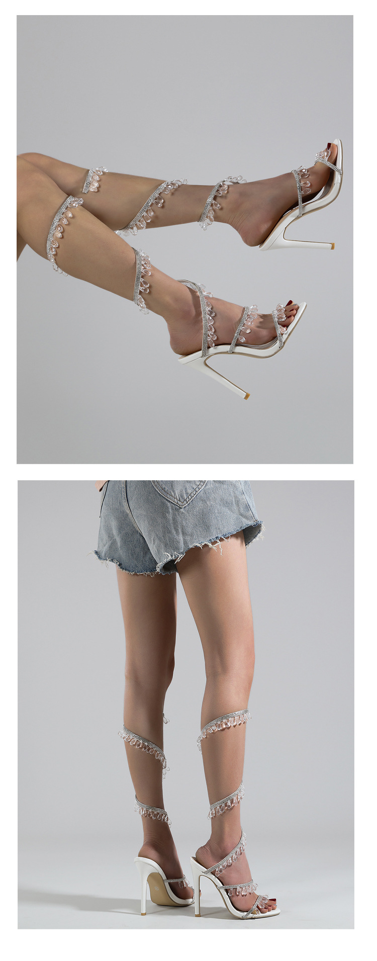 Летние женские босоножки 2024 года, новая европейская и американская мода, роскошные, с камнями, на высоком каблуке, с ремешками на щиколотке и тонкими каблуками, размер 41 (для внешней торговли)