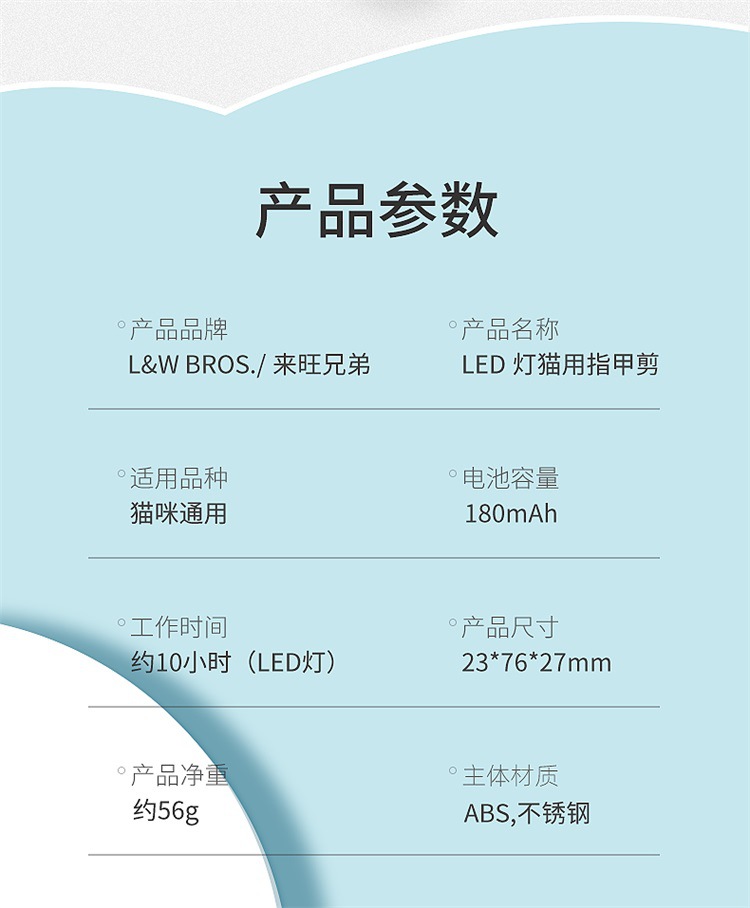 Аккумулятор для кусачек для ногтей со светодиодной подсветкой Laiwang Brothers, подходит для маленьких и средних домашних животных
