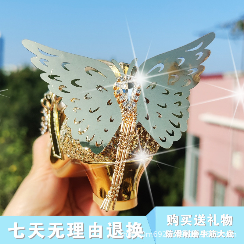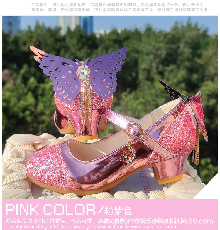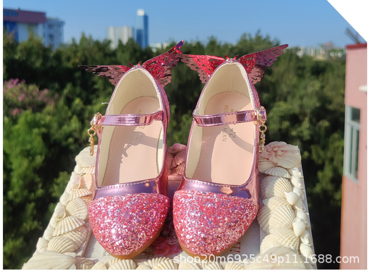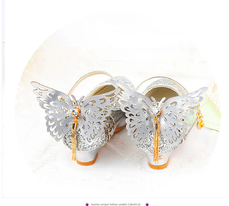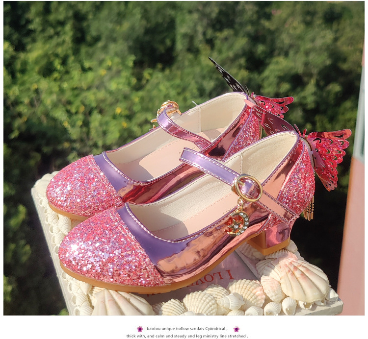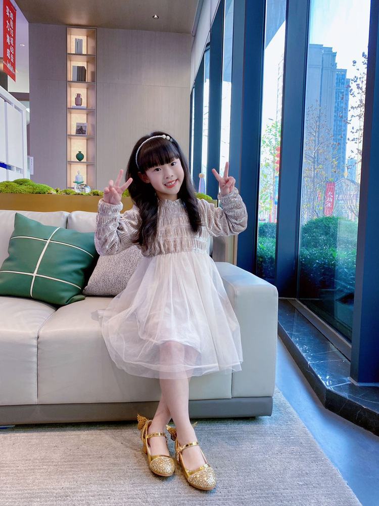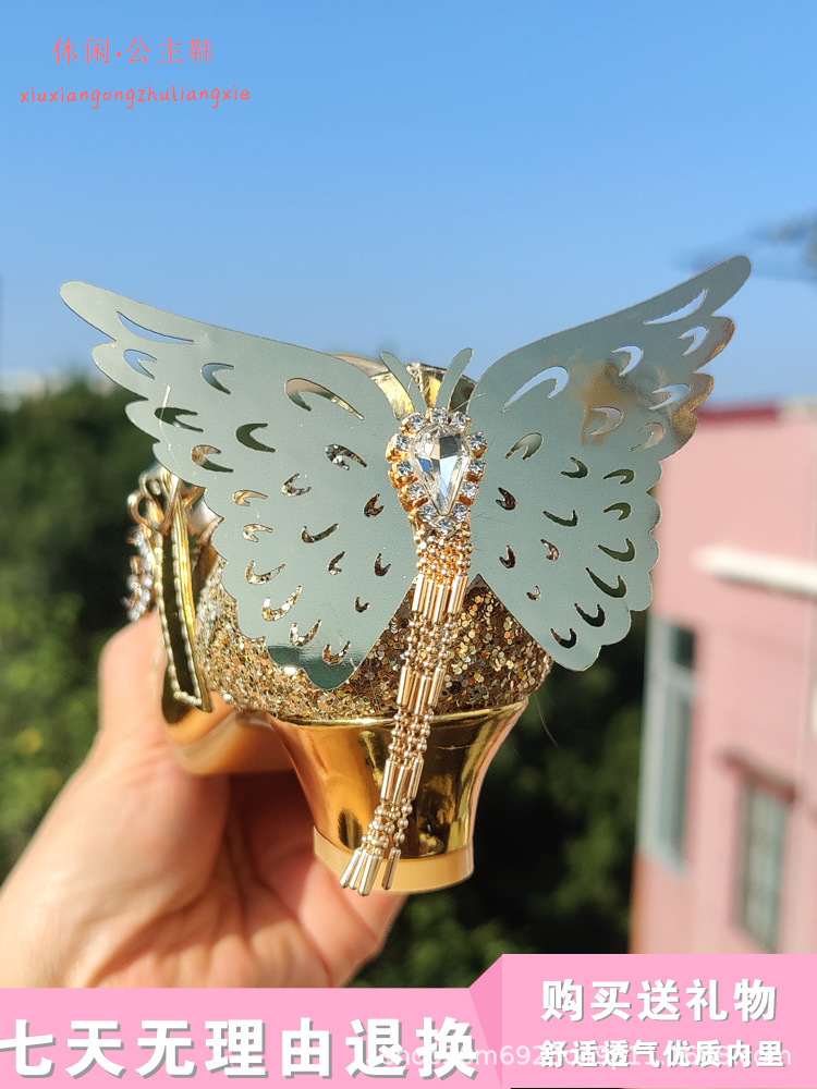 Новогодняя обувь принцессы для девочек, детская обувь на высоком каблуке с платьем, модная корейская модная обувь из иностранной кожи с кристаллами, золотой прилив