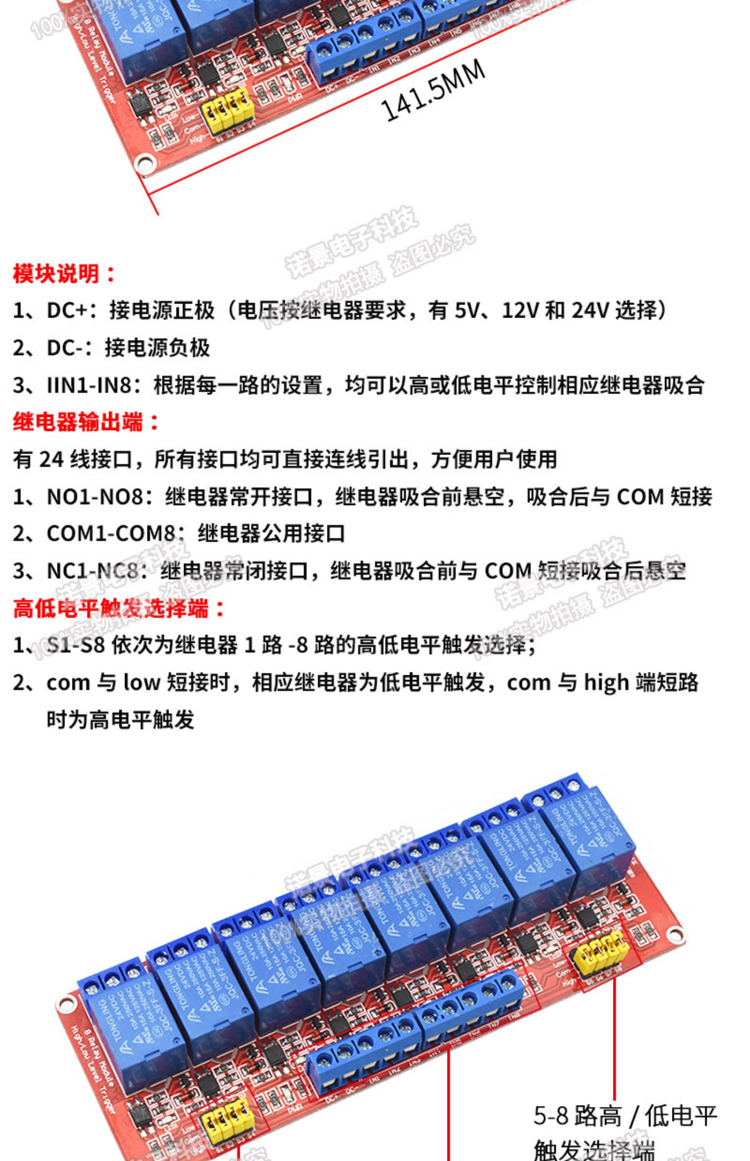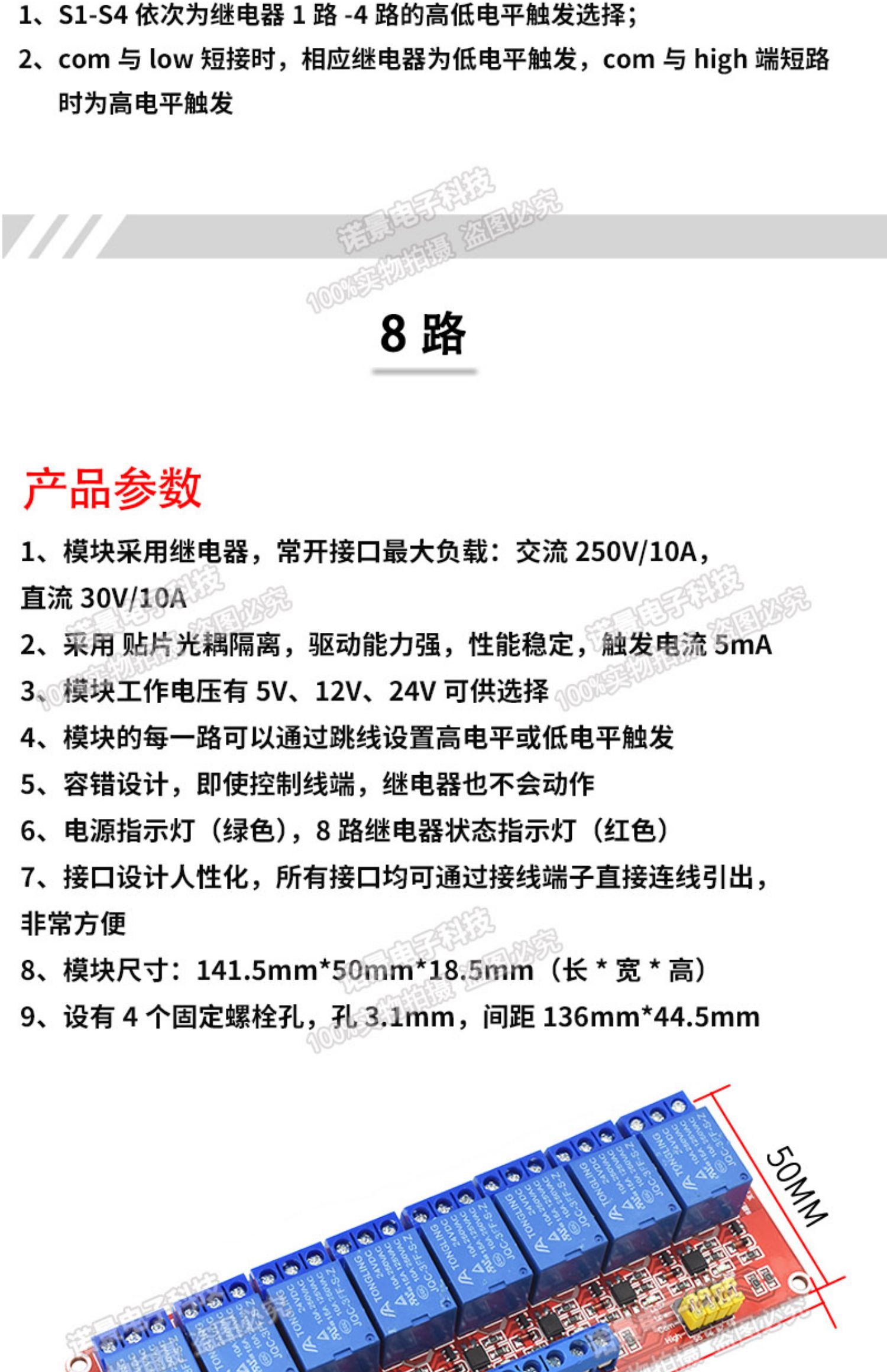 1/2/4/6/8-путный модуль реле 5V12V24V оптопарная изоляция высокого и низкого уровня триггера однокристала