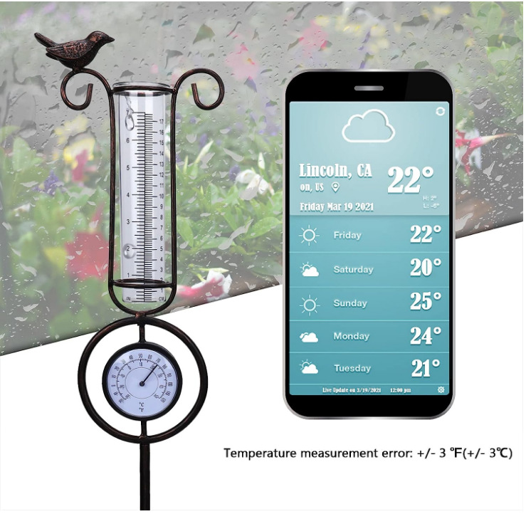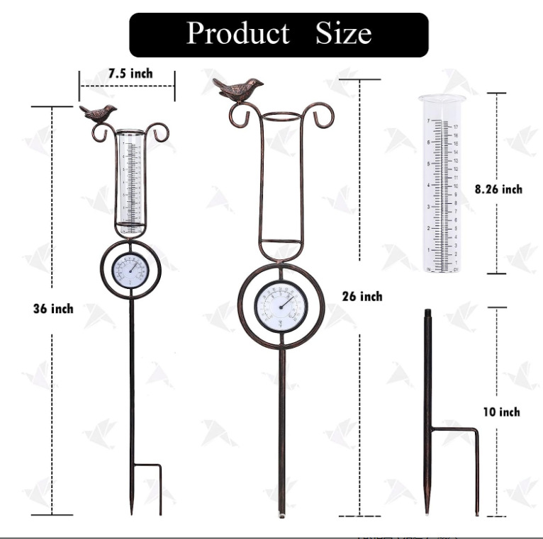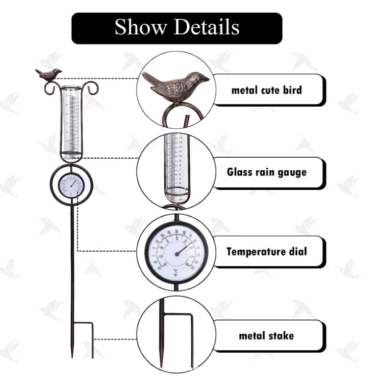 Открытый дождевик (около см) металлический птичий садовый кол с термометром для внутреннего двора