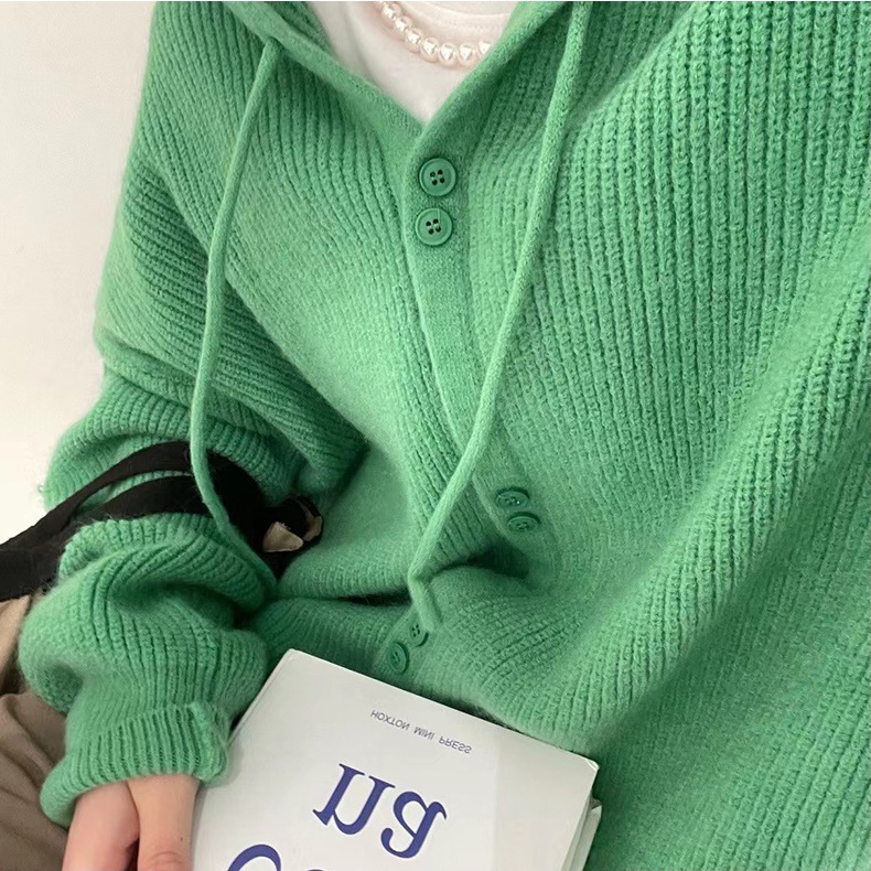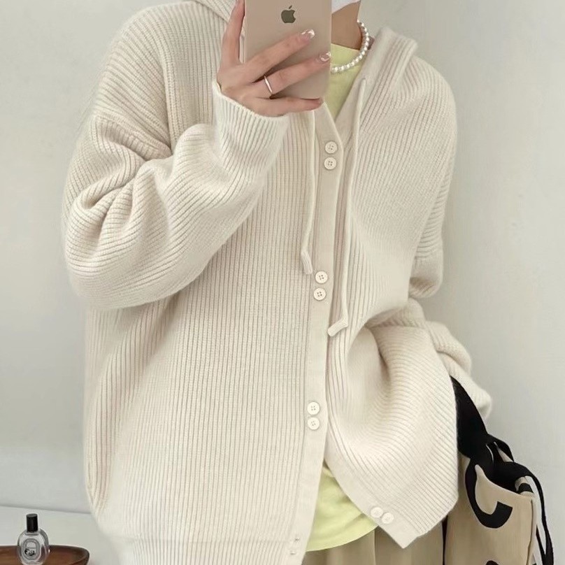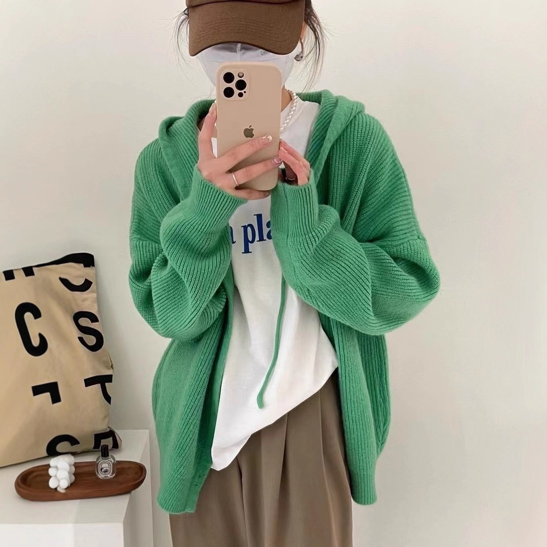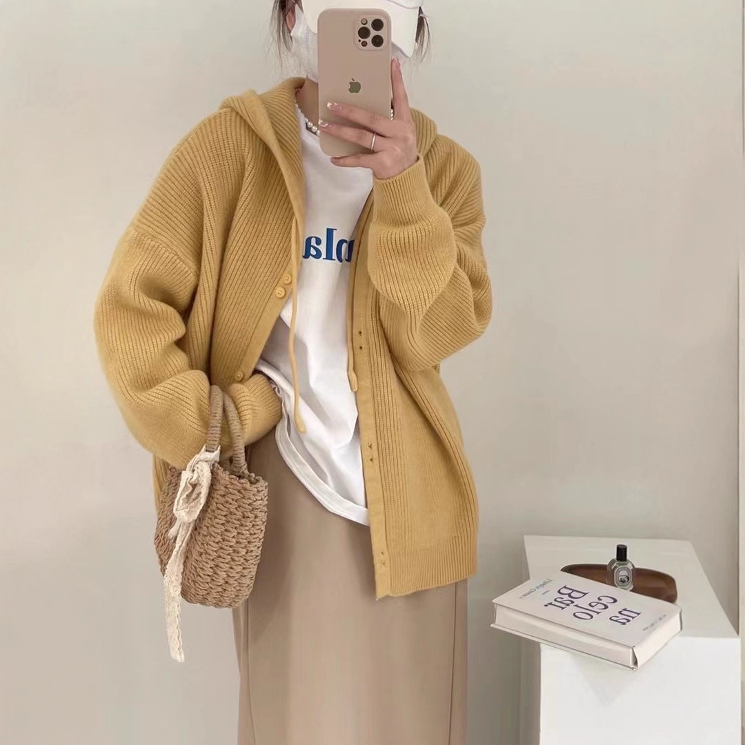 Вязаный кардиган с капюшоном, Ранняя осень 2023, новый мягкий вощистый корейский Свободный мягкий свитер с фруктозой, Женское пальто, Топ