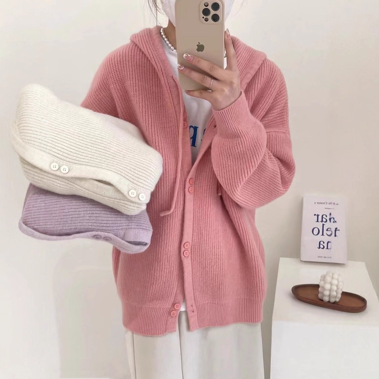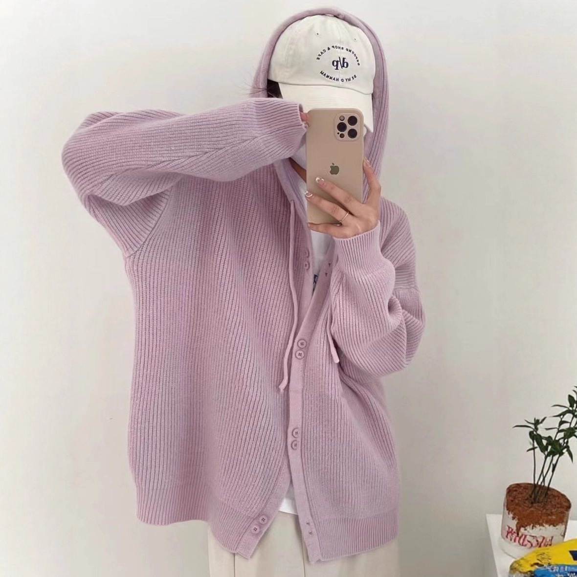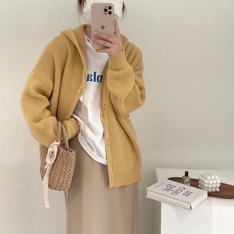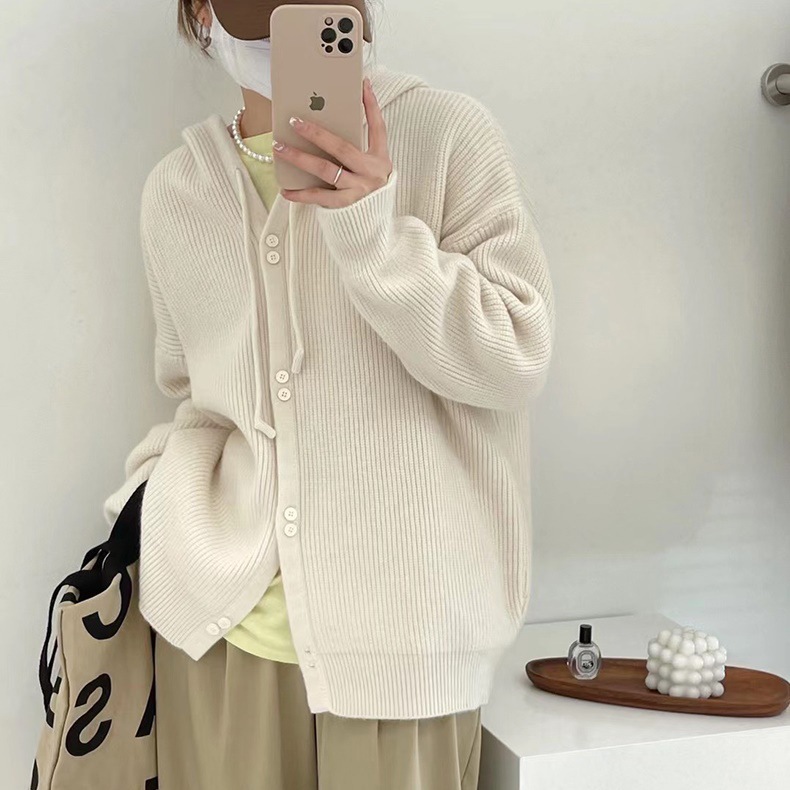 Вязаный кардиган с капюшоном, Ранняя осень 2023, новый мягкий вощистый корейский Свободный мягкий свитер с фруктозой, Женское пальто, Топ