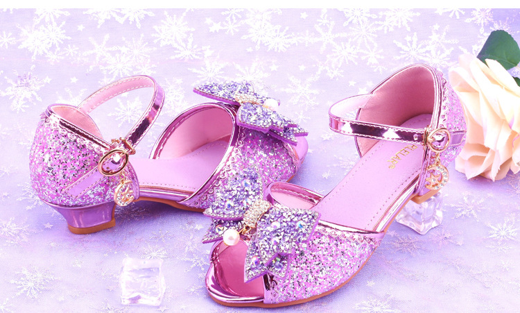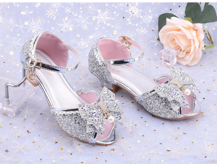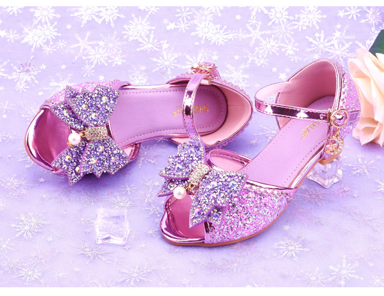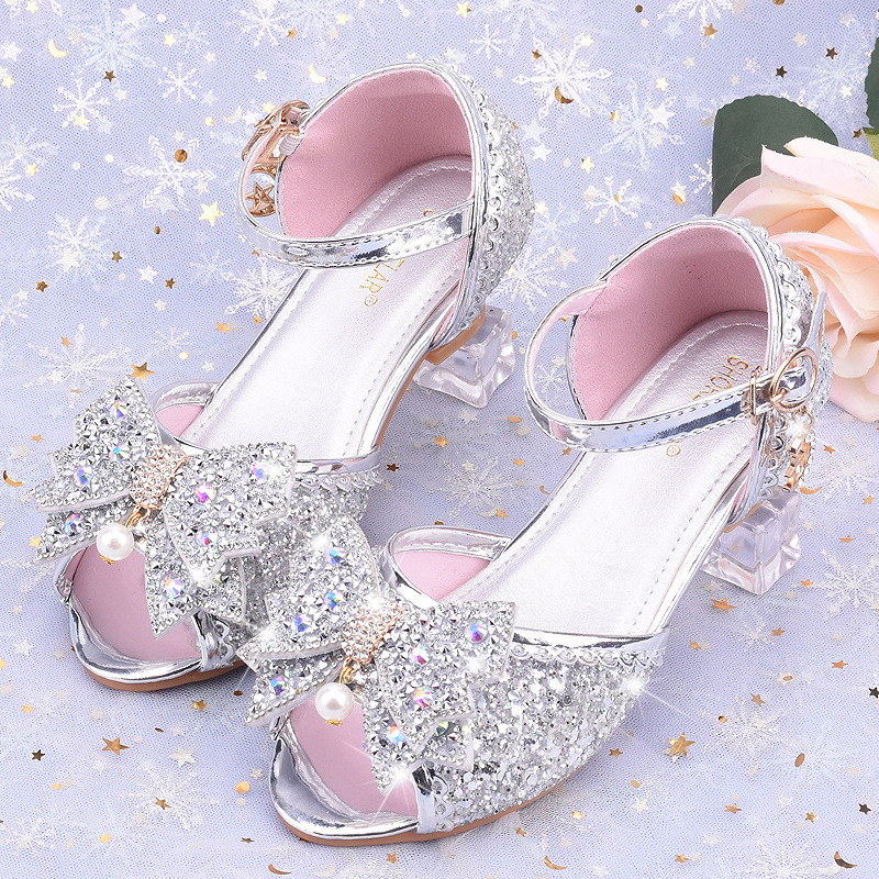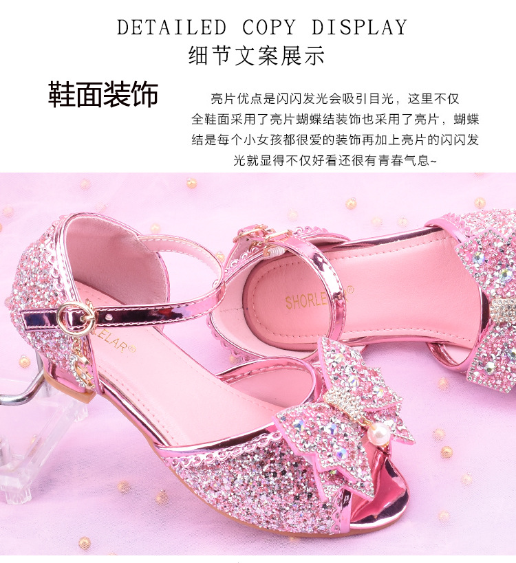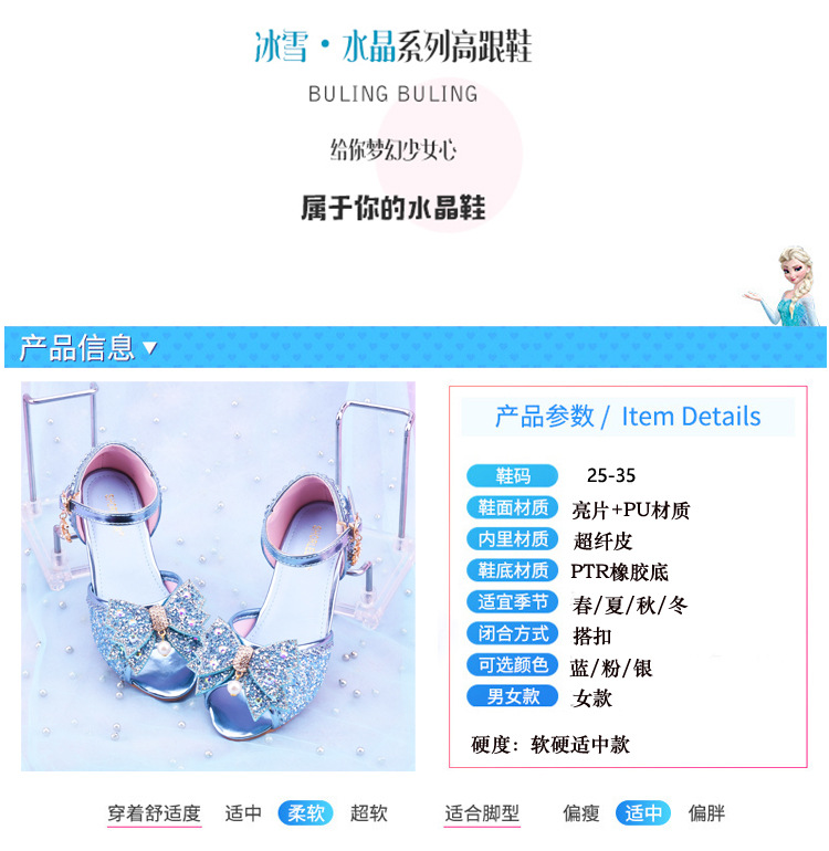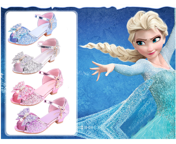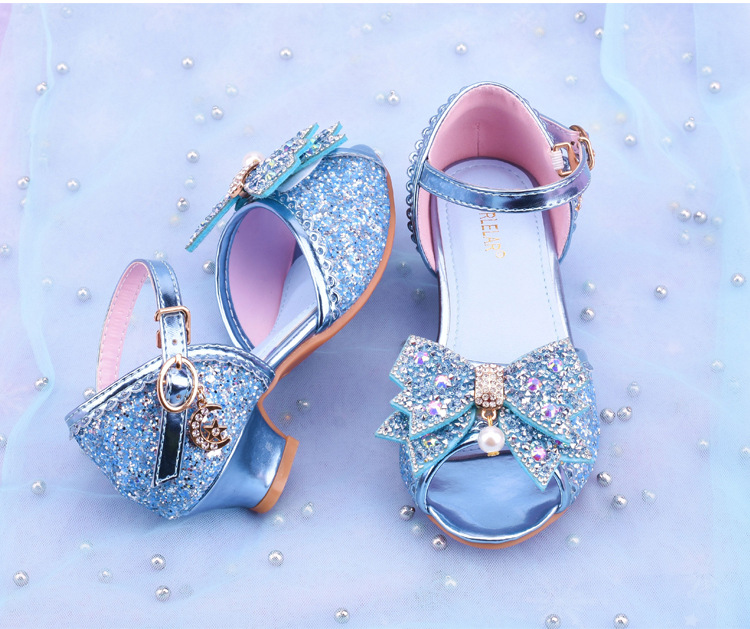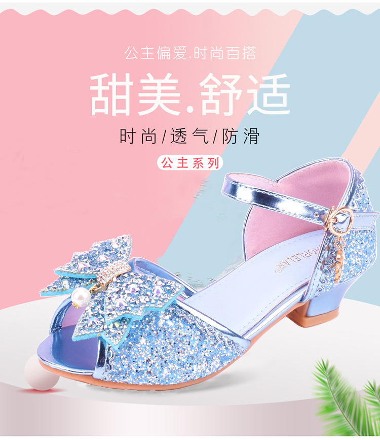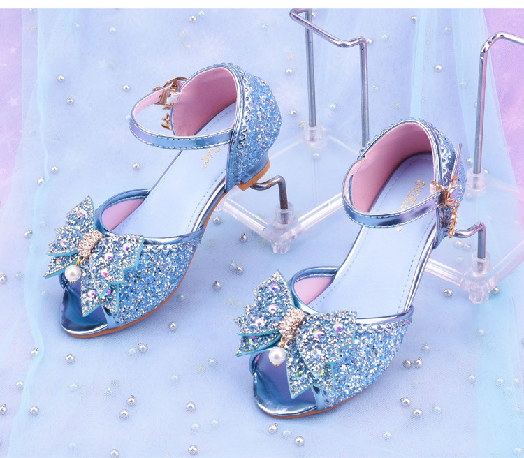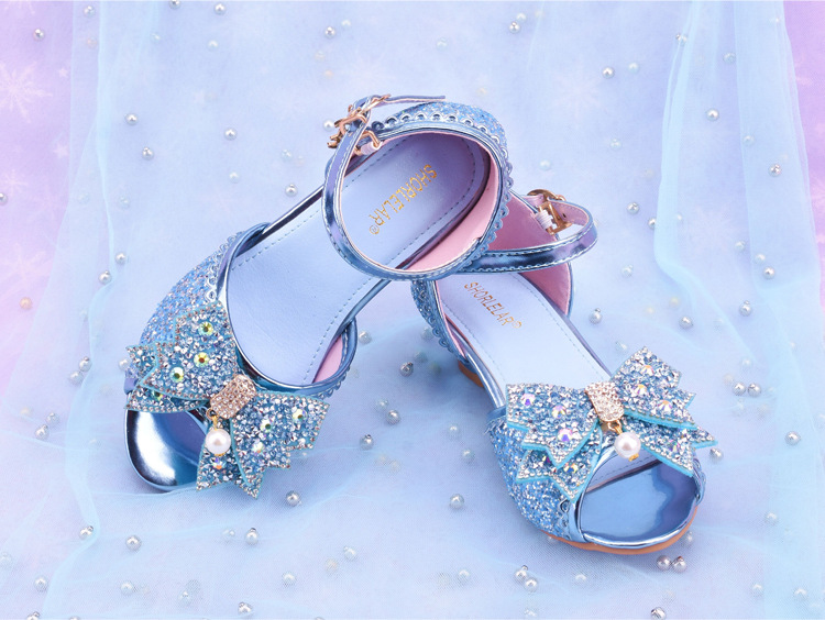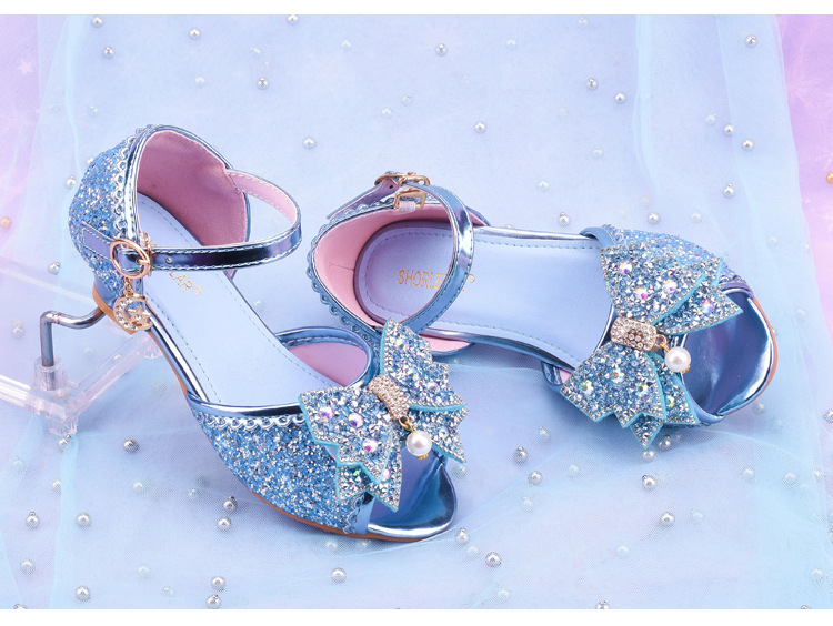 Детские сандалии Летняя обувь принцессы Crystal 2032 Новые туфли на высоком каблуке для девочек Синие Замороженные каблуки Aisha