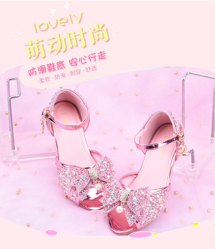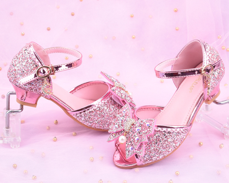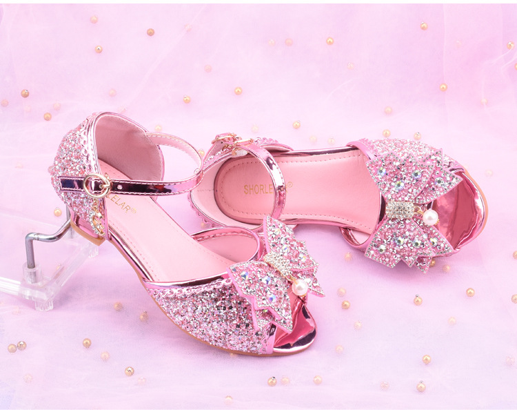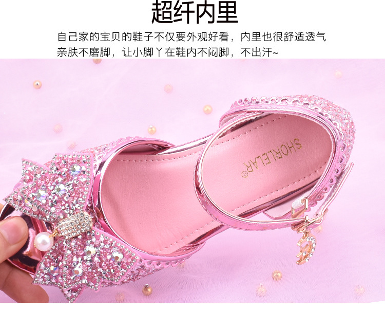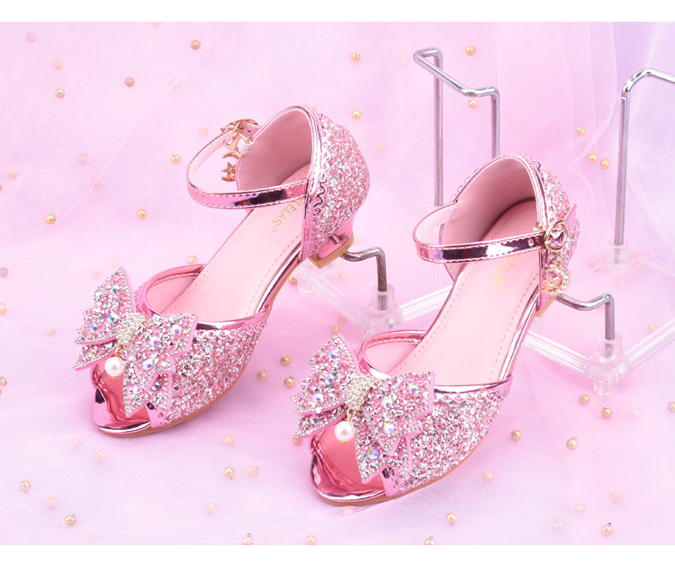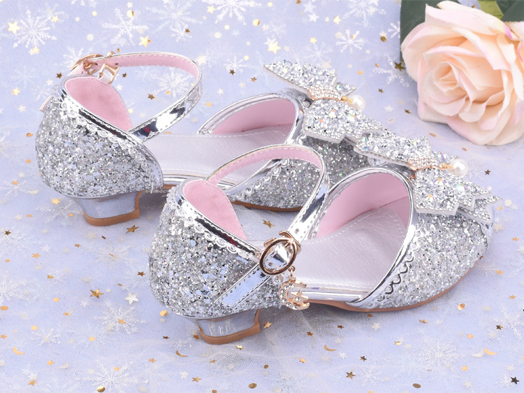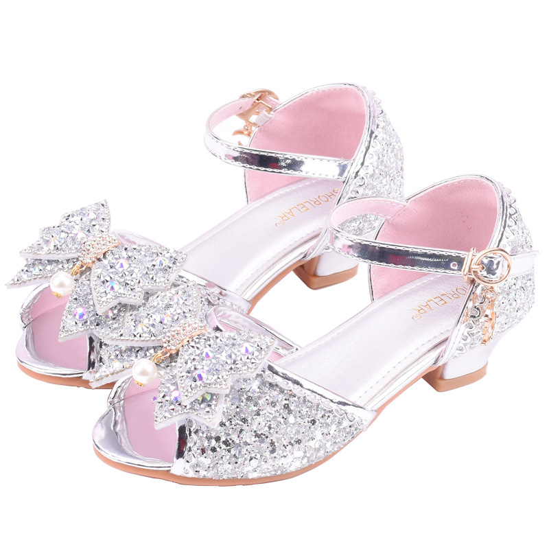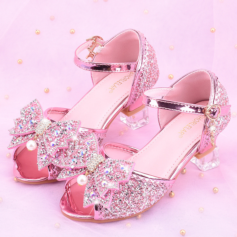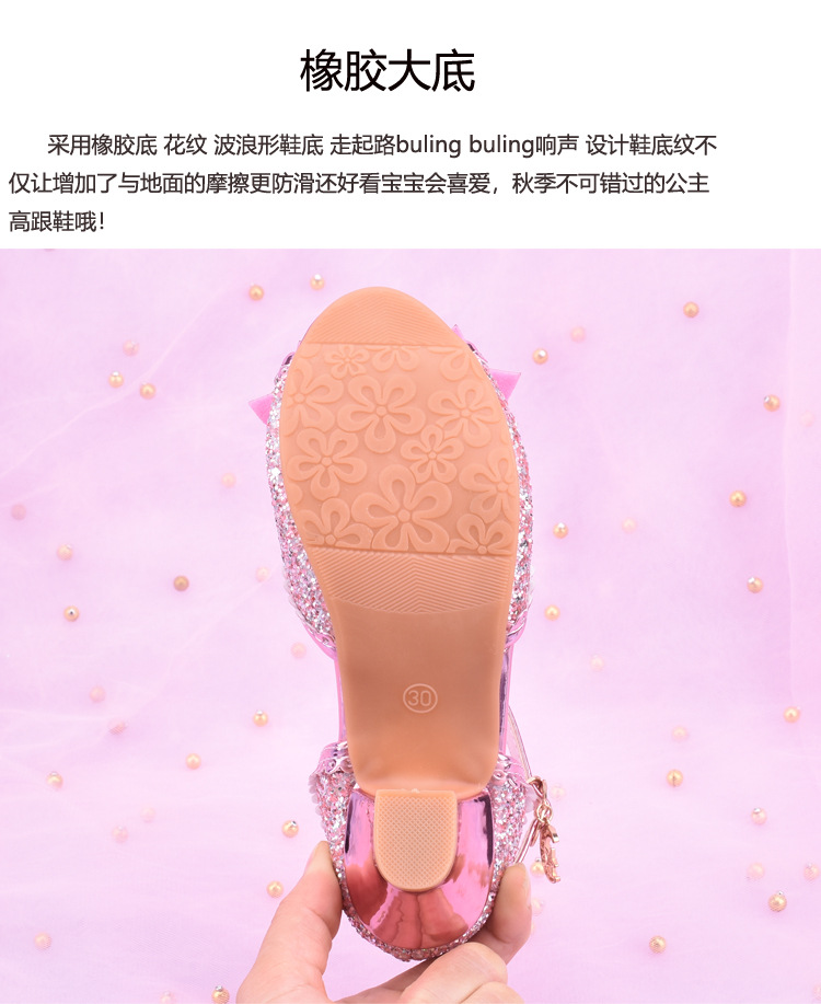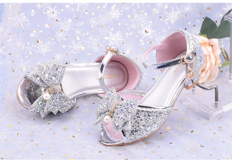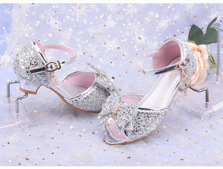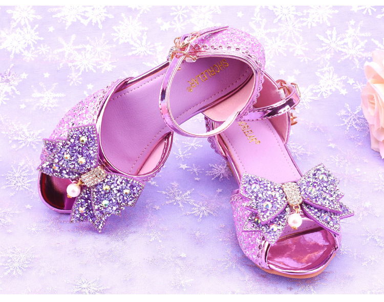 Детские сандалии Летняя обувь принцессы Crystal 2032 Новые туфли на высоком каблуке для девочек Синие Замороженные каблуки Aisha