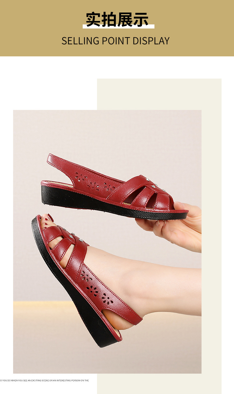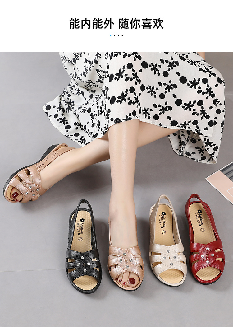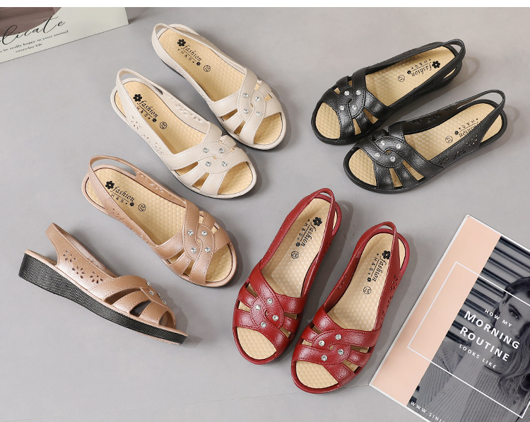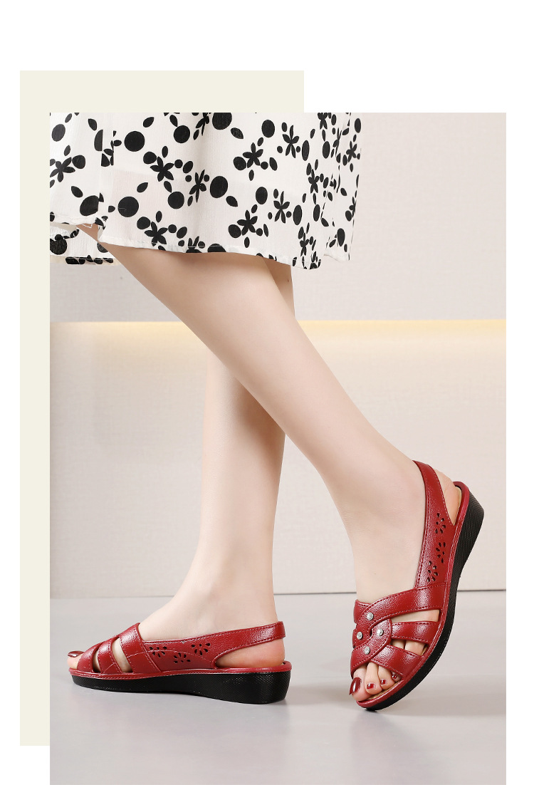 Новинка 2024, сандалии для мам, верхняя одежда, мягкая подошва в клетку, женская обувь на танкетке среднего возраста, нескользящая женская обувь среднего и пожилого возраста, летняя обувь