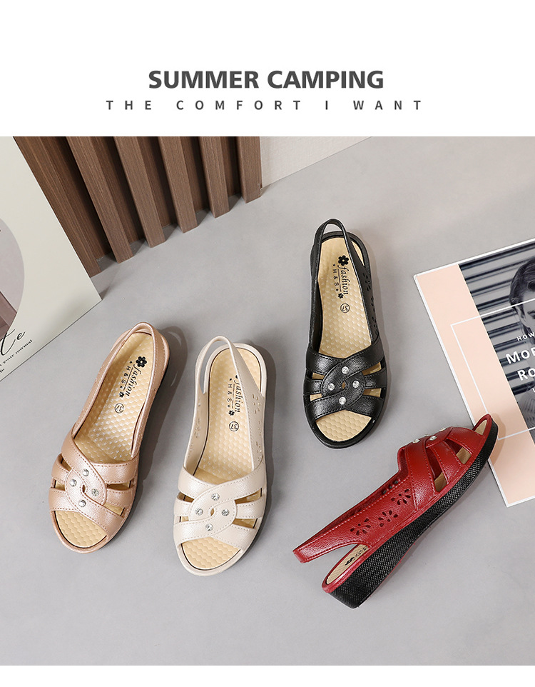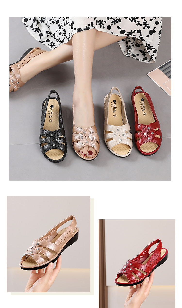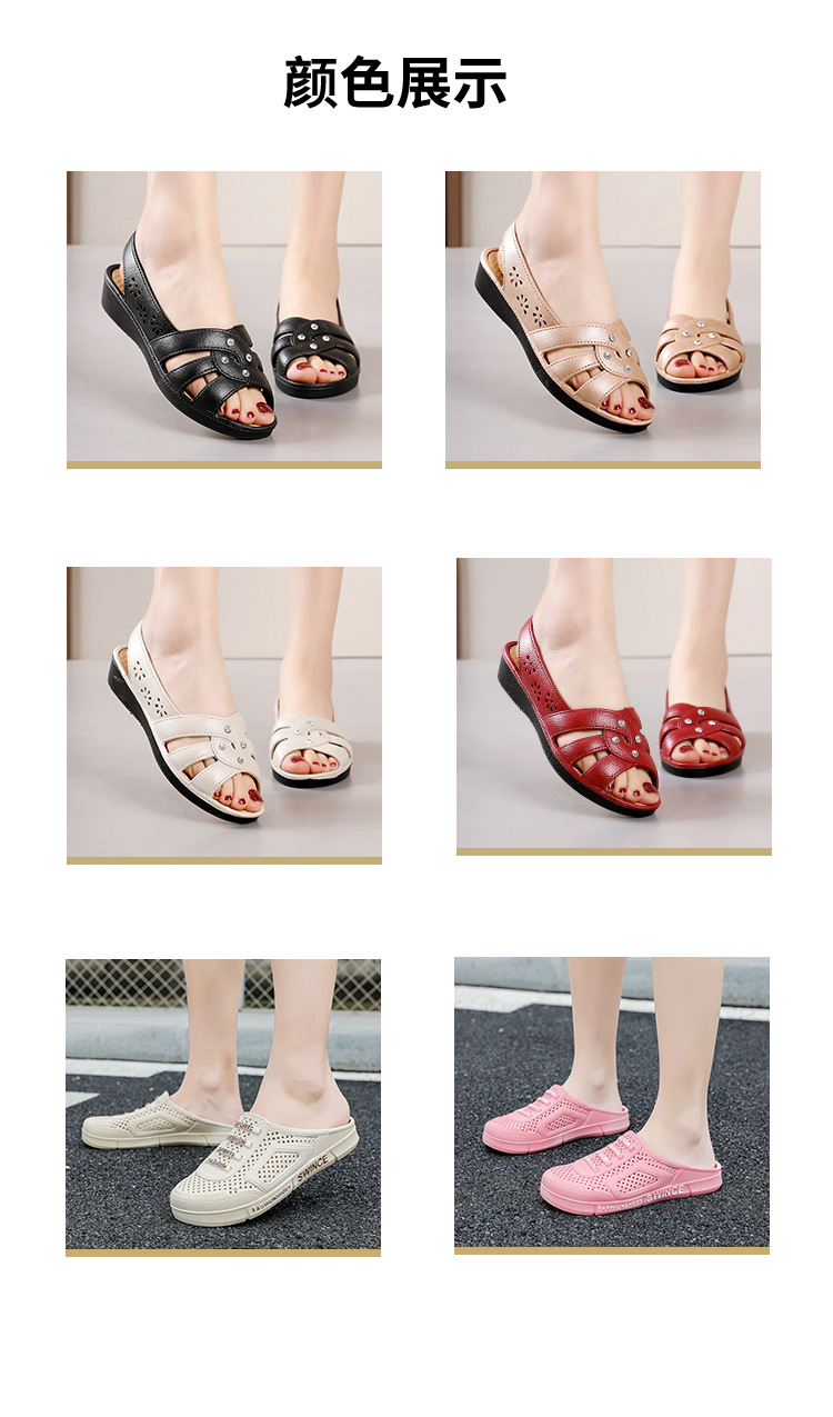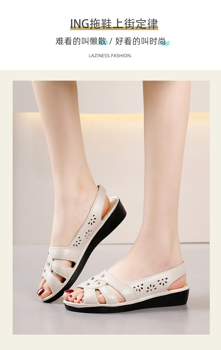 Новинка 2024, сандалии для мам, верхняя одежда, мягкая подошва в клетку, женская обувь на танкетке среднего возраста, нескользящая женская обувь среднего и пожилого возраста, летняя обувь