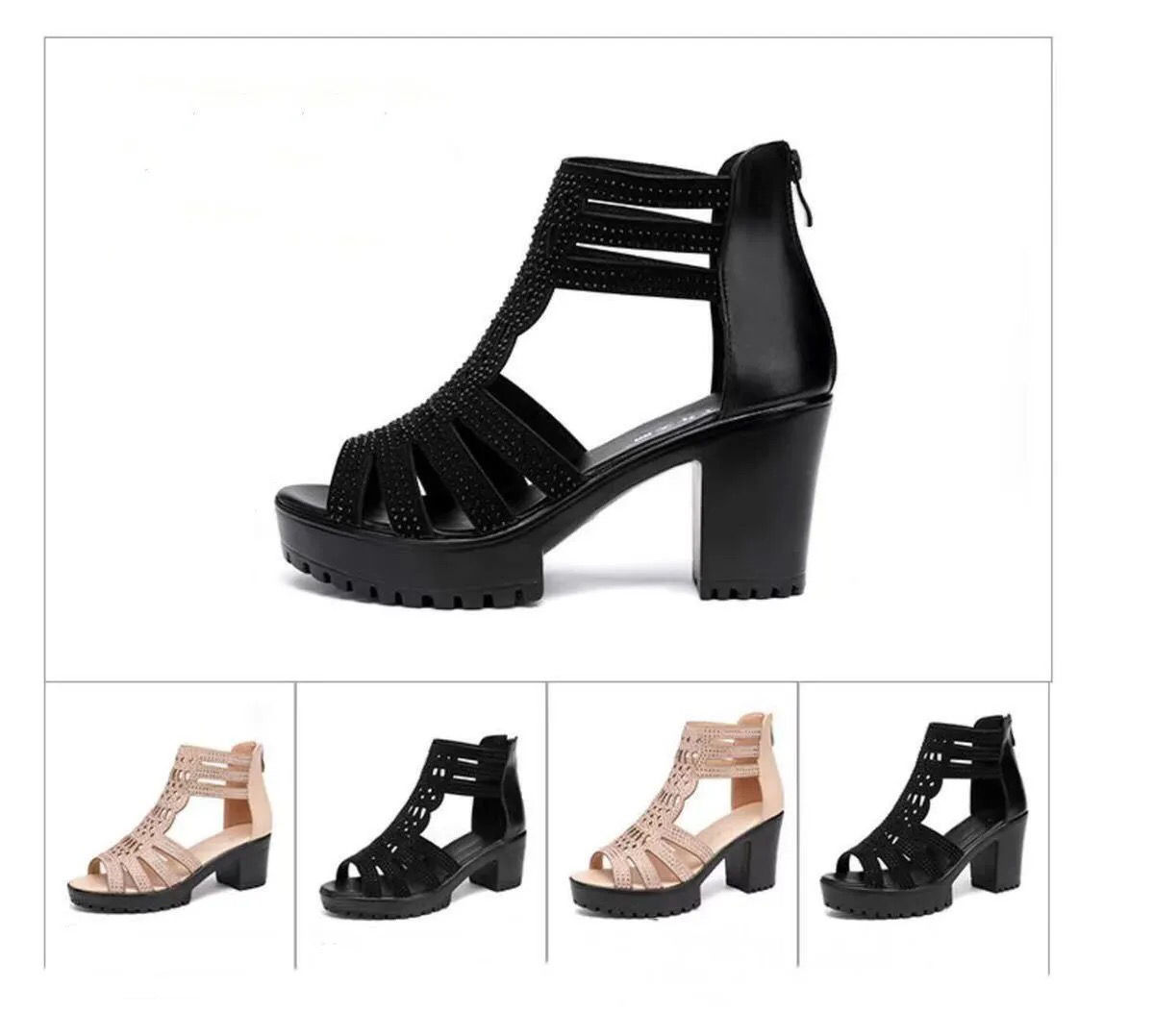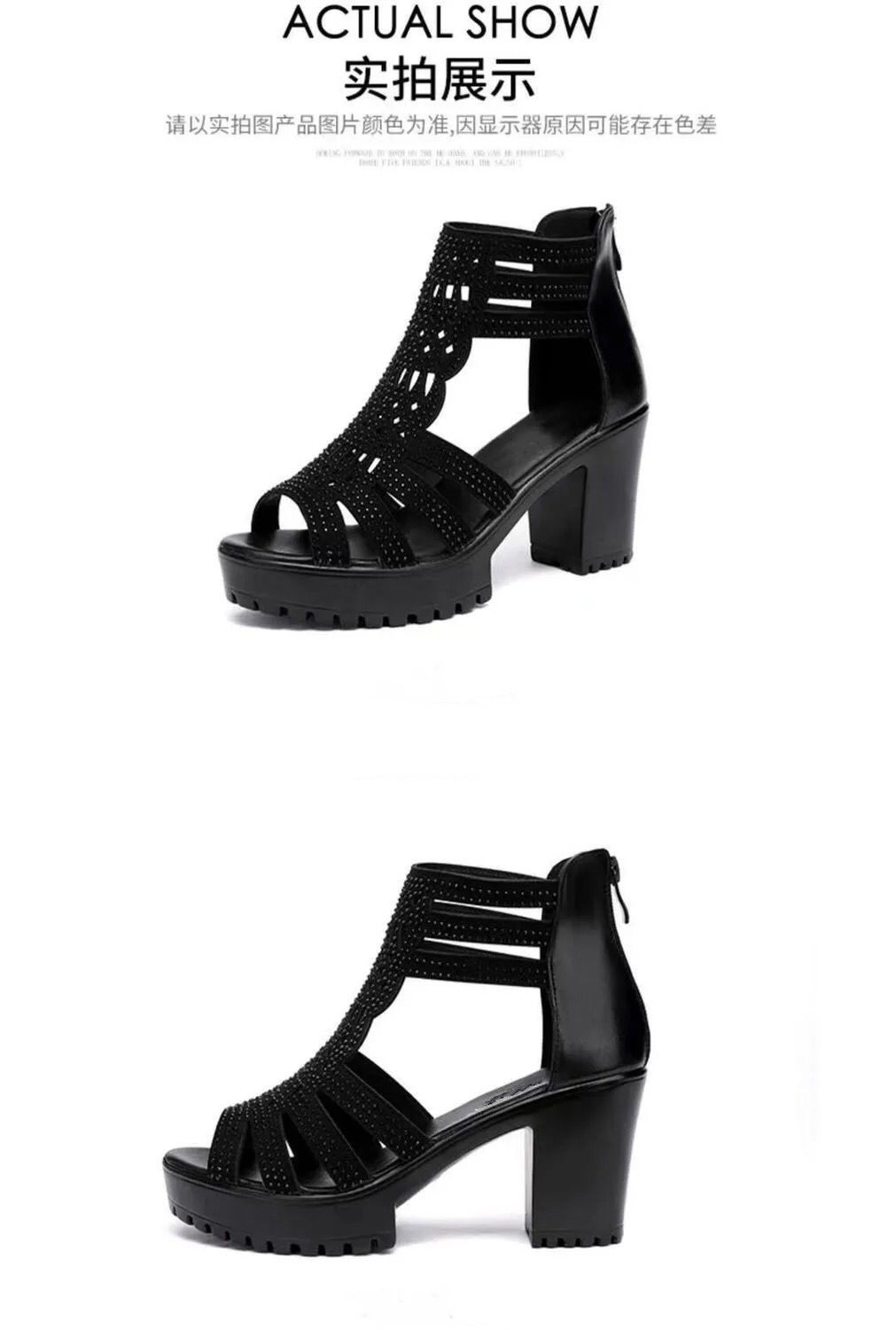 Босоножки Женские на толстом каблуке, новинка 2022 г. Нескользящие римские женские туфли на среднем высоком каблуке Женские сандалии с мягкой подошвой и открытым носком, завышенные сандалии