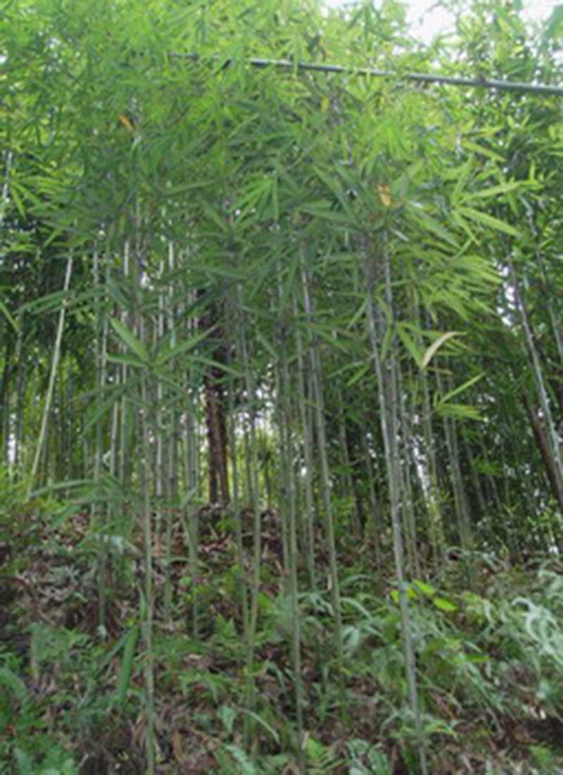 竿高2-4米,径粗0.5-1.5厘米,新竿绿色,微被白粉,节下方粉环明显,无绒毛,老竿黄绿色;竿中部节间长21-31厘米;竿环高于箨环;箨环常具箨鞘基部的残留物;节内长0.5-0.8厘米;芽的先出叶在脊周围密生紫红色纤毛;竿每节分3枝,稀仅1枝,枝基部贴竿,向上约1厘米处始斜展。箨鞘淡绿色,略被白粉,有绿色条纹和棕褐色的斑点或斑纹,斑点在鞘基部和上部尤较密,或上部斑点不显著,背部无毛,或其上部在二侧散生浅褐色贴伏疣基刺毛,毛易脱落,仅留疣基而无凹痕,鞘基部有一圈浅黄褐色绒毛,边缘有短纤毛,易秃净;无箨耳和有易脱的少数条鞘口繸毛;箨舌拱形,高1.5-4毫米,背面被厚白粉,近基部具微毛,上部质薄而无毛,边缘具极短纤毛,但毛易脱落而全缘;箨片三角状披针形,外翻或直立,全缘。小枝具2-4叶;叶鞘背面无毛,在鞘节下方被较厚白粉,鞘边缘生纤毛;叶耳椭圆形或镰形,边缘具放射状伸展的弯曲繸毛,后者长约5毫米;叶舌拱形,高2-5毫米,背部具白粉,先端膜质,边缘无纤毛而全缘;叶片椭圆状披针形,长7-14厘米,宽1.2-2.2厘米,上表面光滑无毛,下表面近基部有稀疏微毛,其余部分具极细的瘤状点而粗糙,次脉5-9对,边缘之一具稀细齿,另一边全缘,小横脉明显。总状花序着生在侧枝的,小穗1或2枚;小穗绿黄色,通常长(3) 5厘米左右,具5-7朵小花,排列疏松,1朵小花不孕;小穗轴节间长约6毫米,一侧扁而有二棱,下部无毛,上部具向上的微毛,尤以棱上明显呈短纤毛状;颖2,背面和边缘均无毛,颖长卵状披针形,长0.8-1.4厘米,先端长渐尖,几呈短芒状,第二颖卵状披针形,长1-1.6厘米,先端渐尖,具11-13条脉,小横脉模糊;外稃长卵形,长1.1-1.8厘米,上部无毛,边缘下部生微毛,基部有绒毛,先端渐尖或钝圆;内稃舟形,长0.9-1.6厘米,先端钝或2裂,先端和边缘被微毛,余处光滑无毛,脊上部具易脱落的短纤毛;鳞被3,膜质,几等大,长0.5-0.8厘米,边缘具纤毛;花药暗黄色;子房先端具密毛,花柱1,柱头3,羽毛状。颖果长圆形,有纵腹沟,有毛,长0.9-1.3厘米,径3-4毫米。笋期6月上旬,花期5月。