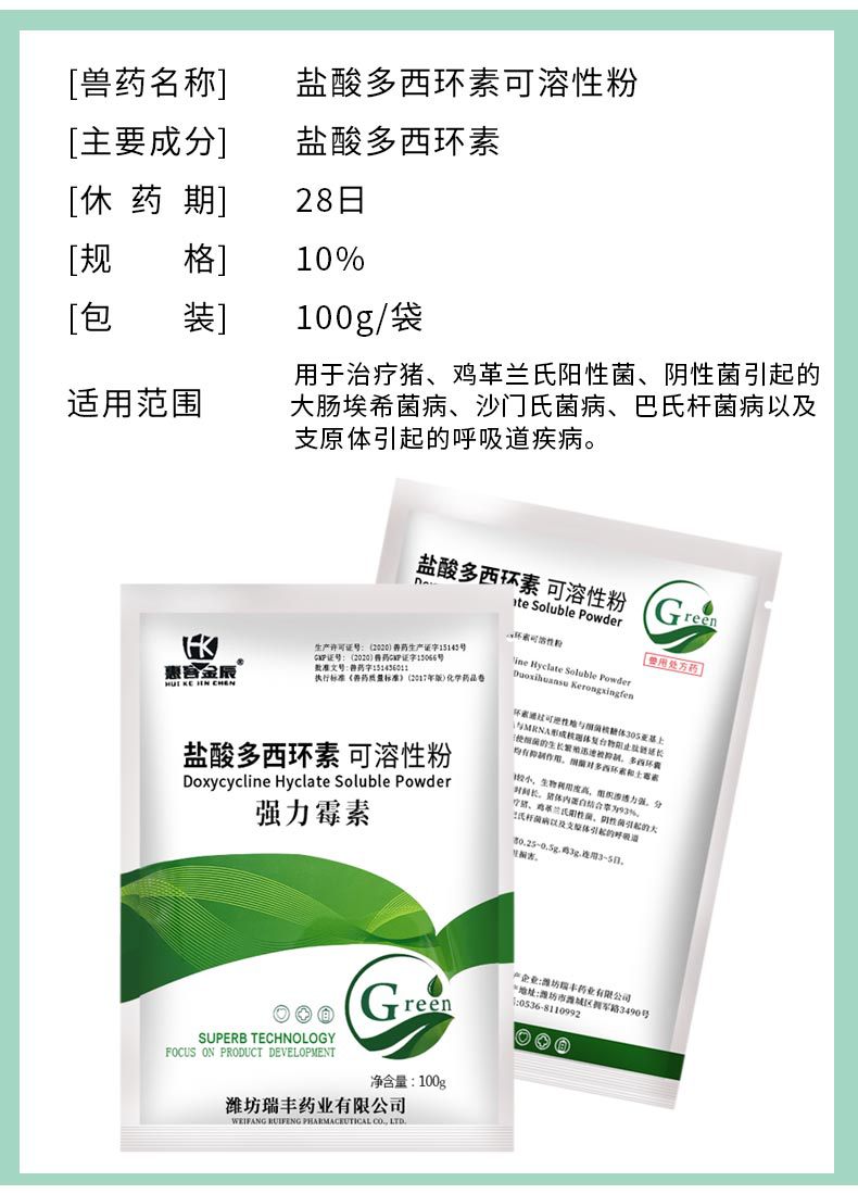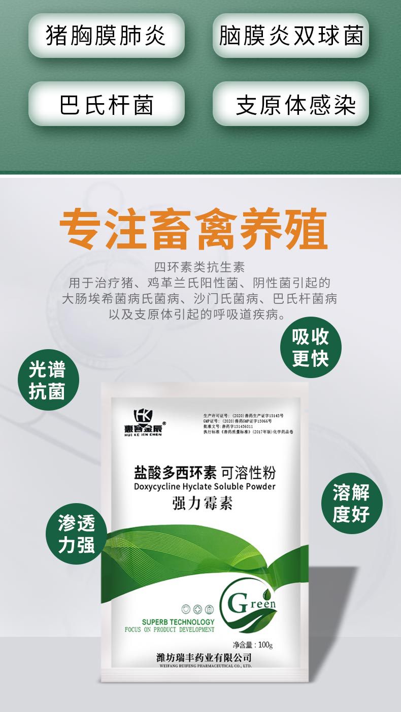Huike Jinchen доксициклин гидрохлорид ветеринарный растворимый порошок доксициклин окситетрациклин курица медицина свинья оригинальные товары ветеринарный препарат