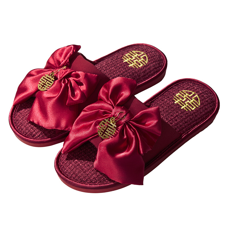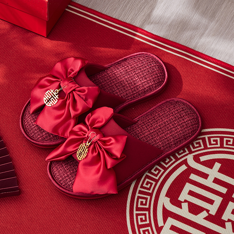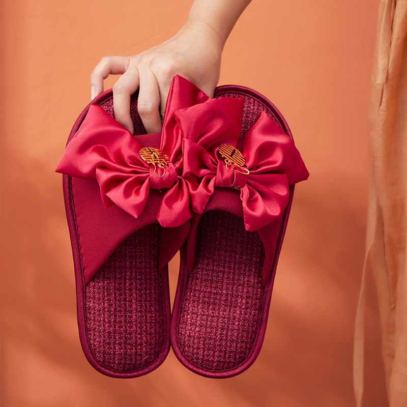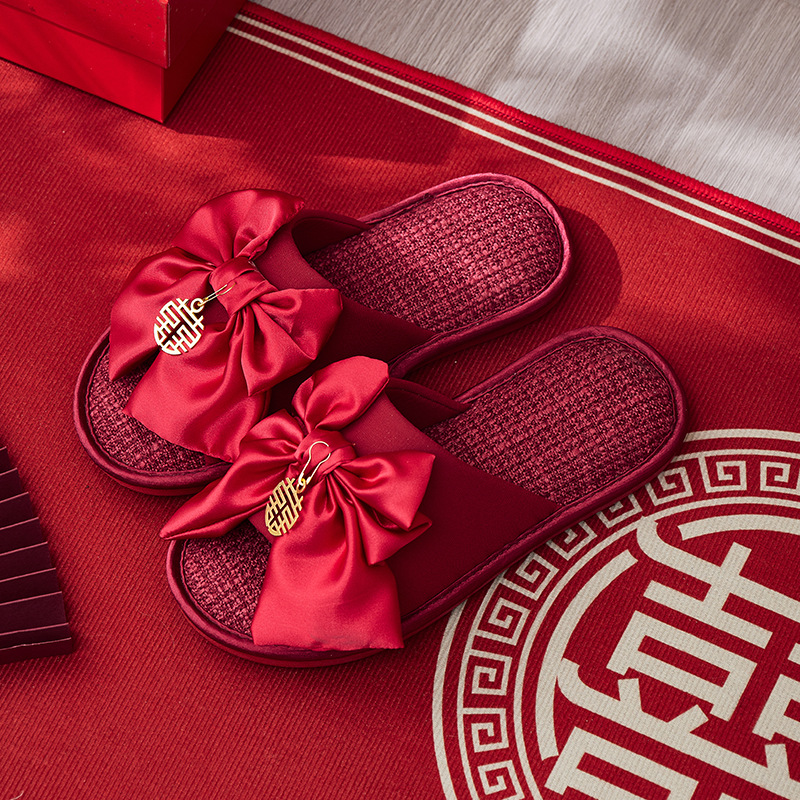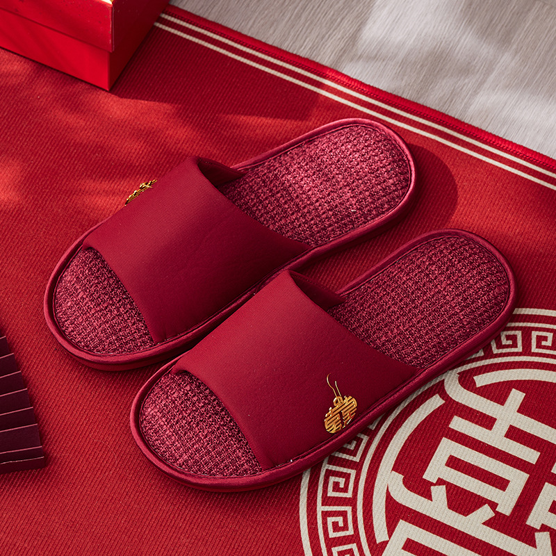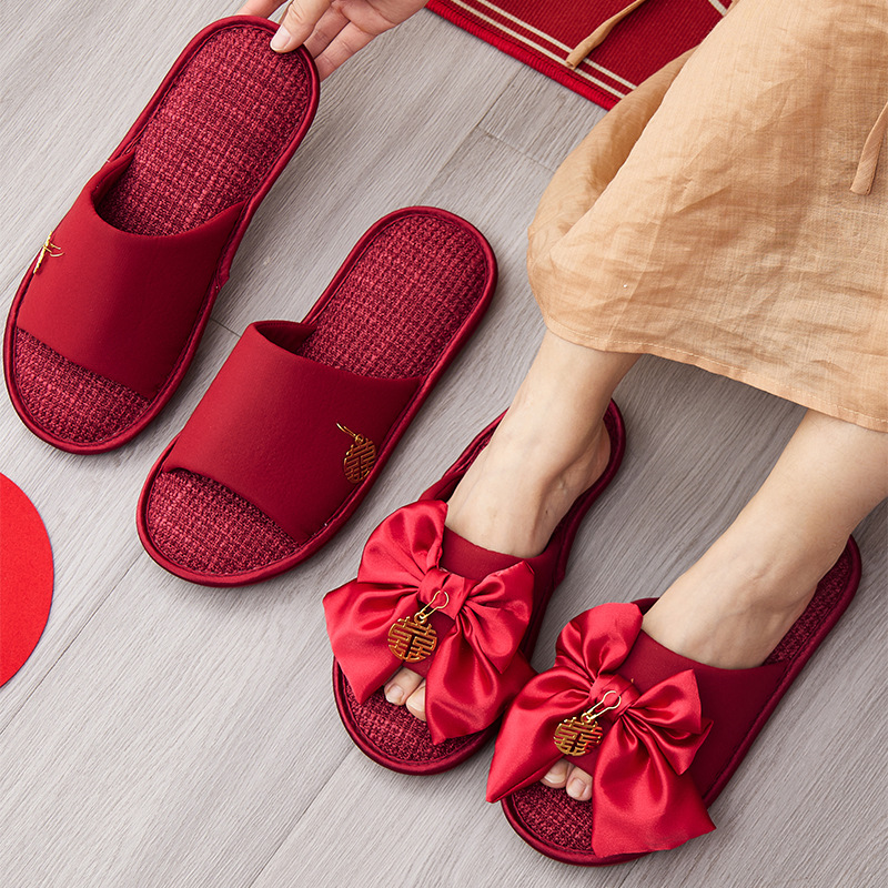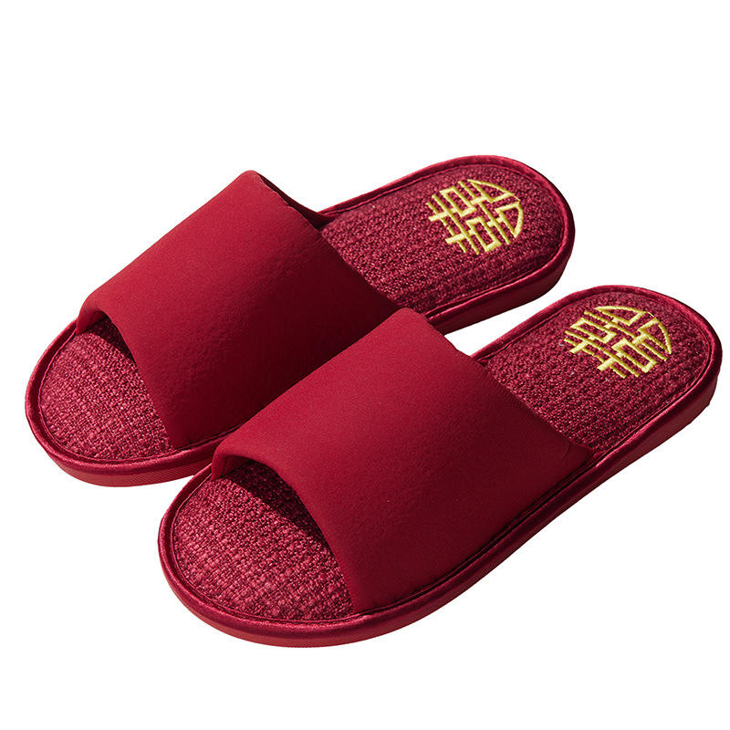 Свадебные тапочки Красные женские льняные летние весна и осень Четыре сезона Мягкие домашние тапочки из хлопка и льна оптом Свадебные тапочки Праздничная пара