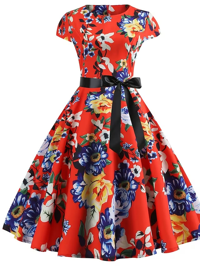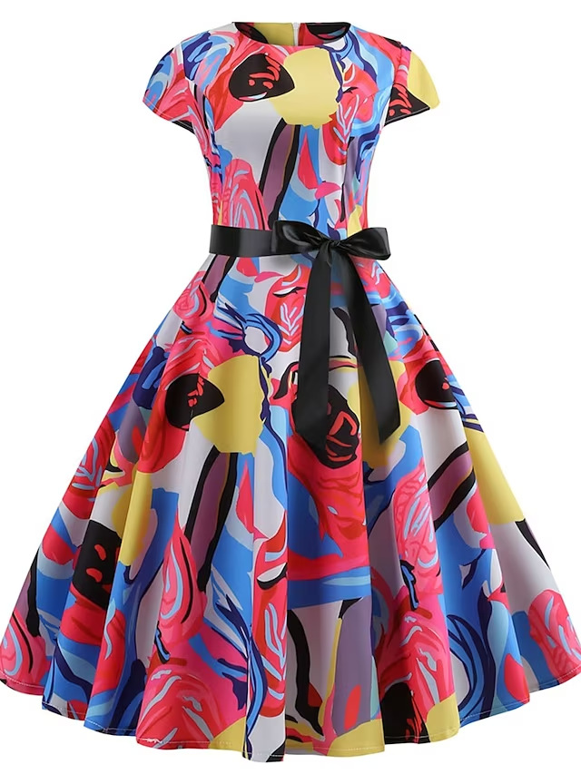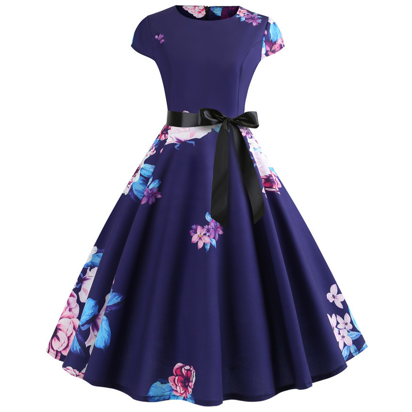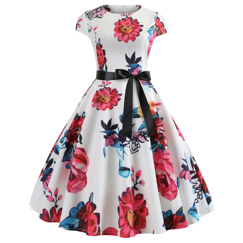 Заводская поставка 2020 самое продаваемый новый ретро-принт с коротким рукавом Хепберн ветровое Платье на шнуровке 10 узоров