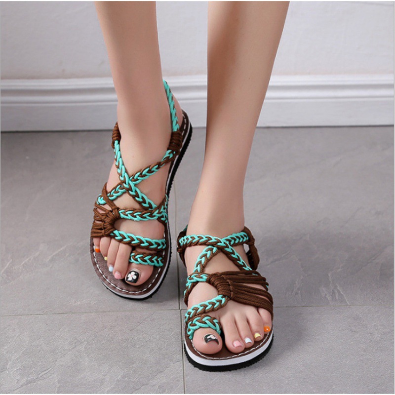 2023 летние новые сандалии AliExpress для европейской и американской внешней торговли с ткаными сумками Женские сандалии с плоским носком 44 больших размера