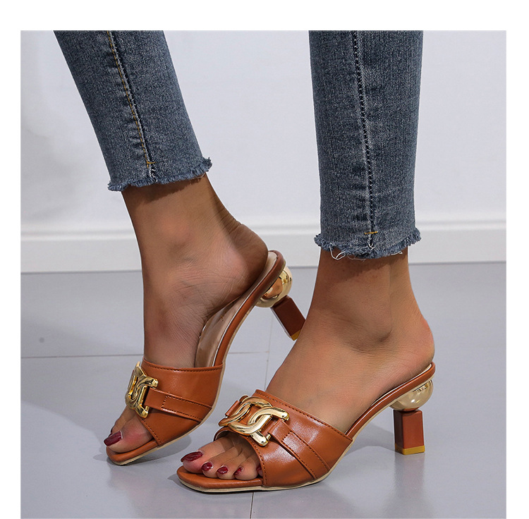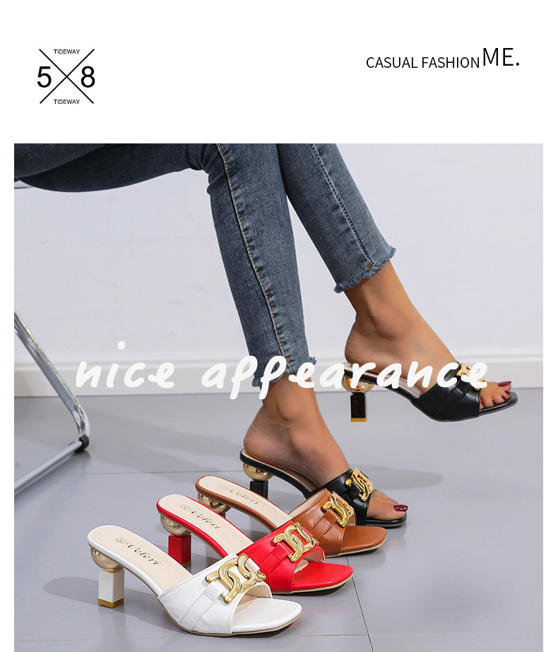 Сексуальные тапочки женские летние новые женские туфли летние европейские и американские квадратные головы рыбьи рты модные круглые пятки большие размеры холодные тапочки женские
