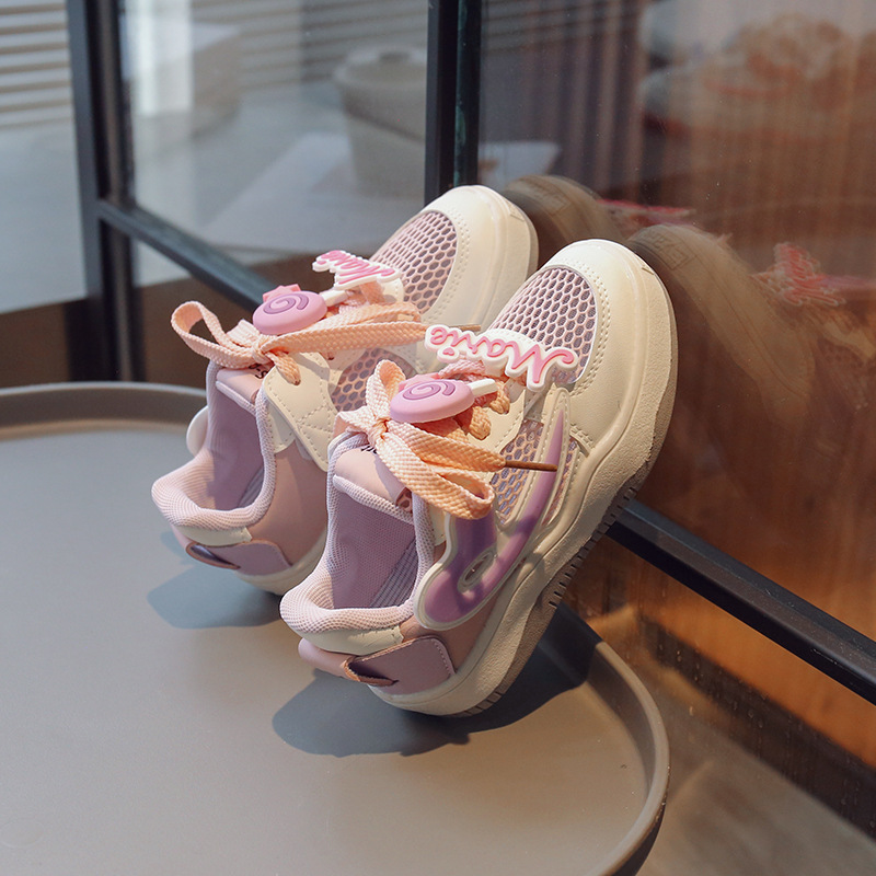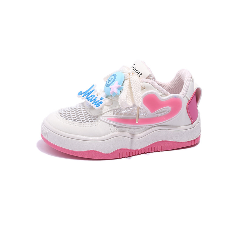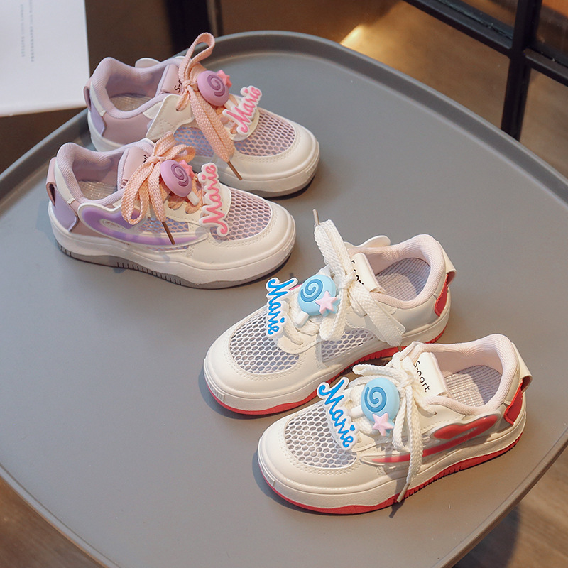 Детская обувь для девочек кроссовки 2025 летняя дышащая одиночная сетка полые кроссовки для девочек милая детская обувь для детского сада
