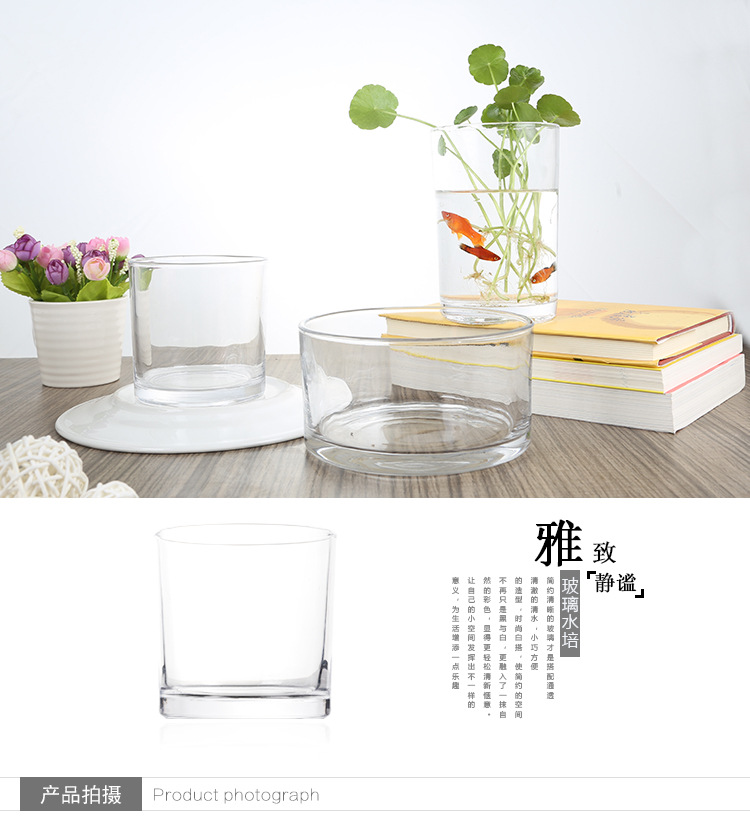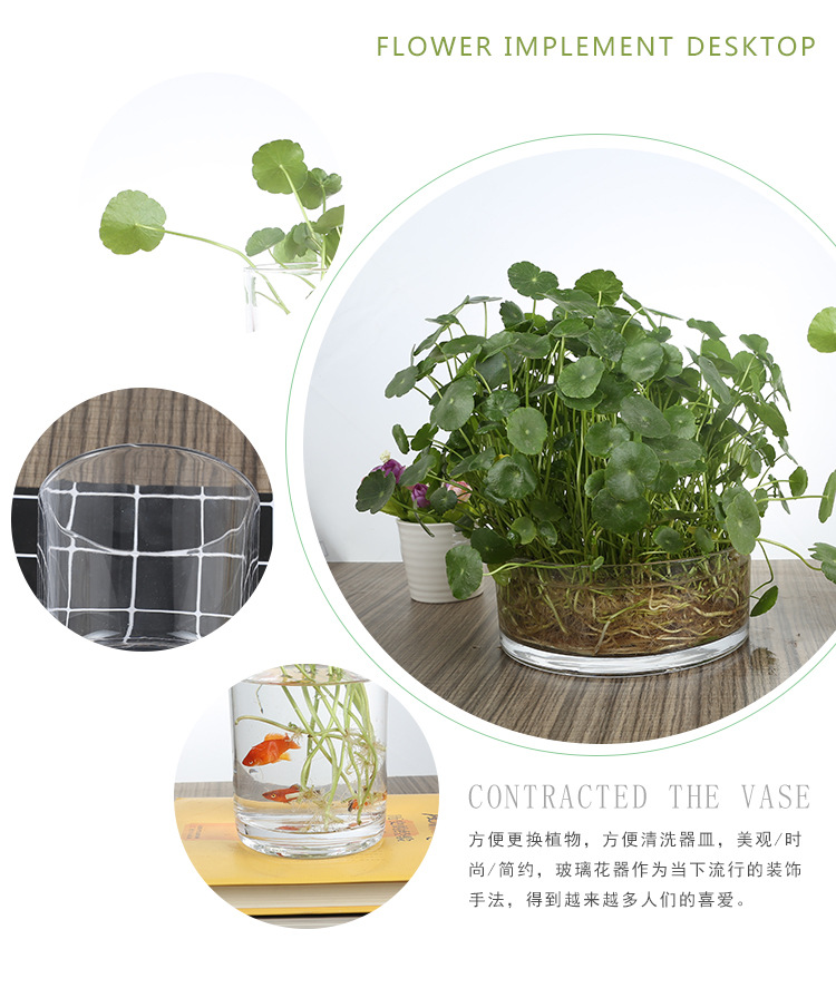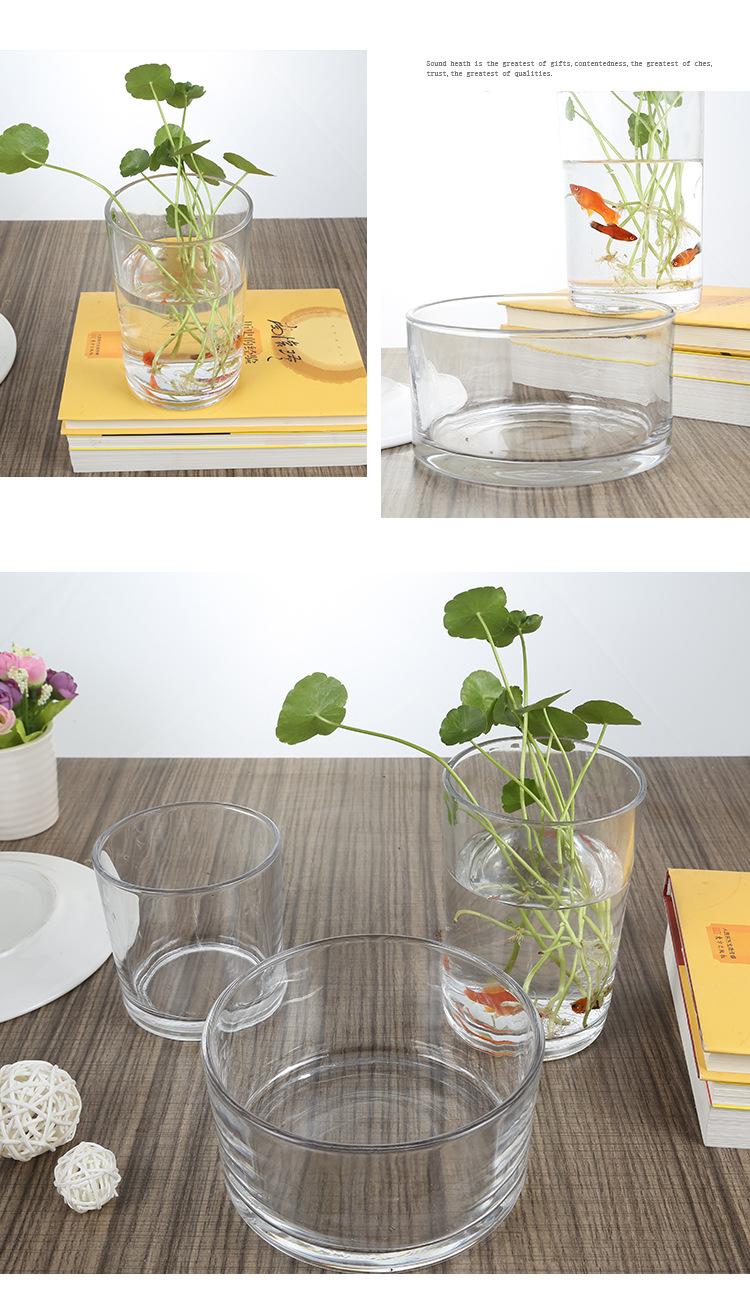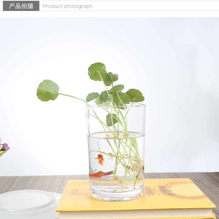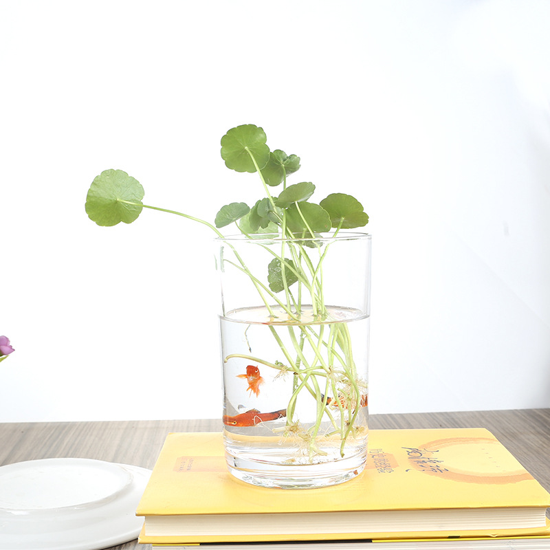 Цилиндрическая стеклянная ваза для аквариума Гидропонная установка Простая настольная прозрачная утолщенная ваза Ваза с зеленым диетическим контейнером для воды
