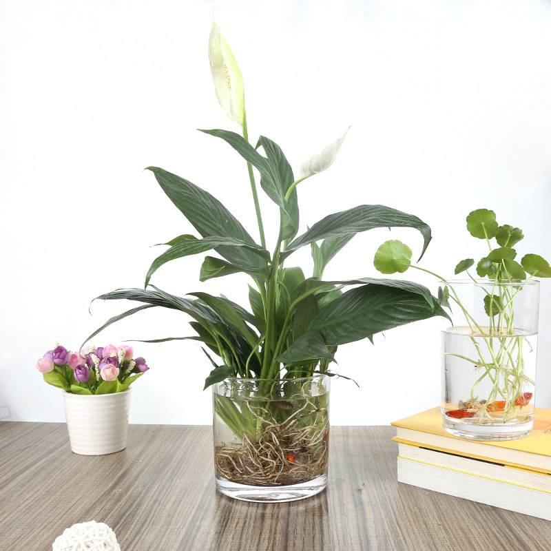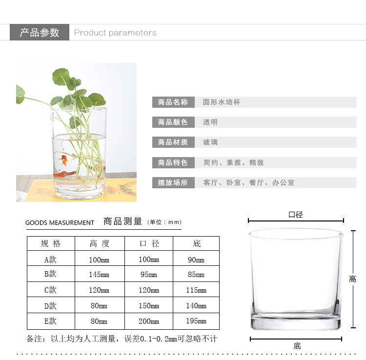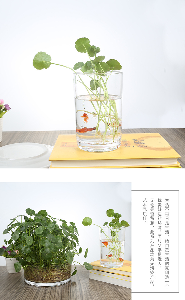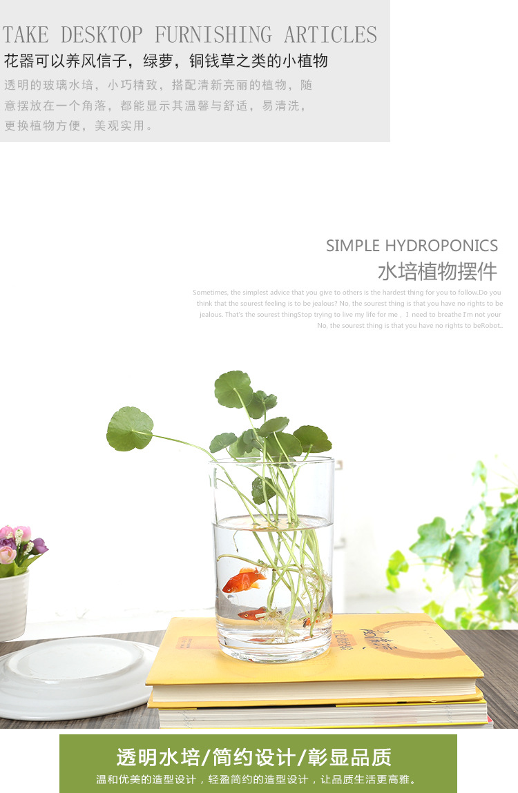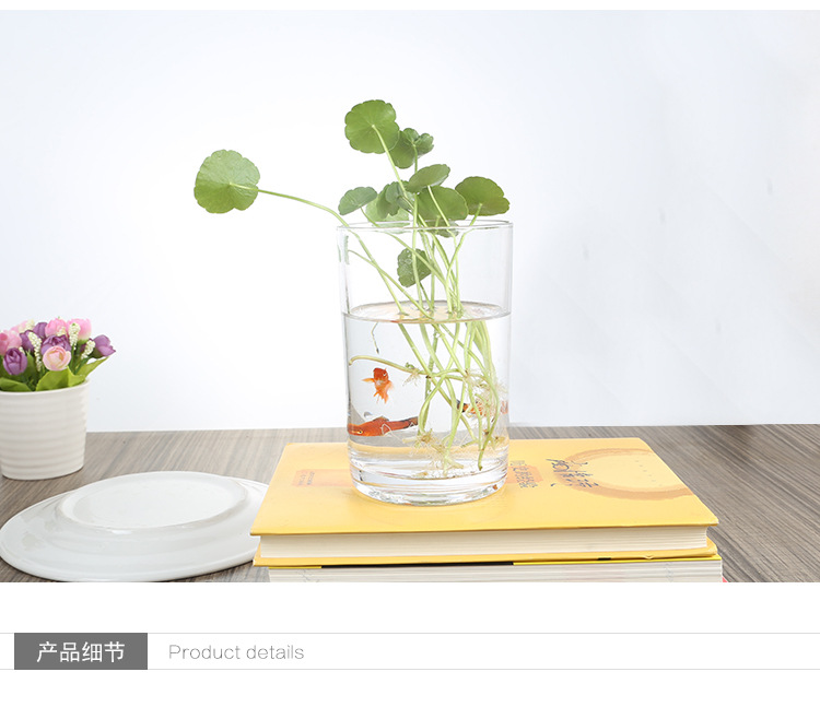 Цилиндрическая стеклянная ваза для аквариума Гидропонная установка Простая настольная прозрачная утолщенная ваза Ваза с зеленым диетическим контейнером для воды