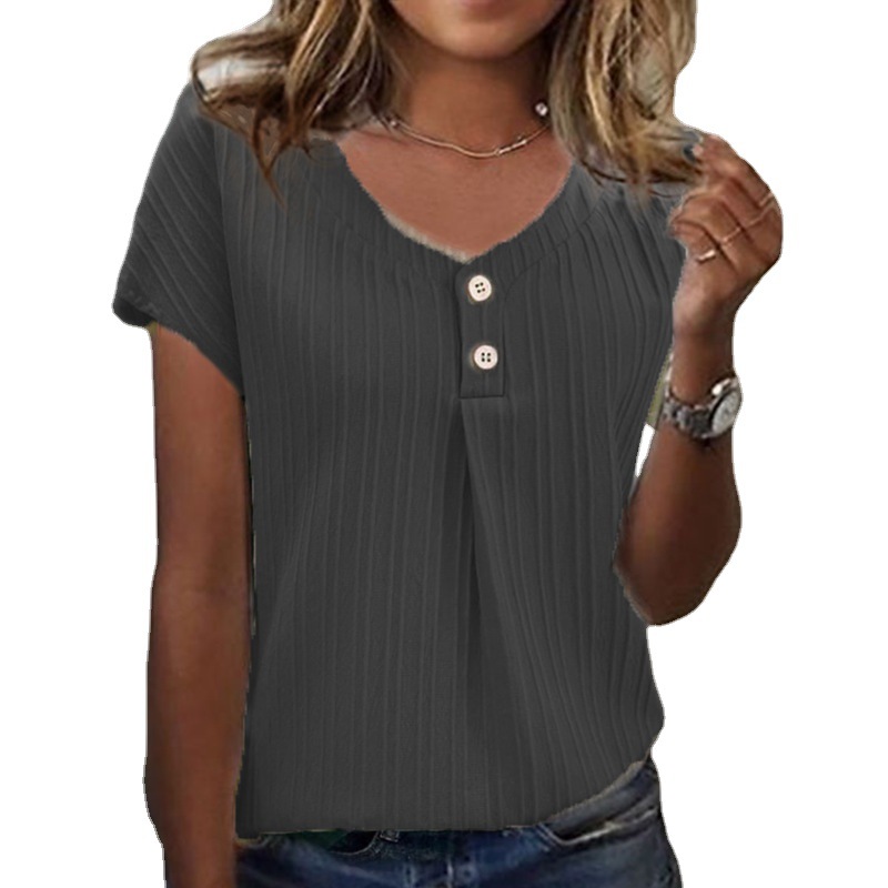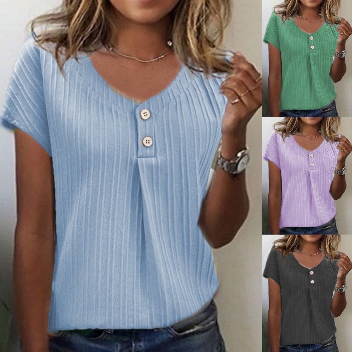 2023 Весна и лето Европа и США трансграничная независимая станция TEMU желает новой женской однотонной рубашки-боди с короткими рукавами на пуговицах и пуговицах