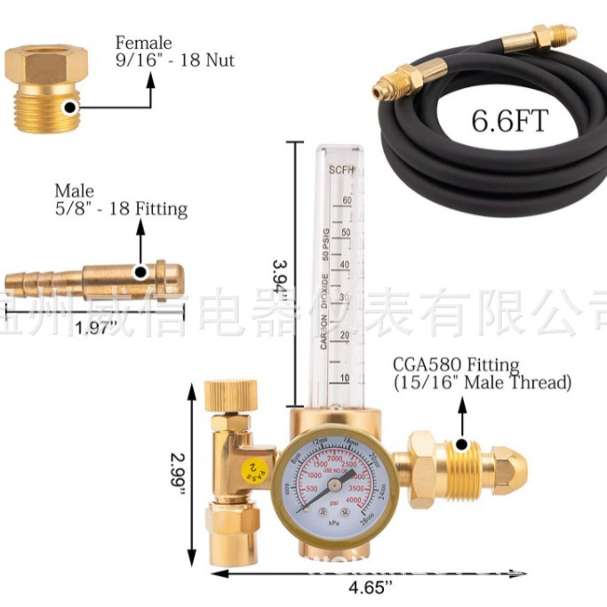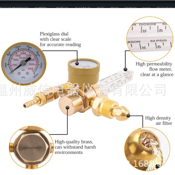 威信型号WX191-03-CGA580全铜出口型多功能减压器,适合介质 氩气 二氧化碳(非加热)