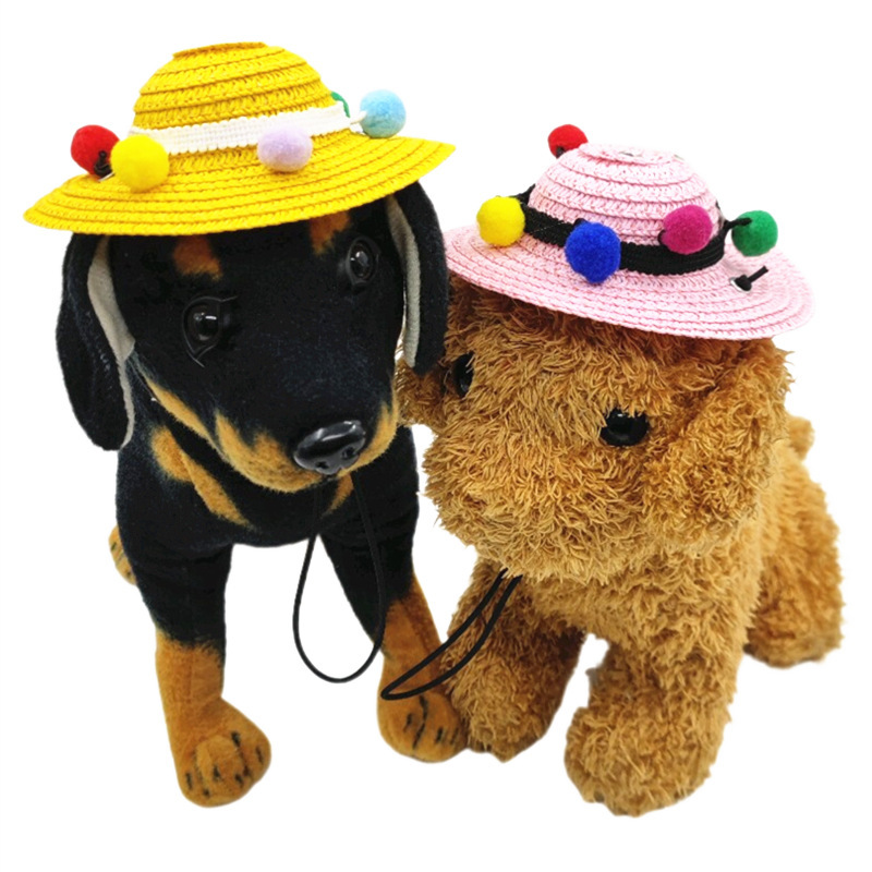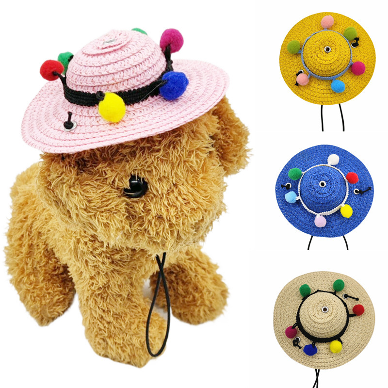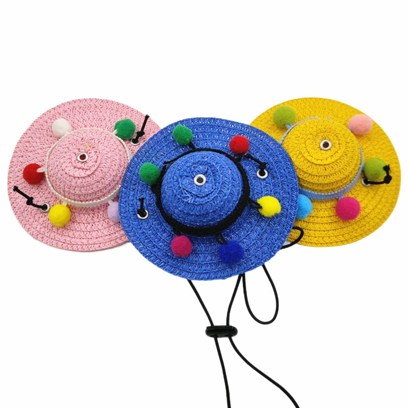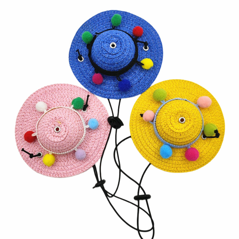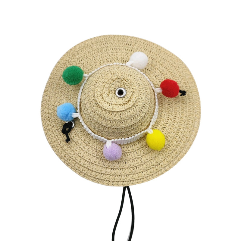 2023 трансграничная Новая летняя шляпа для домашних животных ручной работы красочная соломенная шляпа с шариками для собак Тедди французская ведро-кошка