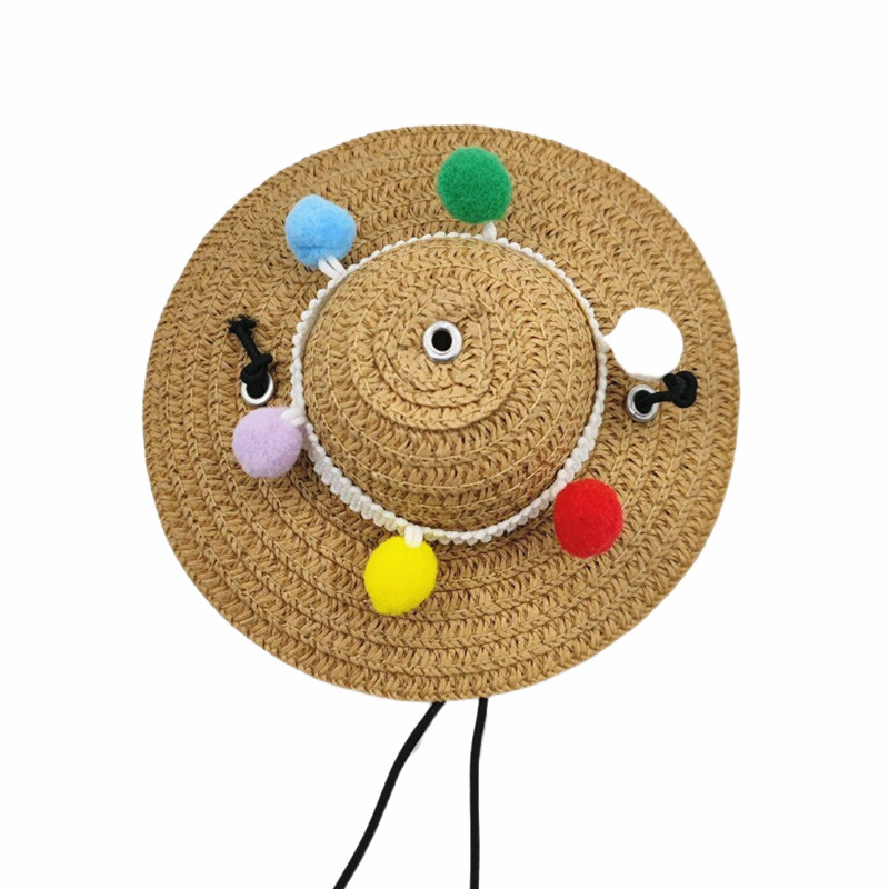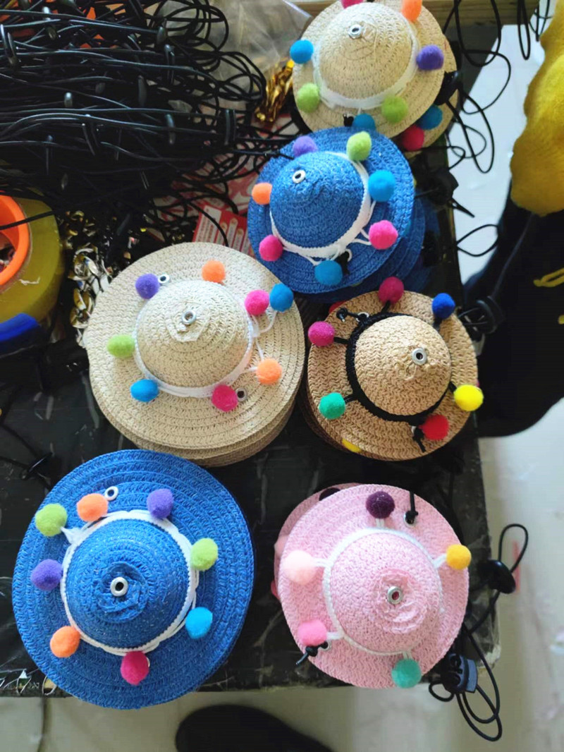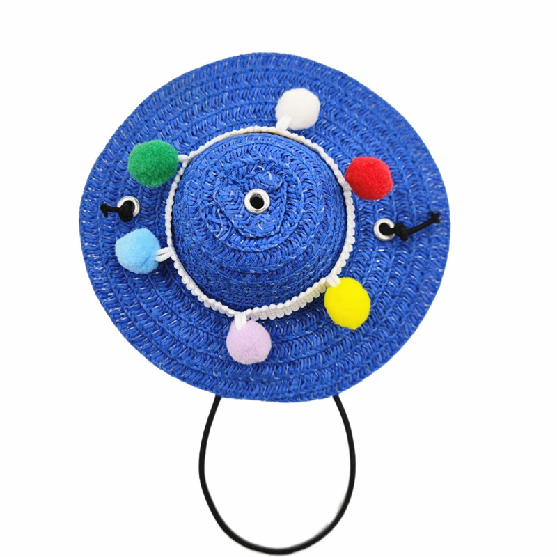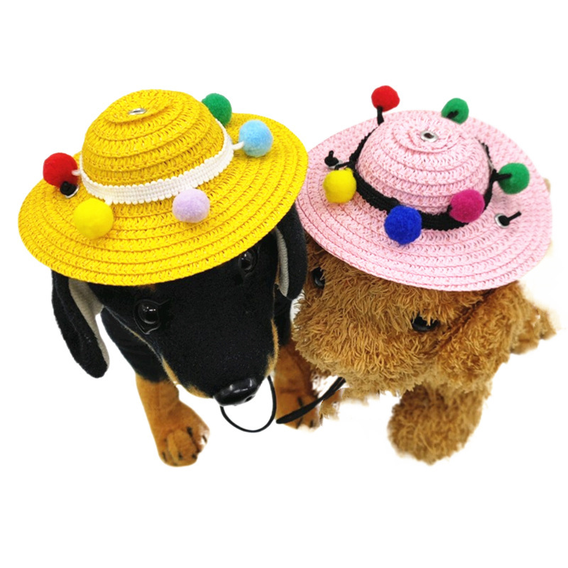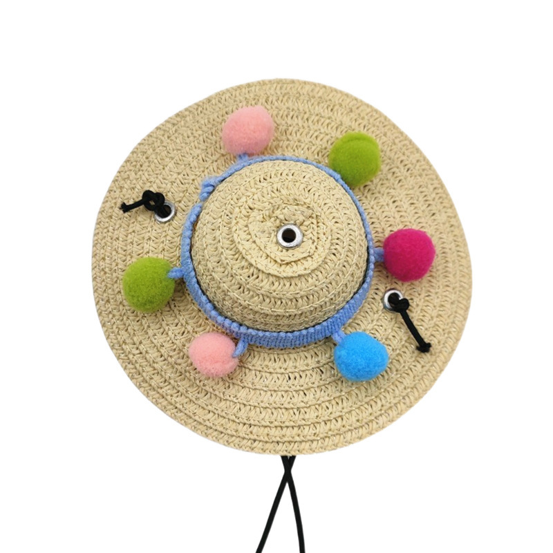 2023 трансграничная Новая летняя шляпа для домашних животных ручной работы красочная соломенная шляпа с шариками для собак Тедди французская ведро-кошка